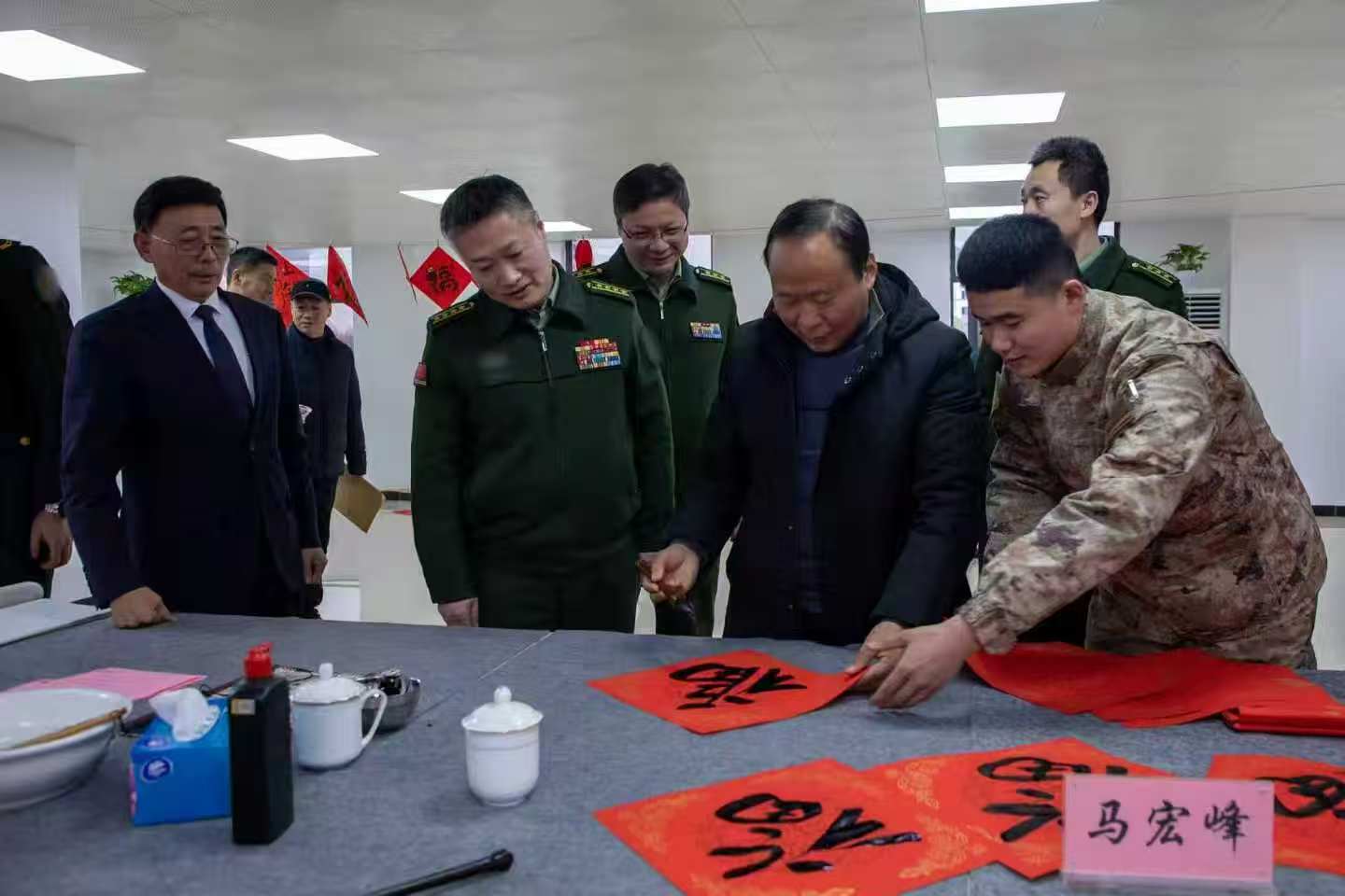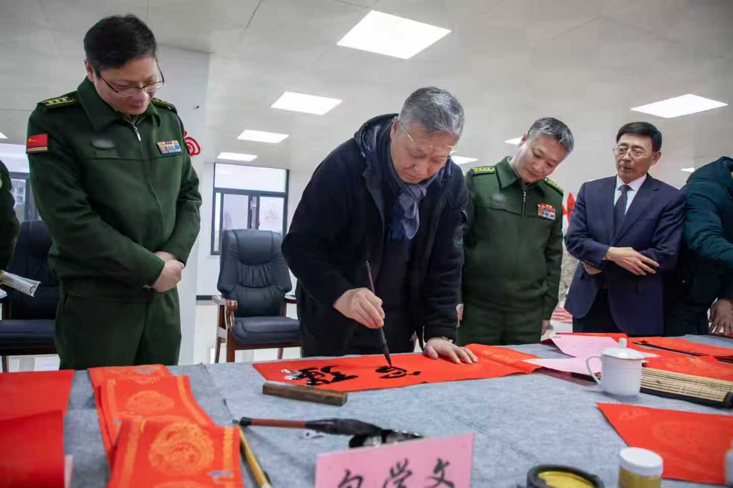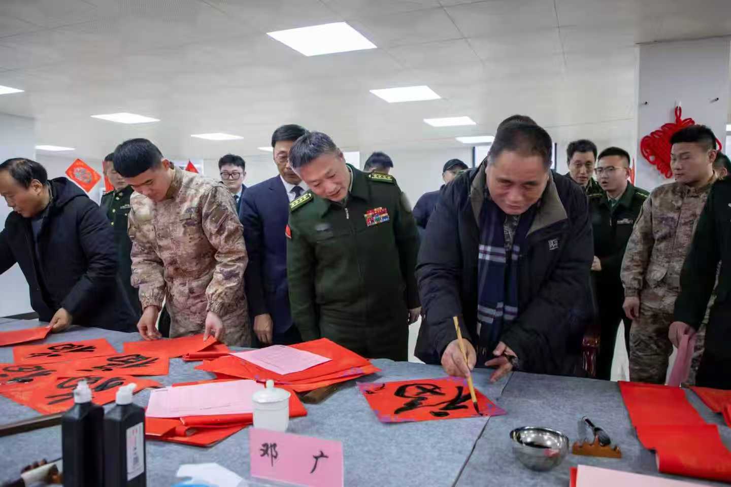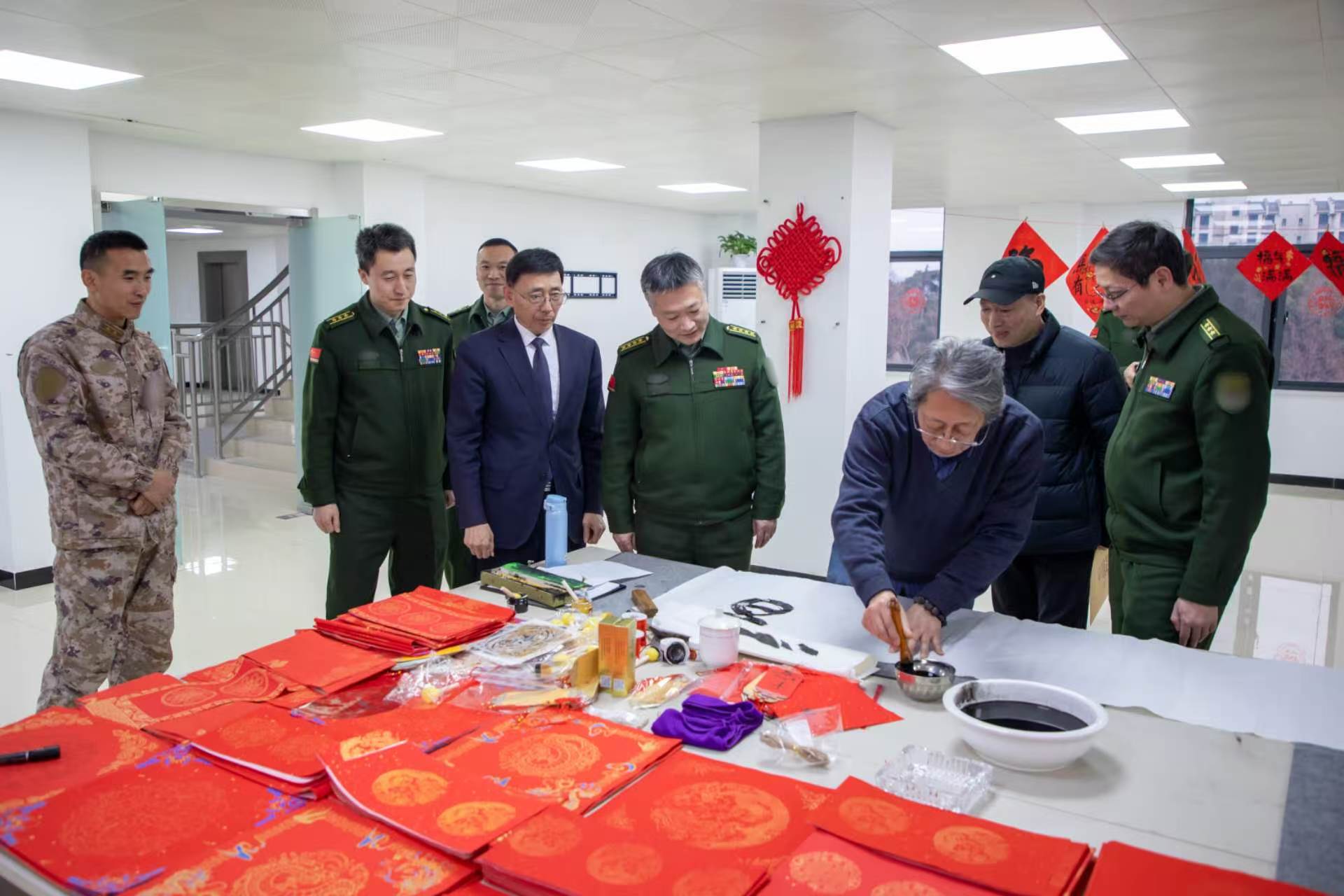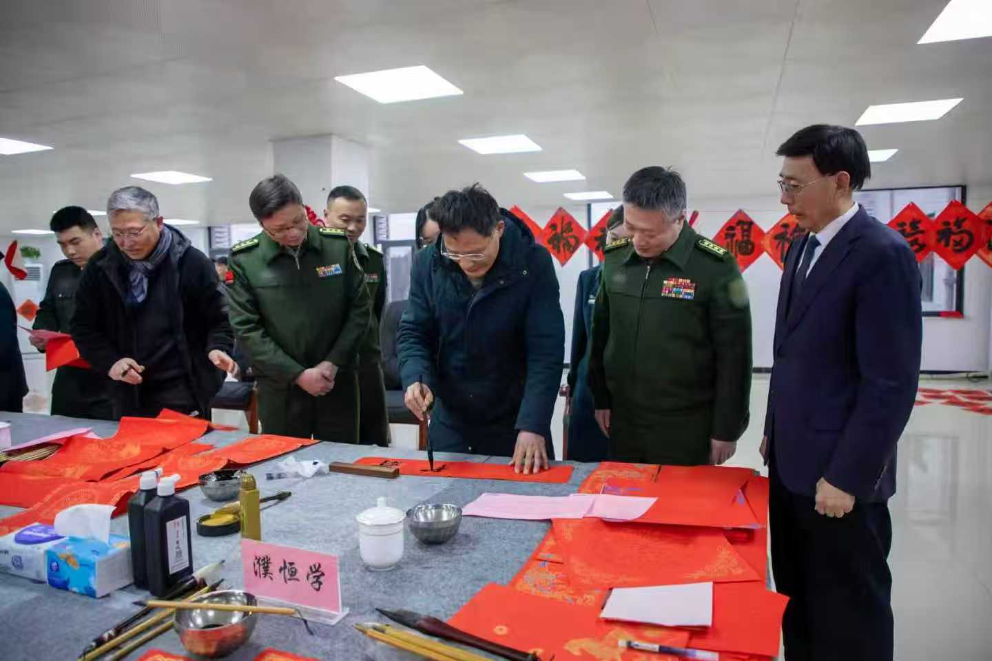 墨韵寄丹心 笔意铸长城——爱德基金会公益书画院赴61175部队新春慰问笔会圆满举行 戴德新紫金山东麓报道 冬日暖阳洒军营,翰墨飘香润兵心。为弘扬中华优秀传统文化,表达对人民子弟兵的崇高敬意和深情慰问,2月9日下午,爱德基金会公益书画院爱心书画家一行,走进解放军61175部队,隆重举办“墨韵寄丹心 笔意铸长城”新春慰问笔会活动。政治委员杨海滨、副政委雒立群、政治工作部主任韩守勇、副主任陈晓飞等相关领导及官兵代表出席了此次慰问笔会活动。 下午三时,笔会活动在庄重而热烈的气氛中拉开帷幕。政委杨海滨发表了热情洋溢的欢迎辞,对爱德基金会公益书画院爱心艺术家们的到来表示衷心感谢。他高度评价了此次文化拥军活动的重要意义,认为这不仅是一场高水平的艺术交流,更是一次深刻的双拥共建实践,用中华传统书画艺术这一独特形式,丰富了官兵精神文化生活,陶冶了情操,鼓舞了士气,必将进一步巩固和发展“同呼吸、共命运、心连心”的军政军民关系。 爱德基金会公益书画院常务院长戴德新致辞。他介绍了书画院立足公益、服务社会的宗旨,以及此次慰问活动的初衷。他表示,部队官兵是新时代最可爱的人,他们坚守岗位、保家卫国,书画艺术家们有责任、有义务用手中的笔墨,为他们送去节日的祝福和文化的滋养,以此表达对国防事业的坚定支持和对人民子弟兵的诚挚敬意。 著名书画家、爱德基金会公益书画院常务院长、中国书法家协会会员童讯代表书法家发言。他结合自身艺术实践,阐述了书画艺术所蕴含的家国情怀与精神力量,认为这与军人忠诚、担当、奉献的品质高度契合。他表示,能为官兵们创作书画作品,感到无比荣幸和自豪,愿以笔墨描绘壮美山河,歌颂铁血军魂。 简短的开幕式后,书画家与部队官兵进行了亲切的艺术交流。书画院秘书长、中国书法家协会会员、兰亭奖得主、镇江美协副主席马宏峰,秘书长、江苏省省直书法家协会秘书长包学文,常务理事、中国药科大学副教授濮恒学,常务理事、著名书画家邓广等艺术家们,与官兵们围坐一堂,畅谈书画艺术欣赏与创作心得,解答官兵们感兴趣的艺术问题。现场气氛轻松融洽,艺术拉近了彼此的距离。 交流环节后,全体与会人员合影留念,记录下这难忘的军地文化交融时刻。 随后,备受期待的现场笔会将活动推向高潮。书画厅内,长桌铺开,毛毡垫就,提前准备好的墨汁、生宣纸、福字红纸、国画颜料以及瓷碗等一应俱全。爱心书画家们精神抖擞,挥毫泼墨,各展其长。顷刻间,笔走龙蛇,墨彩飞扬。书法作品或雄浑刚健,或俊秀飘逸,“精武强能”、“军魂”、“赤胆忠心”、“福”字春联等作品饱含着对官兵的赞美与祝福;绘画作品则既有气势磅礴的山水,寓意保家卫国的钢铁长城,也有生机盎然的花鸟,寄托对美好生活的祝愿。艺术家们全神贯注,精心创作,每一幅作品都凝聚着他们对部队官兵的深情厚谊。 官兵们纷纷驻足欣赏,为艺术家们精湛的技艺赞叹不已。有的官兵主动上前,帮忙铺纸、研墨,近距离感受艺术创作的魅力;有的则结合自身感悟,向艺术家们“点题”求字求画。艺术家们有求必应,根据官兵的喜好和意愿,即兴创作,将作品赠与可爱的战士们。现场墨香四溢,欢声笑语,暖意融融,洋溢着浓厚的节日氛围和军民一家亲的和谐景象。 此次“墨韵寄丹心 笔意铸长城”新春慰问笔会,不仅是一次成功的文化拥军活动,更是一次生动的爱国主义教育和传统文化熏陶。它以书画为媒介,以笔墨传真情,在方尺宣纸间抒写了军民携手、共筑长城的坚定信念,为即将到来的新春佳节增添了浓厚的文化年味,也为巩固和发展军政军民团结注入了新的文化动能。活动在军民共庆、意犹未尽的氛围中圆满落下帷幕。 慰问笔会活动由韩守勇主任主持。部队老领导向岭出席了今天慰问笔会活动。