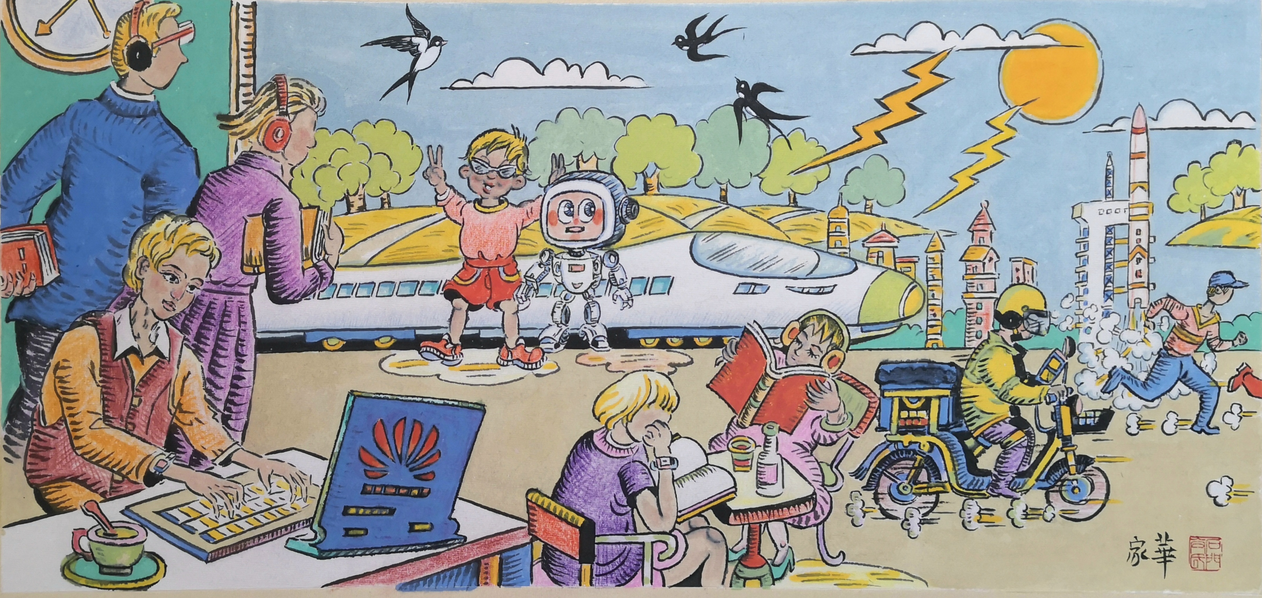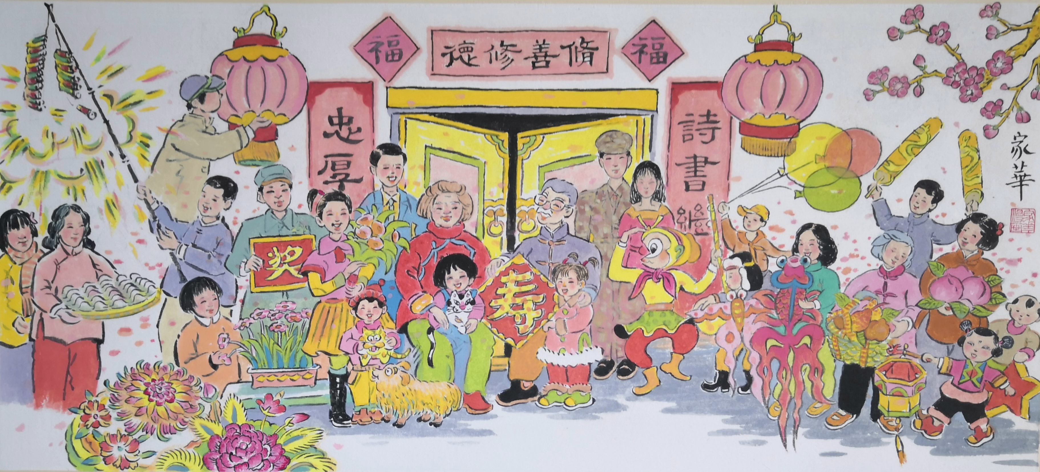 从“年俗漫画”中捕捉平凡生活中的本真与诗意(《智能时代兴国运》《诗书继世家旺兴》《和睦邻里人自强》),作者卞家华,他在漫画道路上已深耕五十余载。其作品承袭丰子恺一脉的人文关怀,以淳淡朴拙的笔触,刻画出年的气息。
