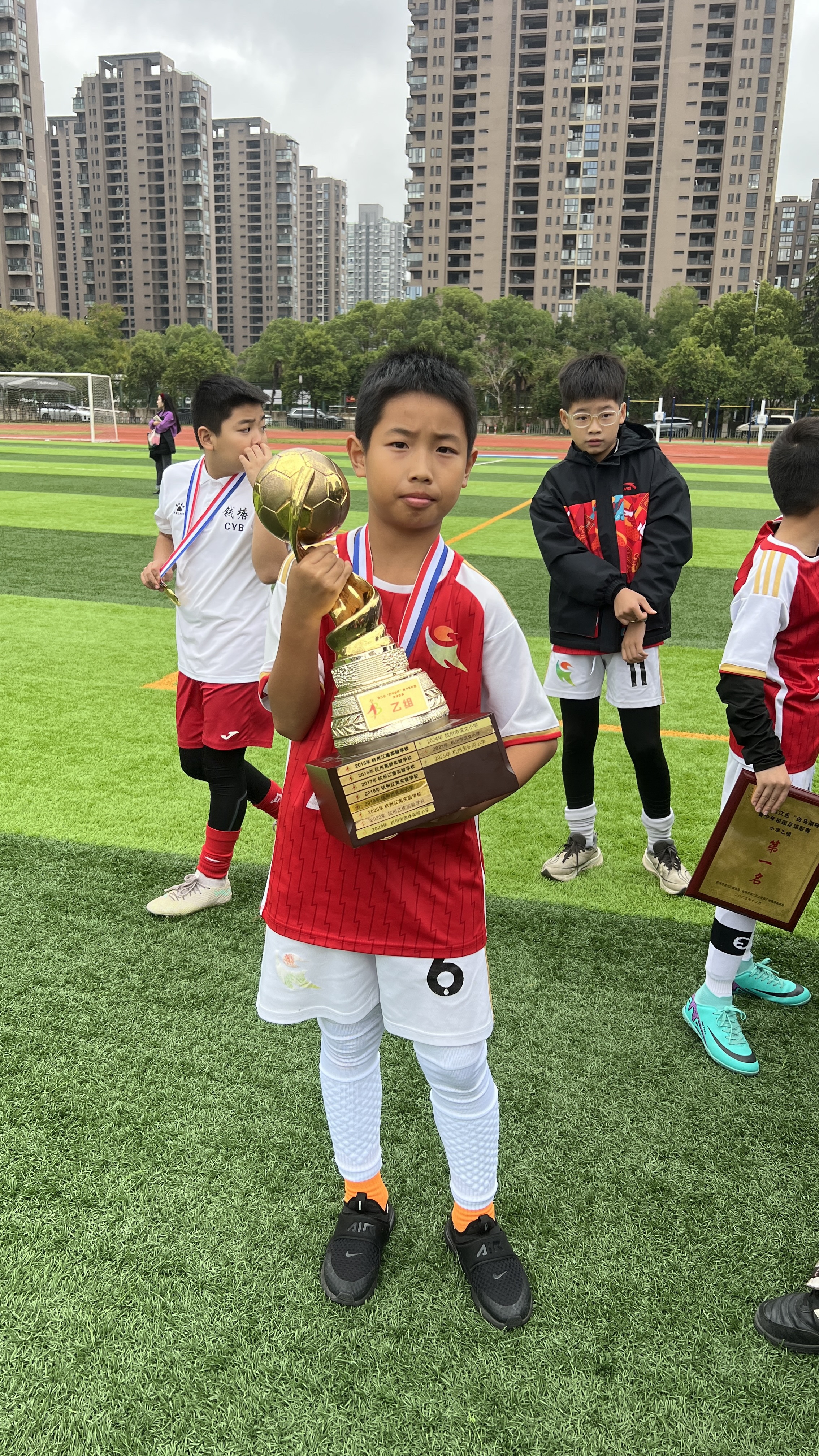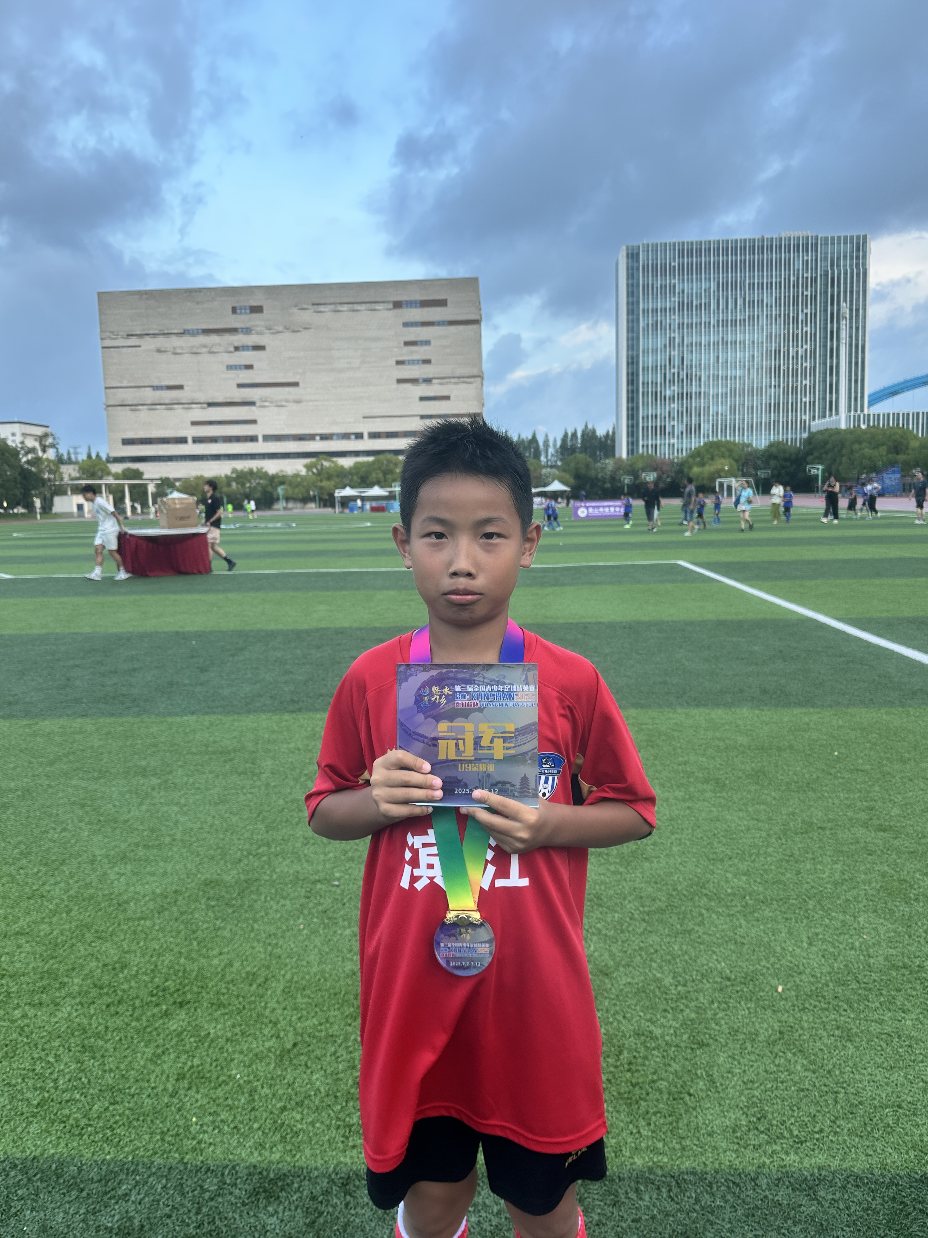 我和足球 足球是我最亲密的伙伴,它陪着我从刚入学的小不点,长成了能为球队冲锋陷阵、守护防线的小球员。每当脚踩绿茵场,听着球鞋摩擦草地的沙沙声,我的心里就充满了无限力量。 小学一年级,我怀着满满的好奇加入了校足球队。那时候的我还没接触过足球,跑起来跌跌撞撞,传球也总找不准队友。但教练说我眼里有光,肯下苦功。于是,每天放学后的操场都有我的身影:反复练习射门姿势,围着跑道一圈圈冲刺,对着墙壁练传球准度。汗水浸湿了球衣,膝盖摔出了淤青,可我从来没哭过,因为足球在我脚下滚动的感觉,实在太快乐了。 凭借着坚持和进步,我顺利入选了滨江 15-16 区队。在这里,我遇到了更多的队友和教练,足球技术也突飞猛进。我既能当前锋,像猎豹一样冲向对方球门,抓住机会一脚射门;也能当后卫,稳稳站在防线前,把对手的进攻一次次挡在门外。教练常夸我 “全能又拼命”,队友们也愿意和我配合,这份信任让我更加热爱足球。 最让我难忘的是白马湖杯的最后一场长河小学VS江南实验总决赛。比赛上半场,我们已经凭借默契配合 1:0 领先,下半场对手攻势越来越猛,大家不敢有丝毫松懈。就在这时,对方球员把球踢出了边线,裁判示意我们发界外球。我快步跑到球边,双手紧紧抱住足球,目光锁定对方球门 —— 教练平时教的 “界外球直接攻门” 技巧,此刻在我脑海里格外清晰。我深吸一口气,身体向后弓起,用尽全身力气将球掷向禁区前沿,紧接着拔脚怒射!足球带着呼啸声飞向球门,对方守门员反应迅速扑了一下,指尖触到了球,可球的力量太大了,依旧改变不了方向,直直钻进了网窝!“球进了!” 裁判举起手势示意有效,比分变成 2:0!全场瞬间沸腾,队友们冲过来把我团团围住,又蹦又跳地喊着我的名字,教练也笑着朝我挥手,眼里满是赞许。 最后二分钟,我们稳稳守住防线,把 2:0 的比分保持到了终场。当裁判吹响终场哨声的那一刻,大家相拥而泣,所有的疲惫都被夺冠的喜悦冲散了。心里明白,这粒界外球破门的奇迹,离不开平日里的反复练习,更离不开队友们的信任与支持。 足球教会我坚持、勇敢和团结,也给我带来了数不清的快乐和荣誉。我会一直带着这份热爱踢下去,让足球陪伴我成长,在绿茵场上继续追逐梦想!