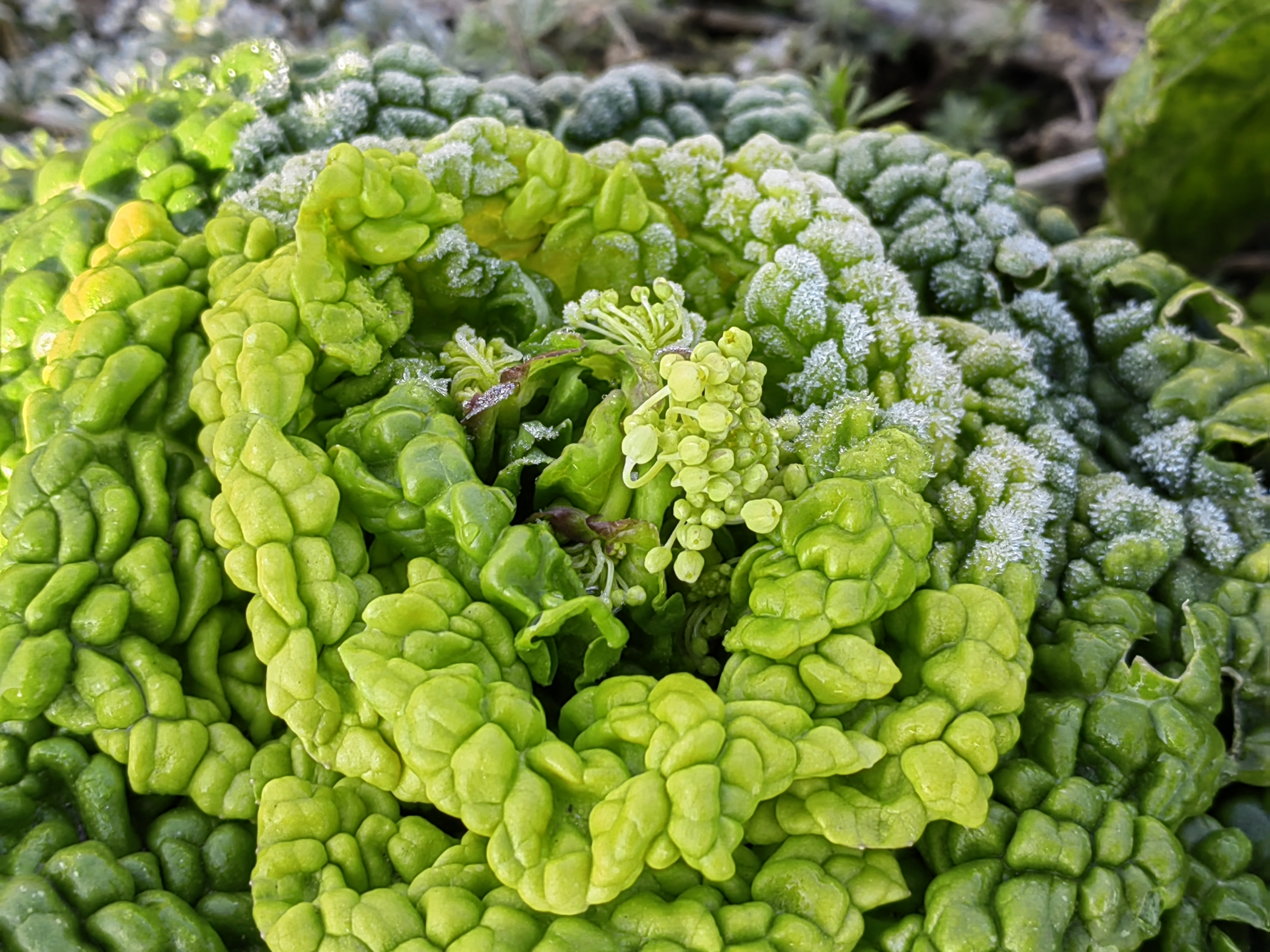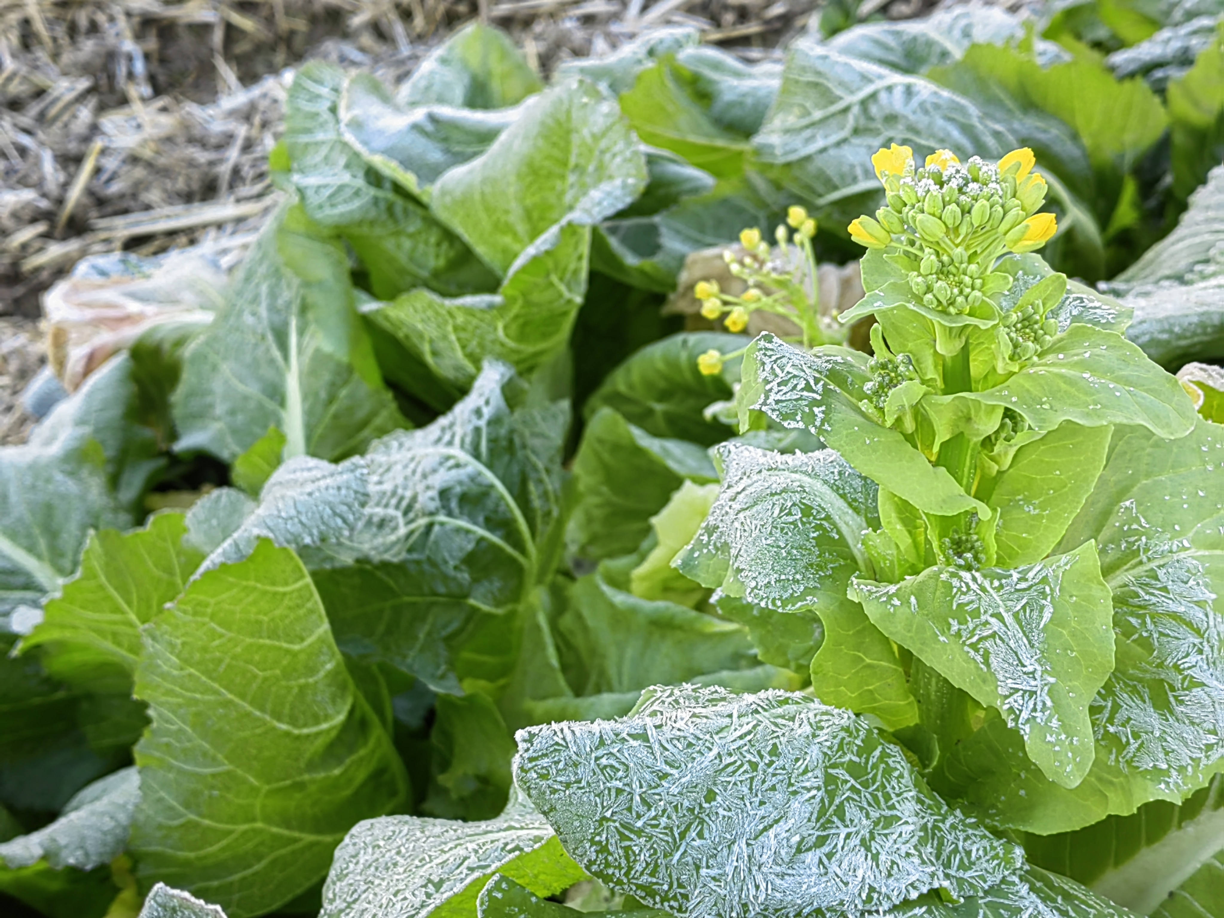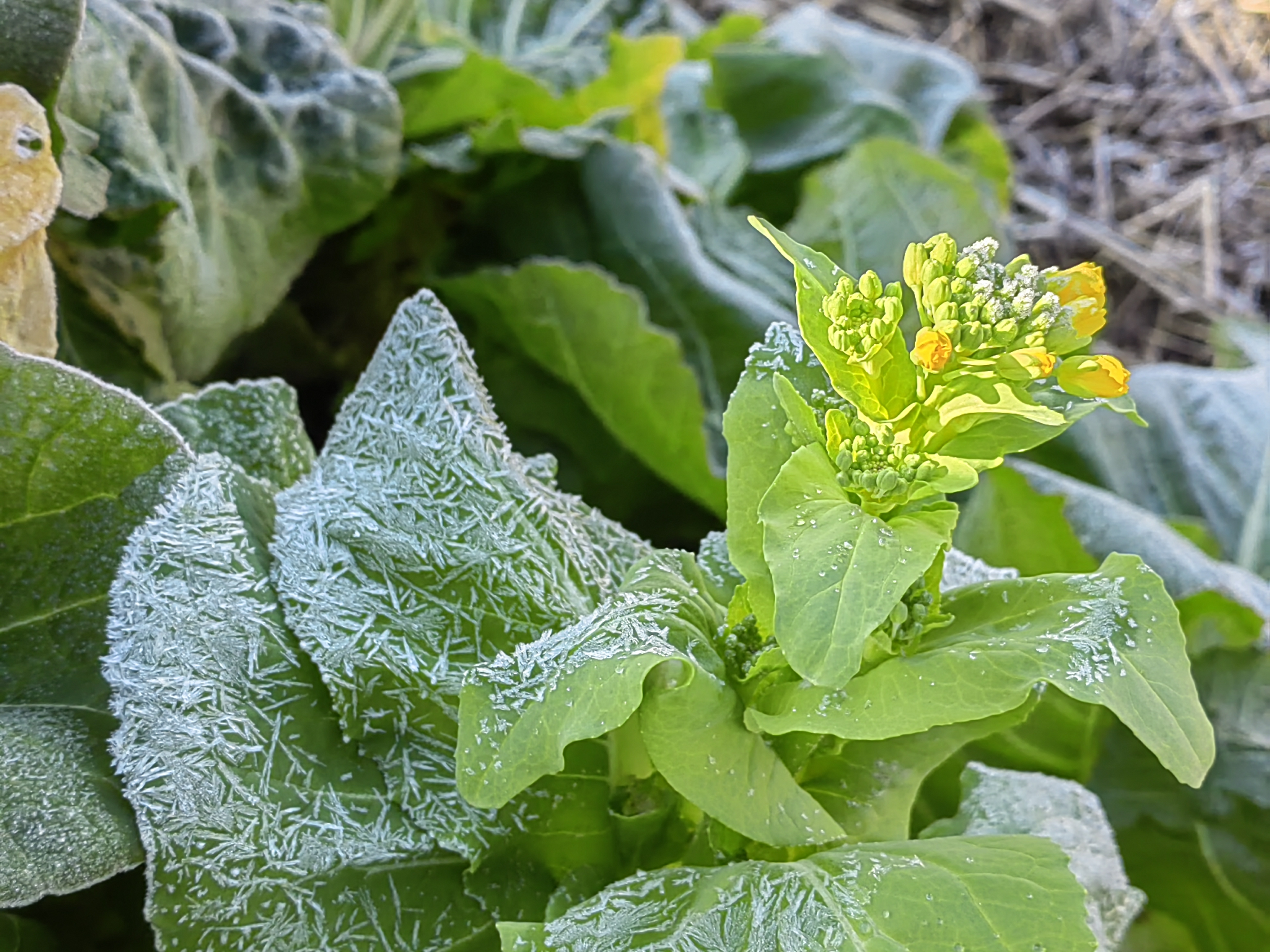 在霜花里遇见菜花 冬天的心 突然软了一下