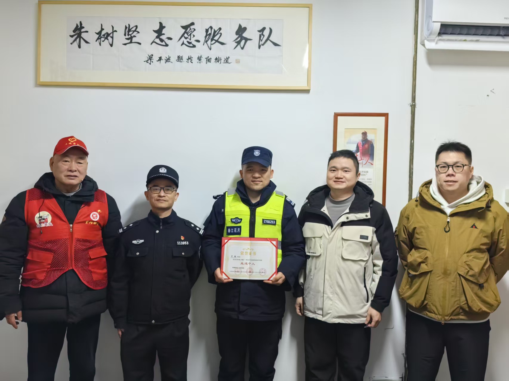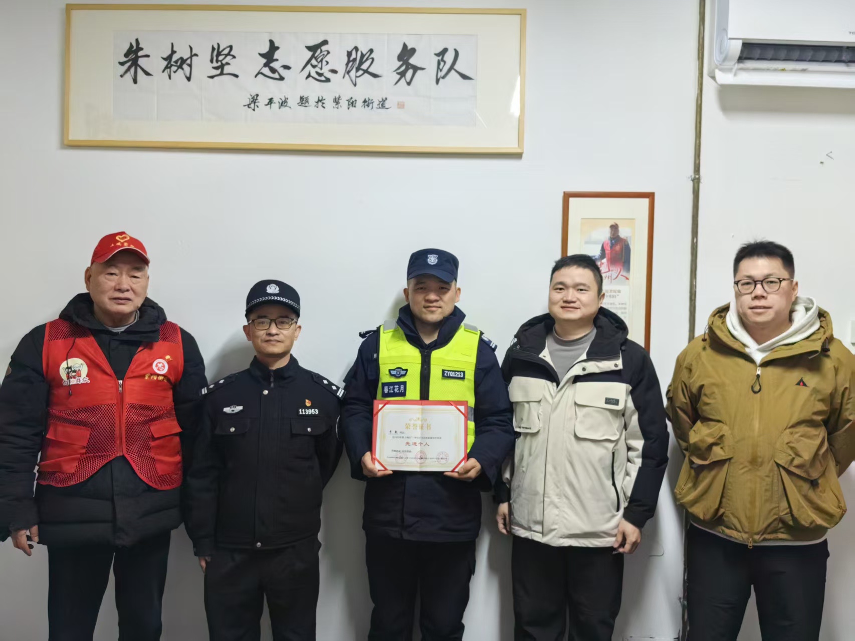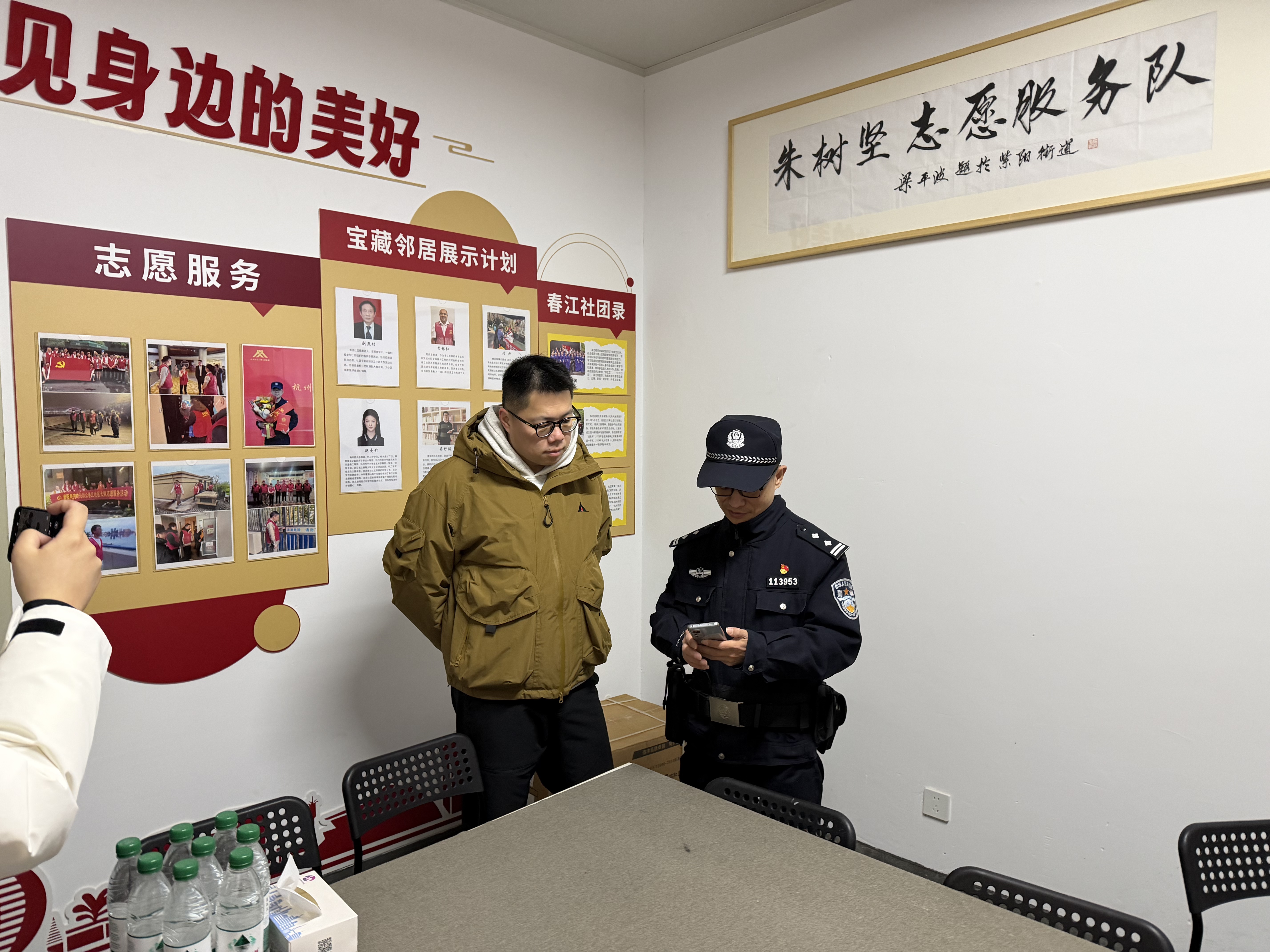 今天早上,紫阳派出所、春江社区及朱树坚志愿服务队对春江花月小区物业保安于凯同志进行慰问,并代表上城区区委社工部、上城区委政法委、上城区公安分局对于凯同志进行表彰。于凯同志2025年在楼顶勇救轻生女子的行为,是上城区“一呼百应”共治体系的优秀体现,生动诠释了基层共治力量。希望以于凯同志为代表的一众基层工作者,继续踏实、负责做好自己的本职工作,在平凡的岗位上继续书写不平凡的故事。