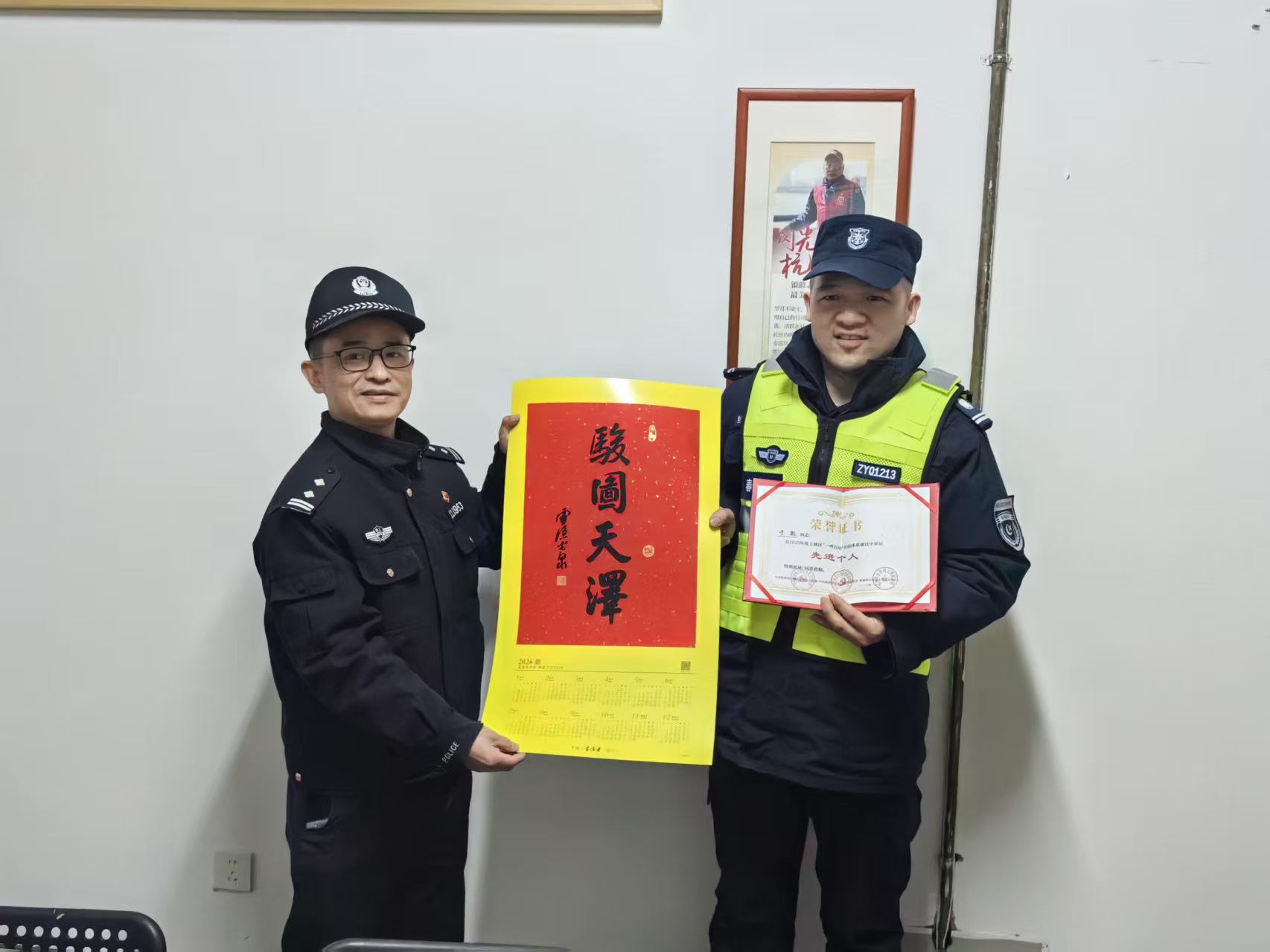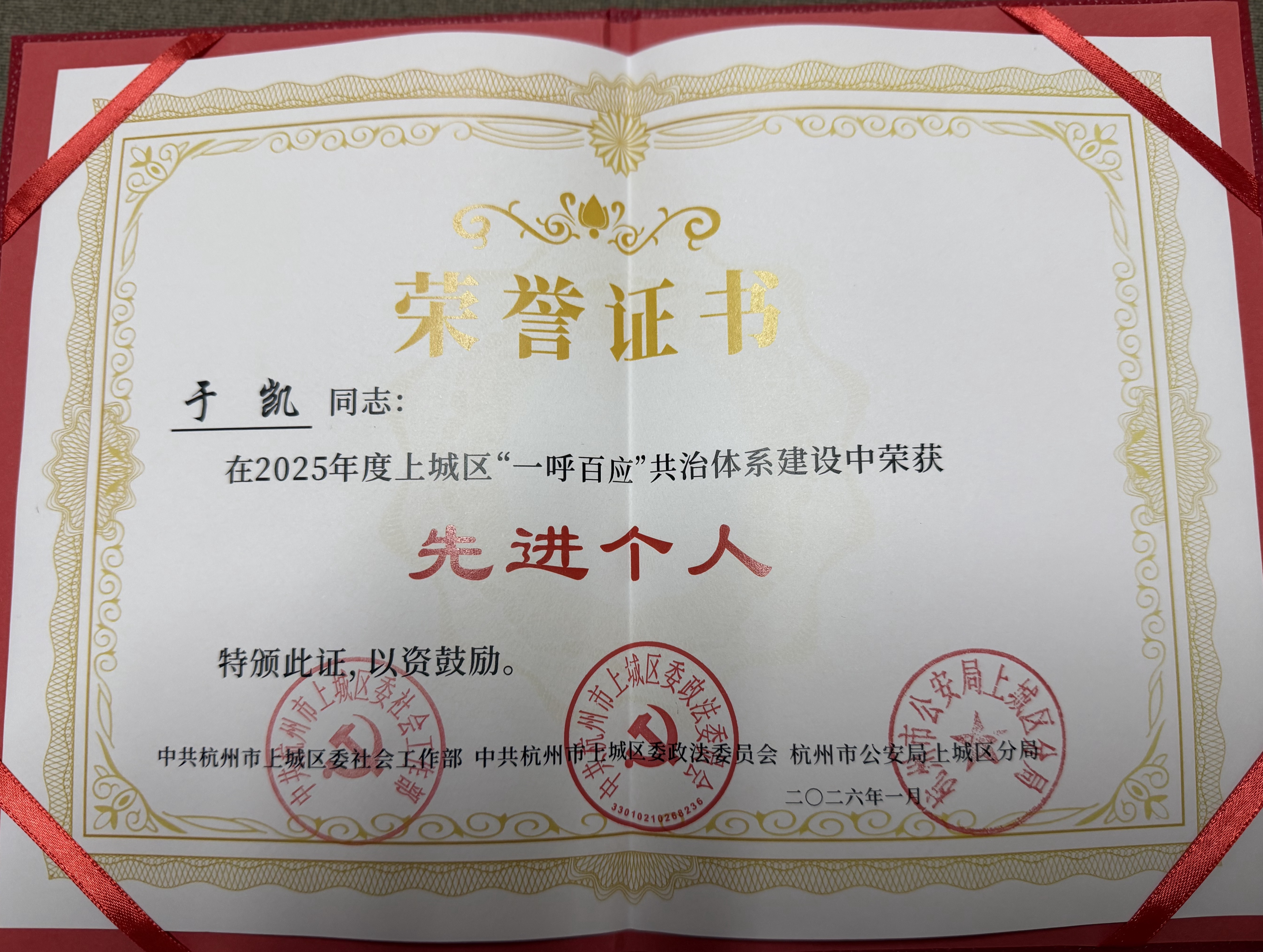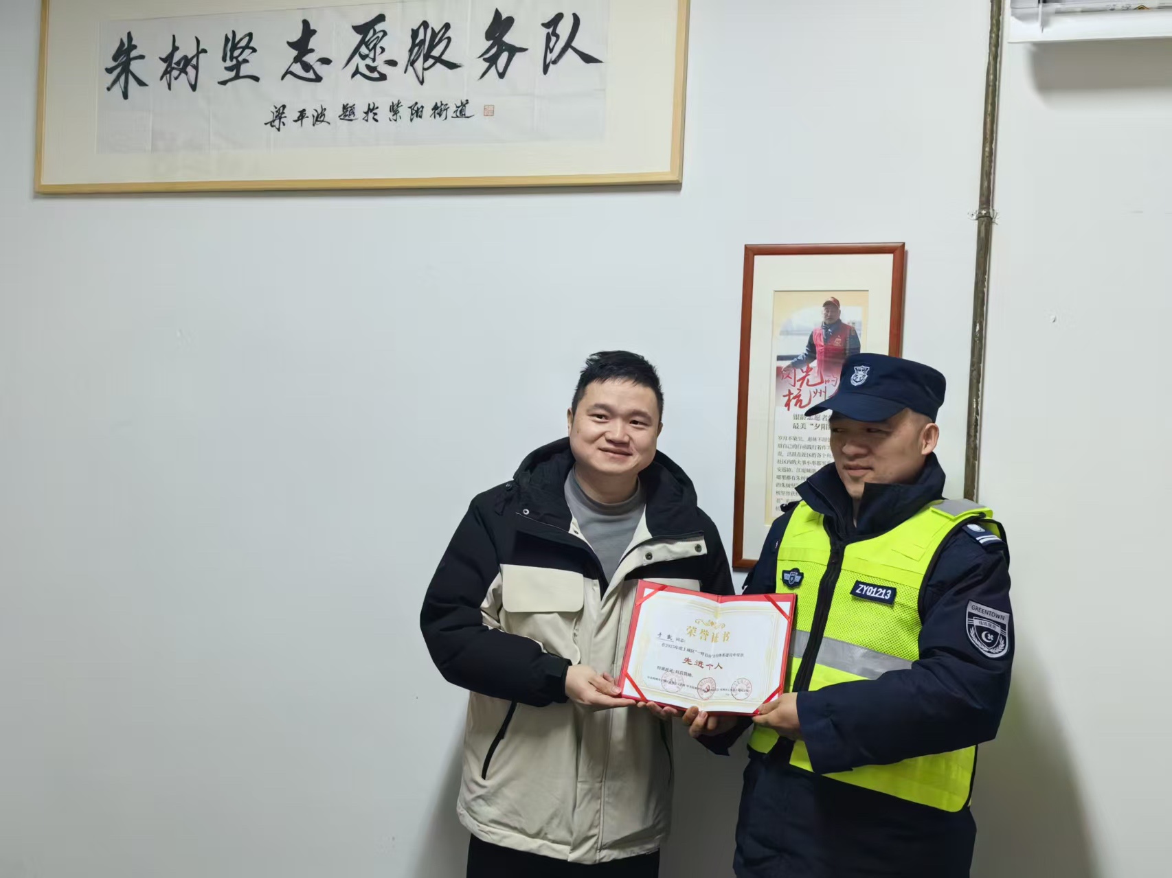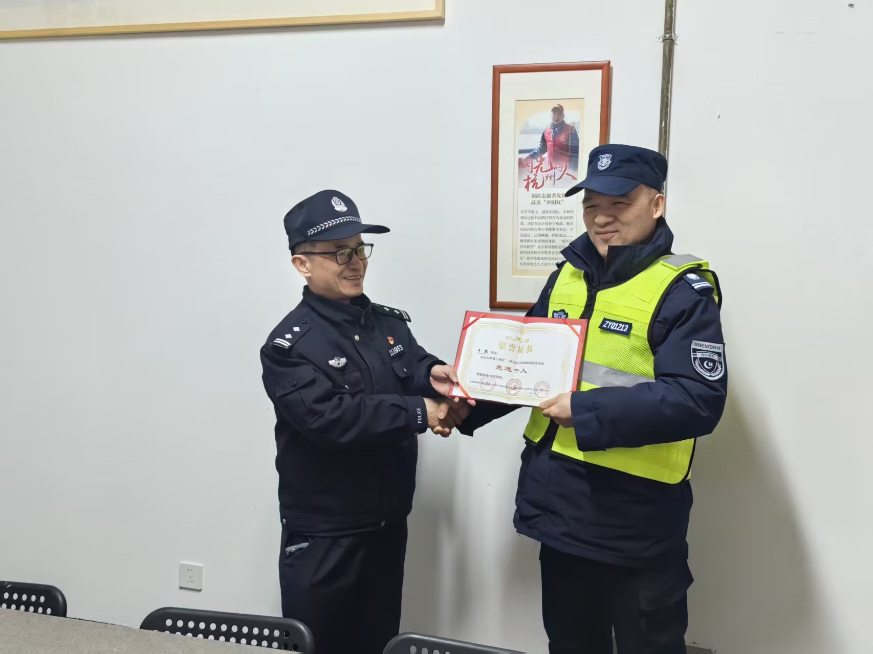 今天早上,紫阳派出所、春江社区及朱树坚志愿服务队对春江花月小区物业保安于凯同志进行慰问,并代表上城区区委社工部、上城区委政法委、上城区公安分局对于凯同志进行表彰。于凯同志2025年在楼顶勇救轻生女子的行为,是上城区“一呼百应”共治体系的优秀体现,生动诠释了基层共治力量。希望以于凯同志为代表的一众基层工作者,继续踏实、负责做好自己的本职工作,在平凡的岗位上继续书写不平凡的故事。