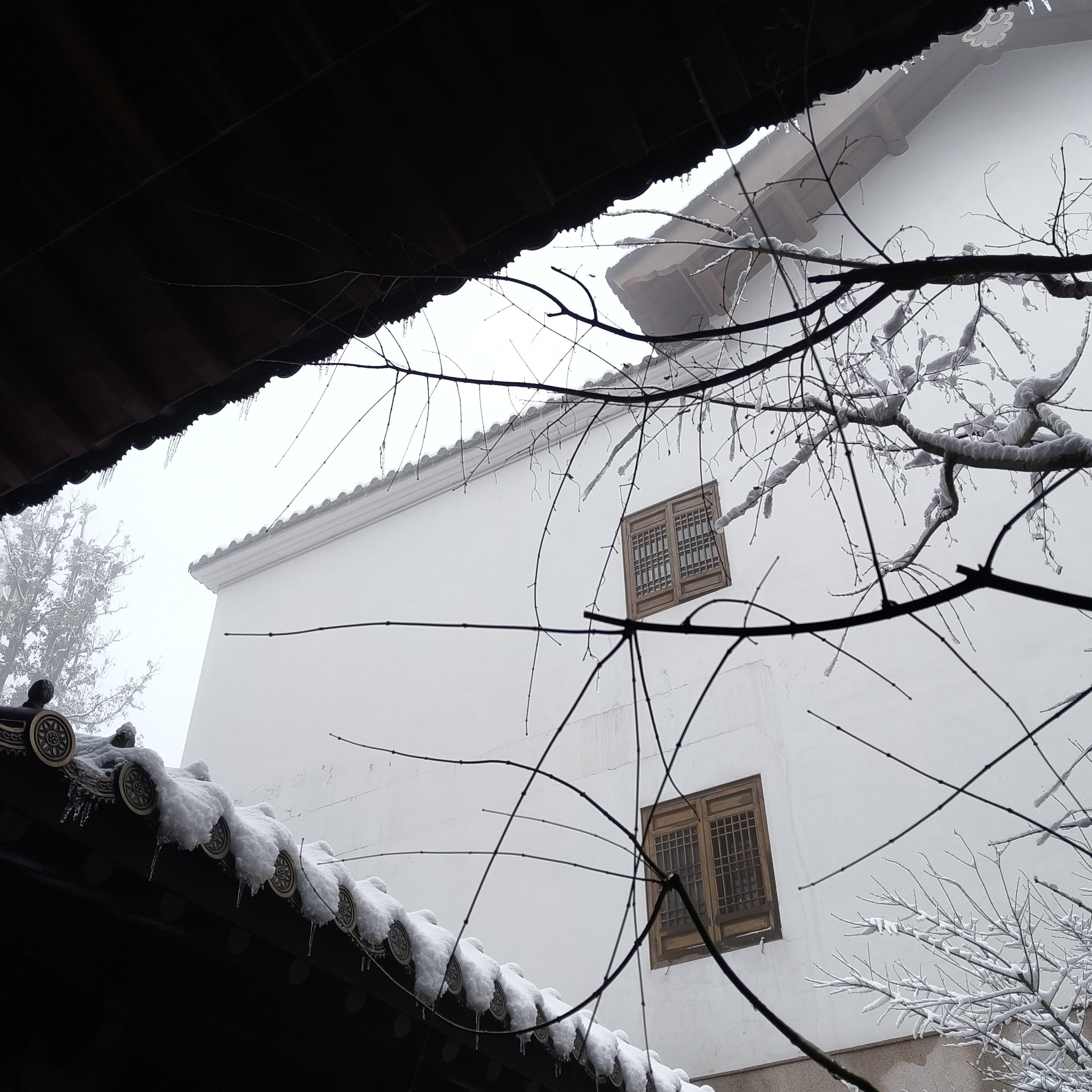 径山追雪。欣赏六出飞花入户,先看青竹变琼枝!雪落径山万寿禅寺,红梅映白墙,静谧得刚刚好~