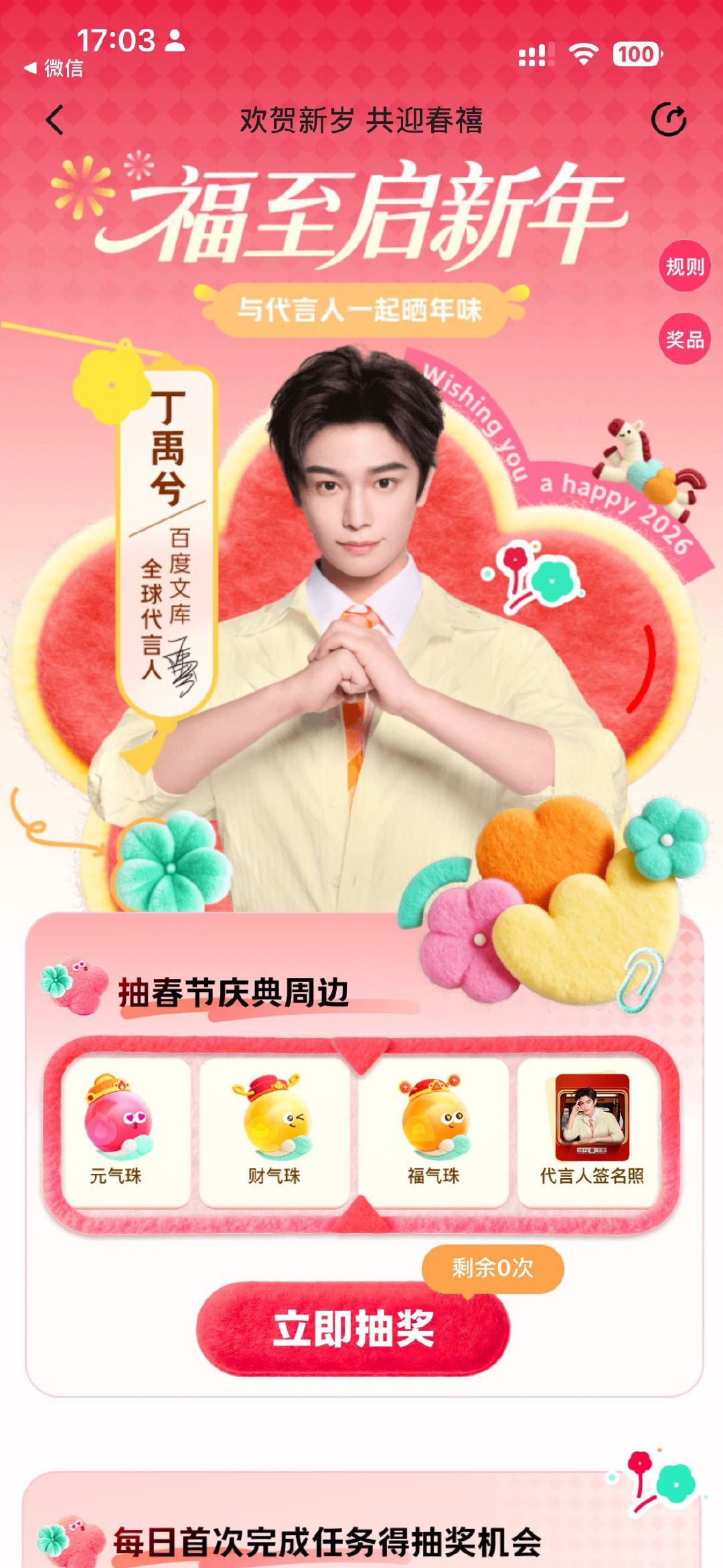 丁禹兮副业是AAA黄金批发,羡慕线下海棠已经羡慕到麻木了!小丁的黄金我没缘分拥有,但百度文库的金条我势在必得!新春抽金活动上线,没被小丁翻牌的我们,在线上照样能把好运和黄金狠狠拿捏住!