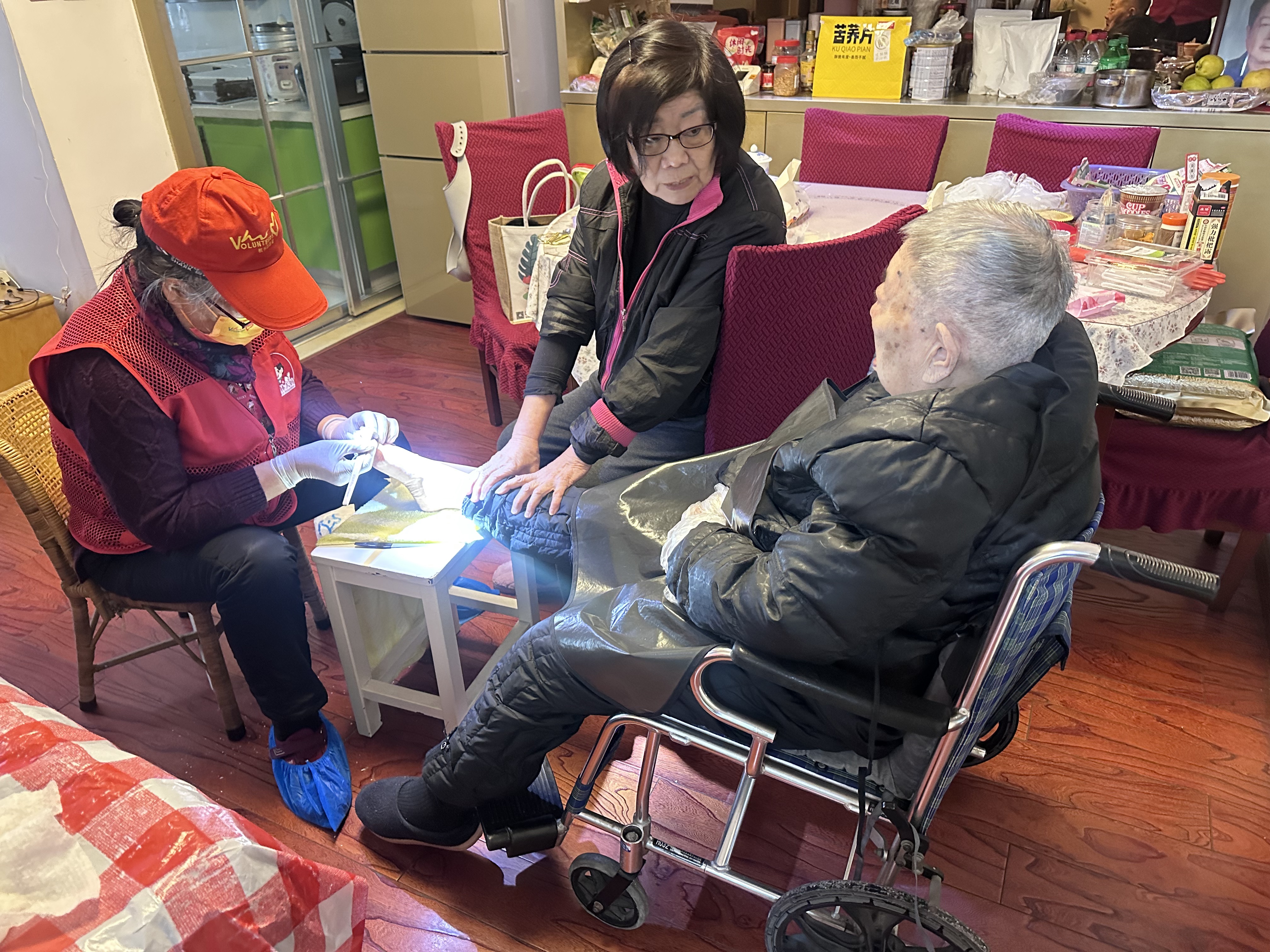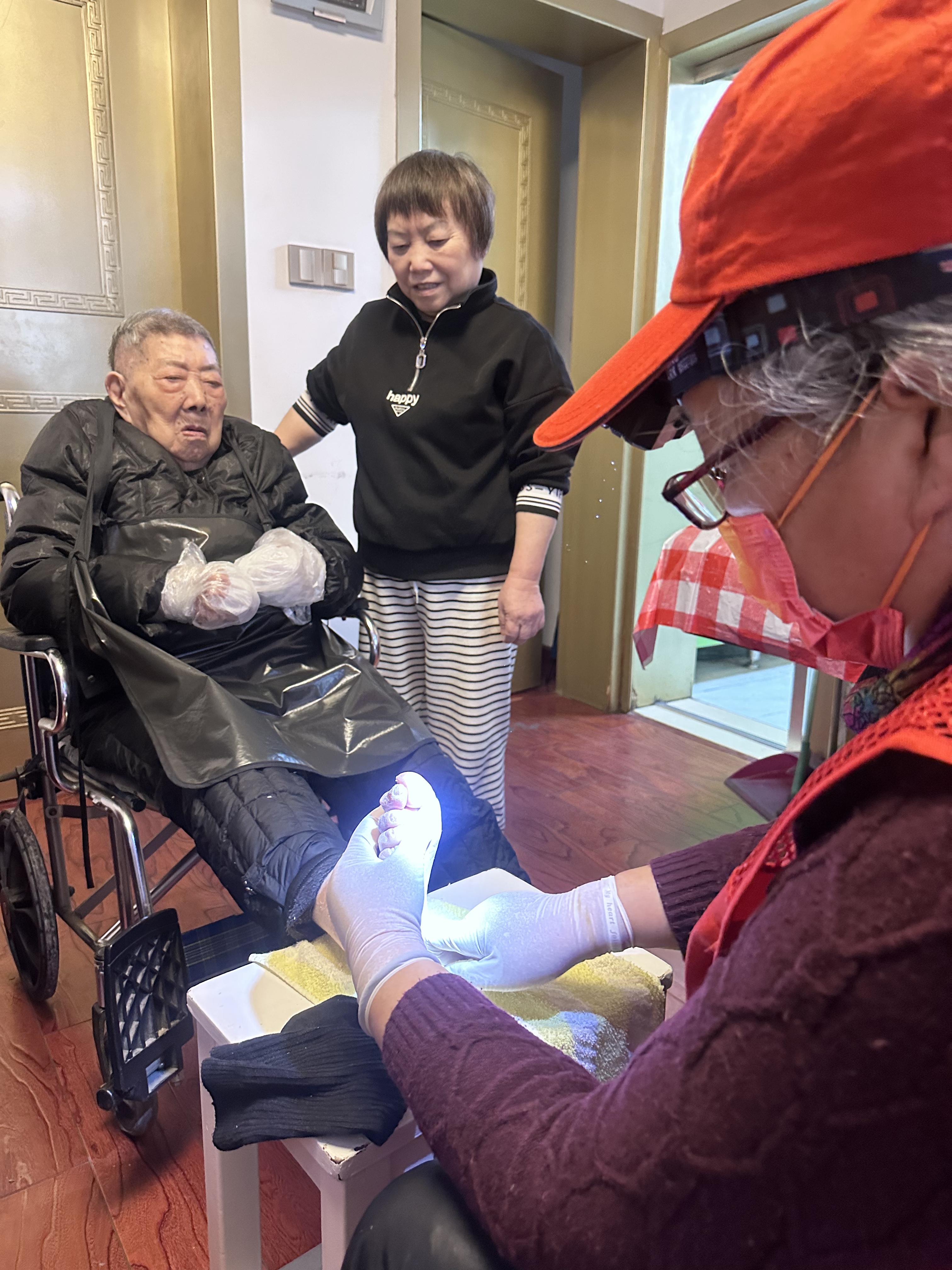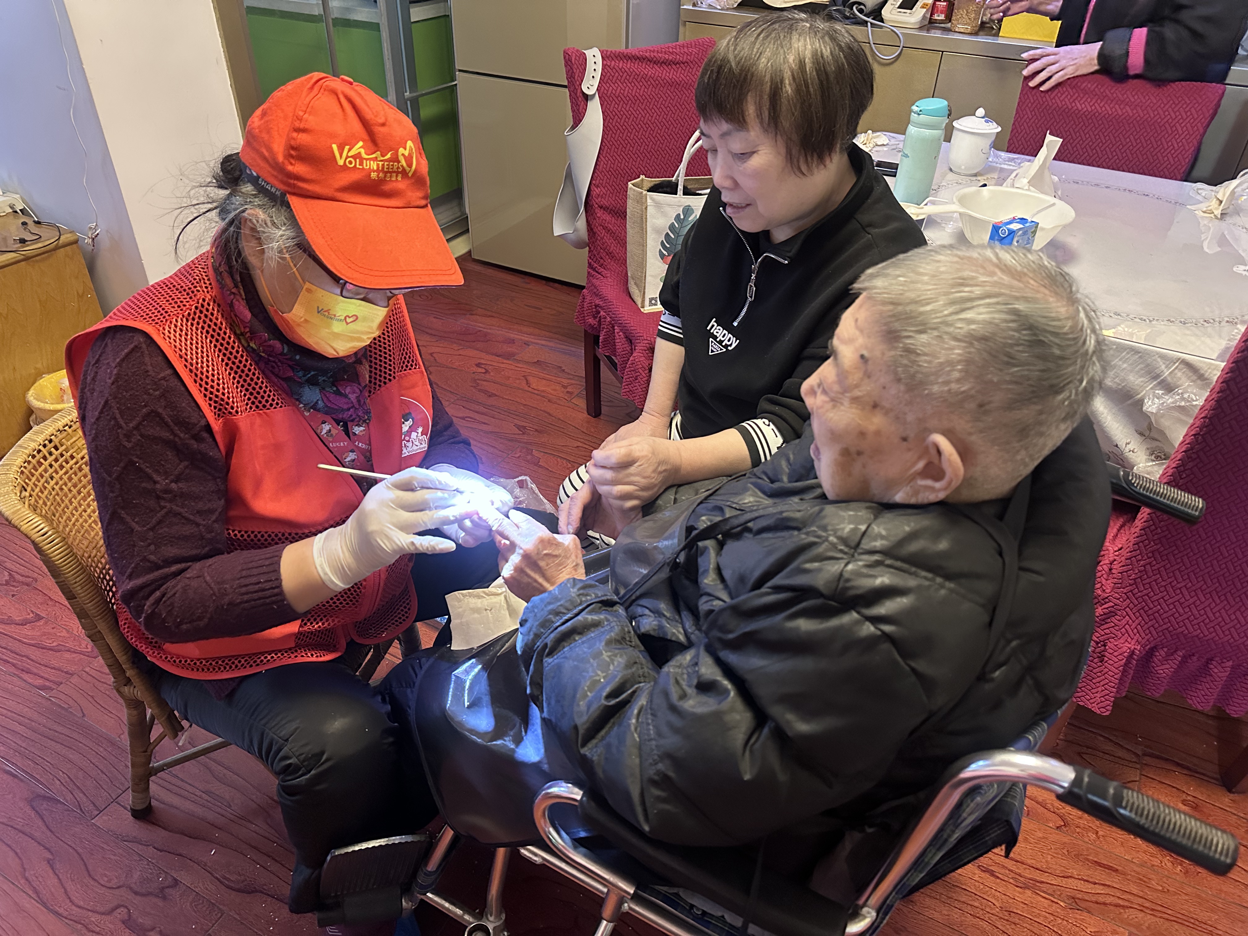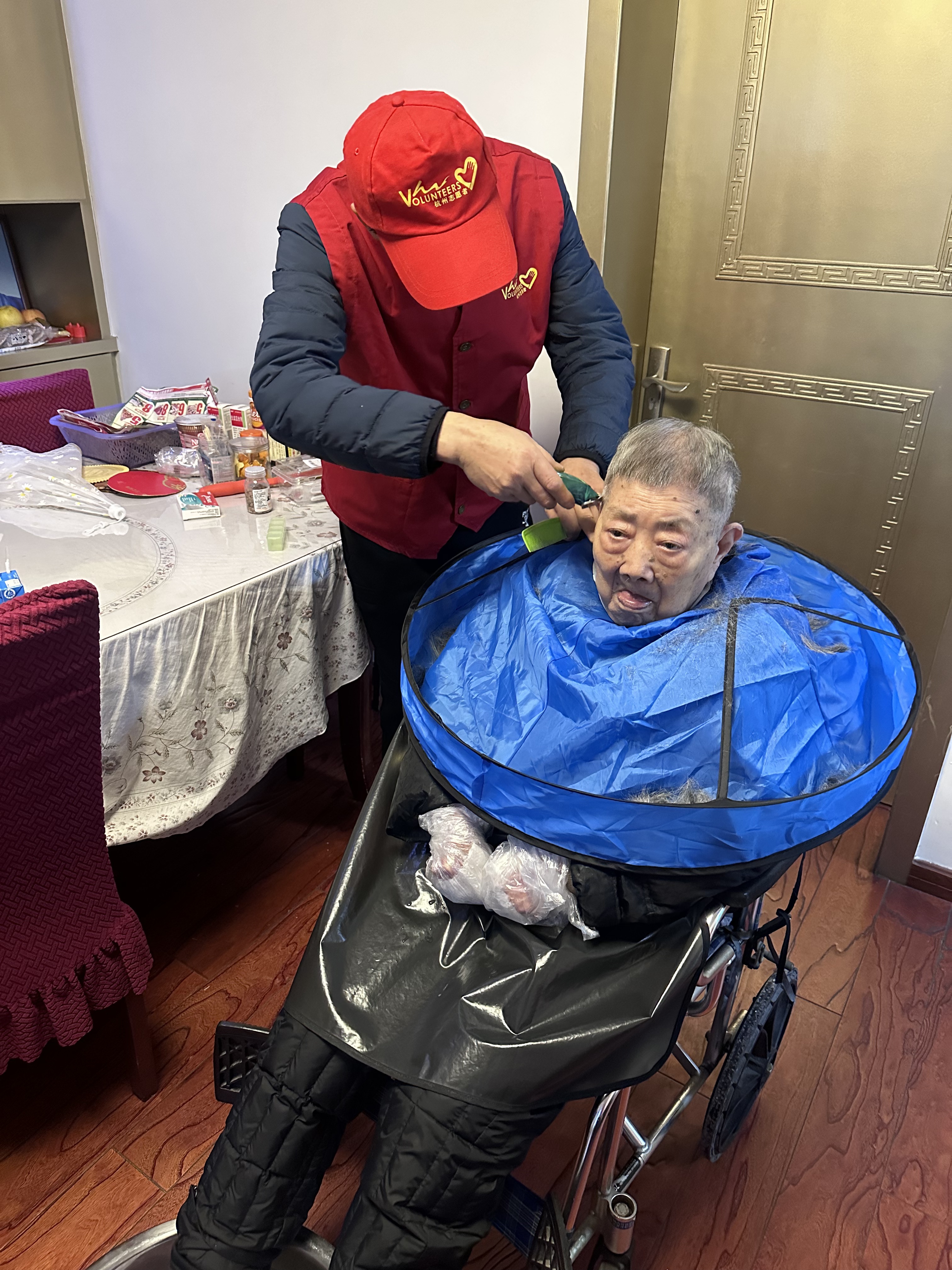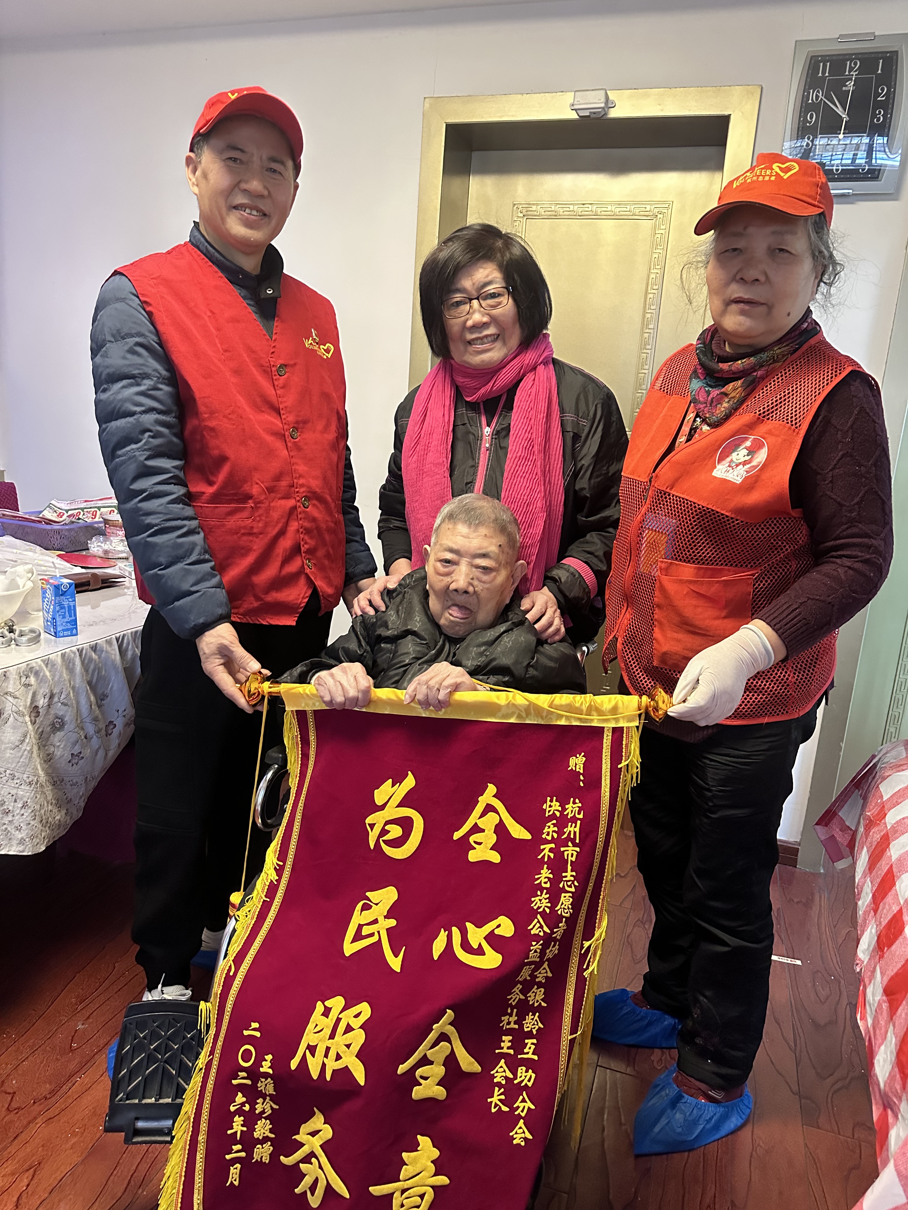“从头到脚送温情”!志愿者新春暖心服务,零距离关爱百岁长者 2026年2月10日,新春佳节临近,杭州市志愿者协会银龄互助分会快乐不老公益服务社的党员志愿者王建接、优秀志愿者任根生身着红马甲,带着满满的爱心走进皇亲苑社区,轻轻叩响了5幢3单元101室的家门,为居住在这里的105岁高龄长者送上“从头到脚”的零距离暖心服务。 志愿者们为长者提供公益理发、修脚、修指甲等贴心照料,这已是他们与老人坚守的第五个年度之约。轮椅上的长者早早等候,脸上洋溢着温暖的笑容,服务完成后舒心的笑脸,便是对志愿者们最好的回馈。 活动中,家属深受感动,特意为志愿者们送上了写有“全心全意为人民服务”的锦旗,以表达最诚挚的谢意。 一份坚守,一份温暖。志愿者们用实际行动照亮长者岁月,传递新春祝福,让爱与关怀在社区久久流淌🌹