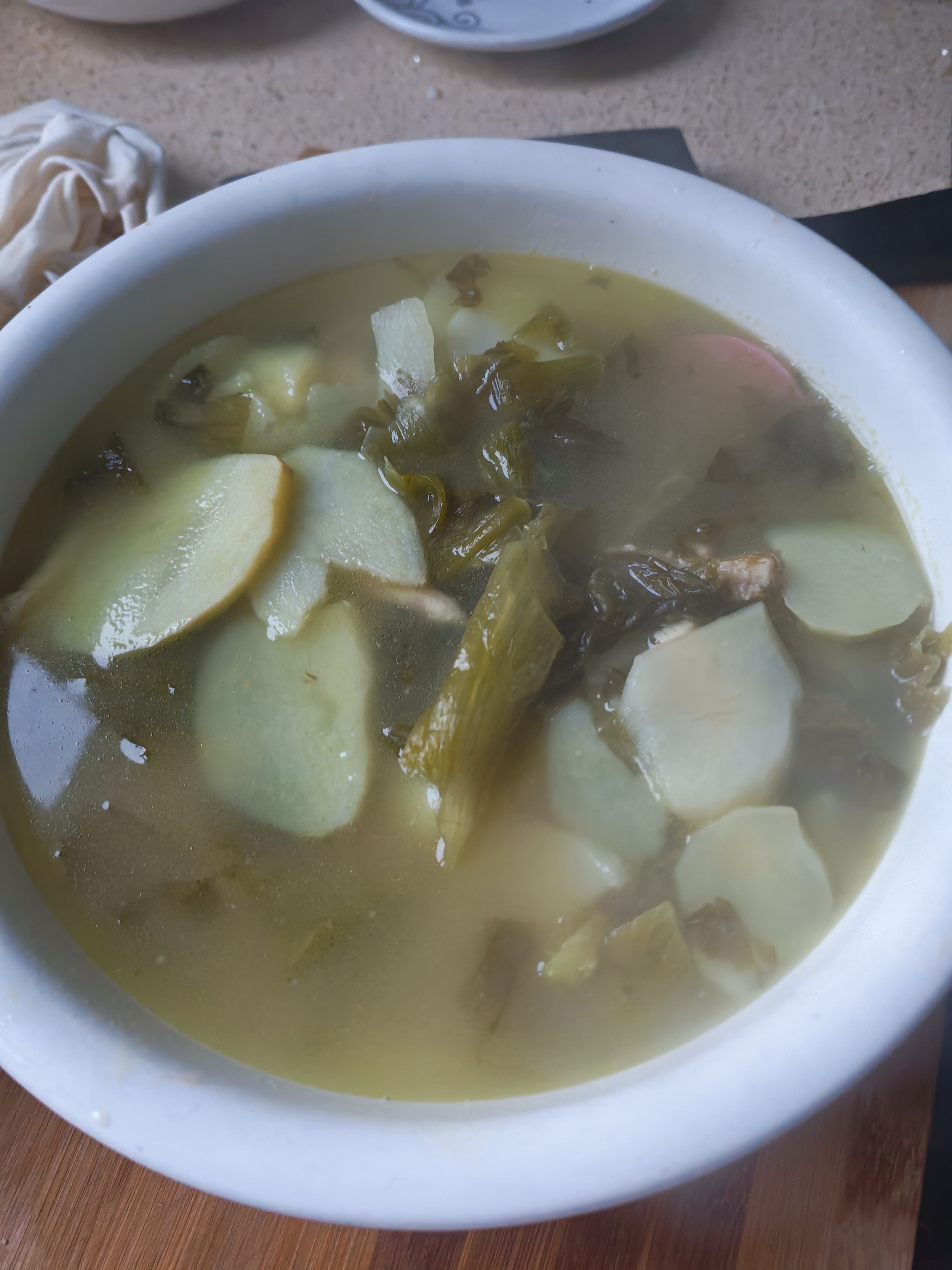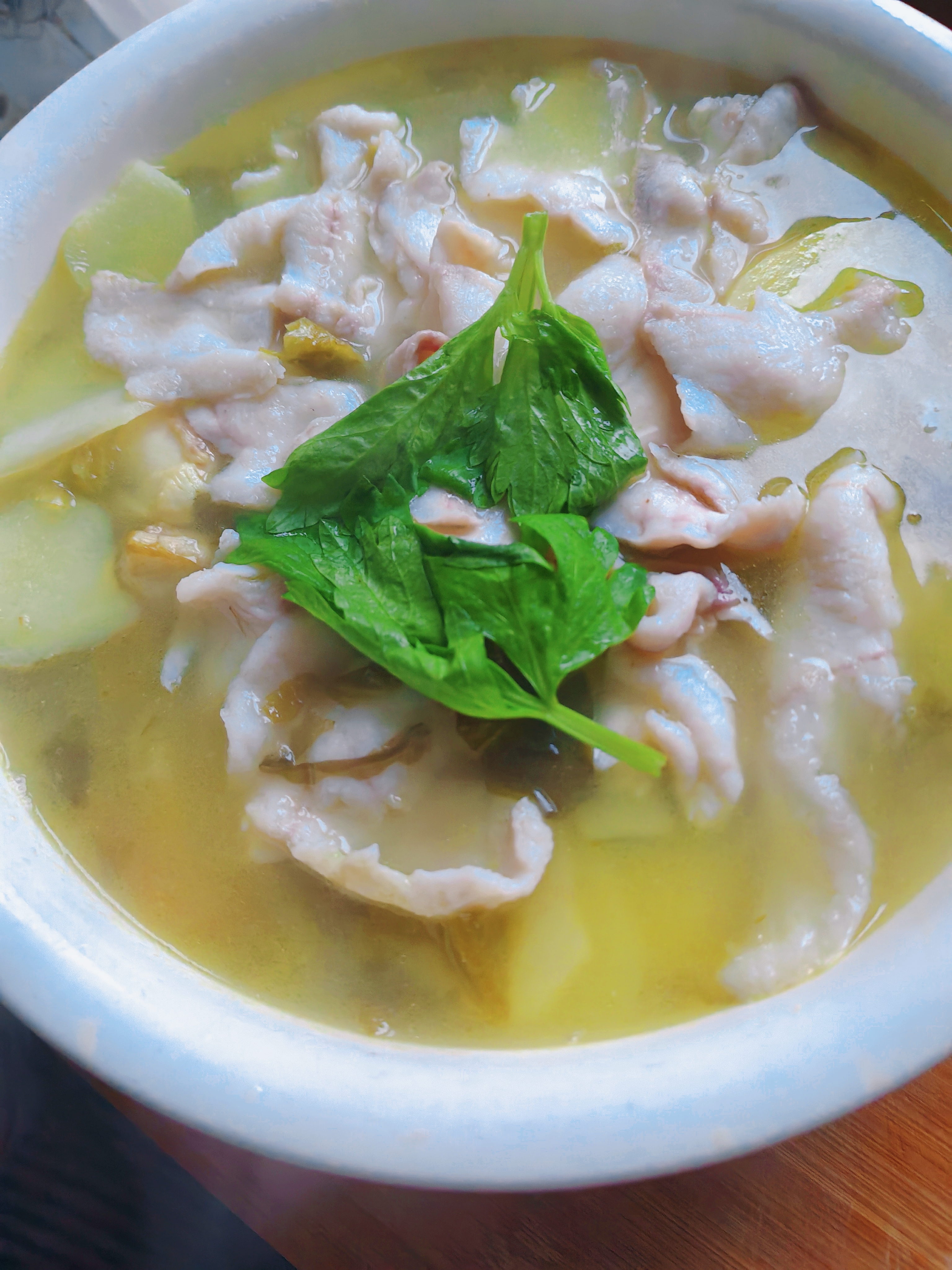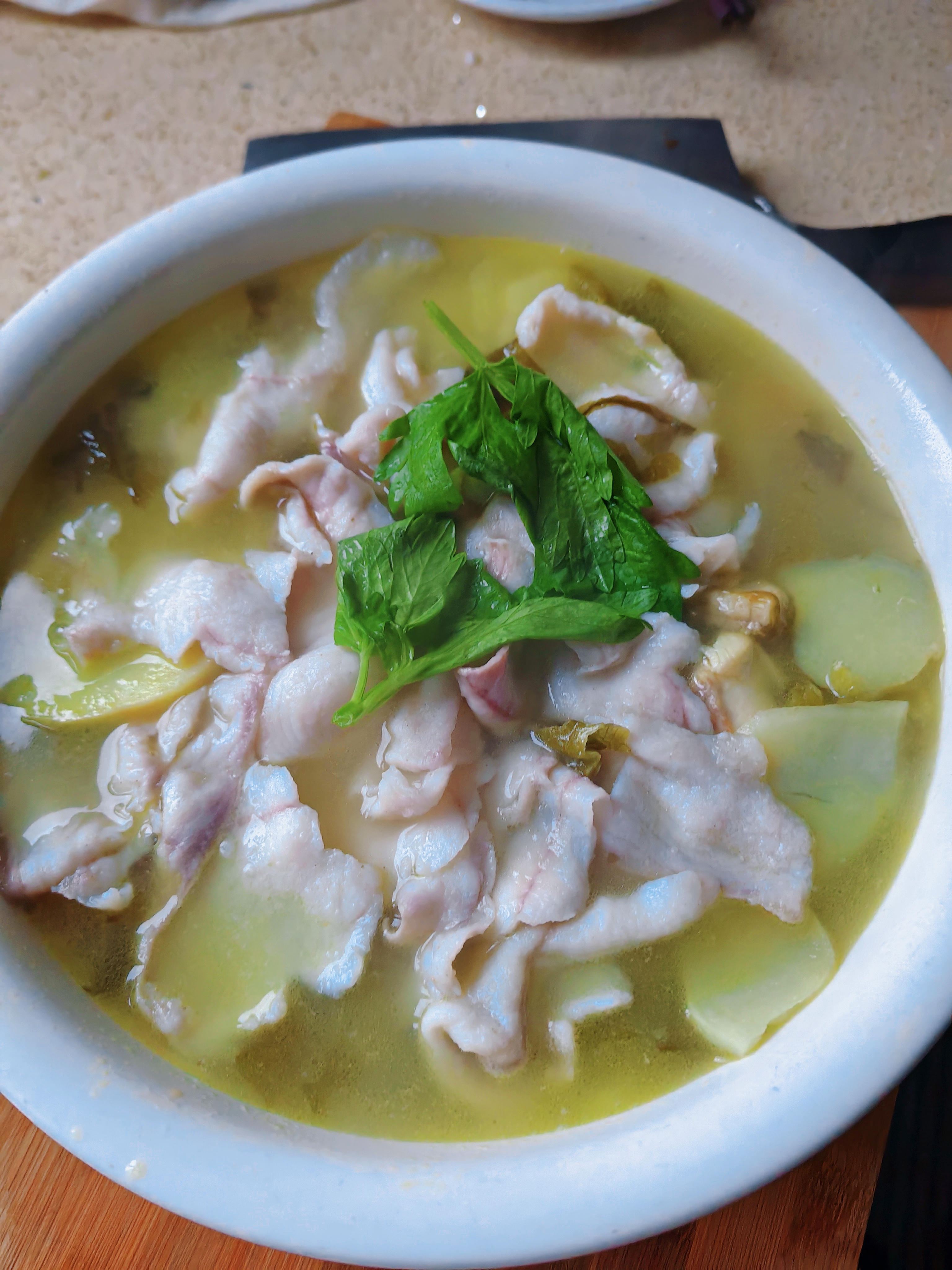 酸菜土豆鱼片|鲜酸开胃,鱼片滑嫩超下饭 一口滑嫩鱼片,一口绵密土豆,酸菜的鲜酸裹着鱼肉的鲜甜,家常又入味,零失败快手硬菜! 详细做法步骤 1. 食材预处理 酸菜切成细丝,土豆切薄片清水冲洗沥干,黑鱼肉片成薄片,加少许盐、料酒、淀粉、蛋清抓匀上浆腌制10分钟,鱼骨切段备用。 2. 煎骨炒香底 锅中热油,放入鱼骨小火煎至两面微黄,下入土豆片翻炒片刻,再放入切好的酸菜丝炒出酸香。 3. 煮底汤入味 往锅中加入足量开水,大火煮沸后转中火煮至土豆绵软、汤底鲜浓,将鱼骨、土豆、酸菜捞出装入碗中。 4. 滑鱼片出锅 另起一锅烧开水,把浆好的鱼片分散下入,煮至鱼片变白卷曲立刻捞出,铺在碗中食材上,可淋少许热油激香即可。