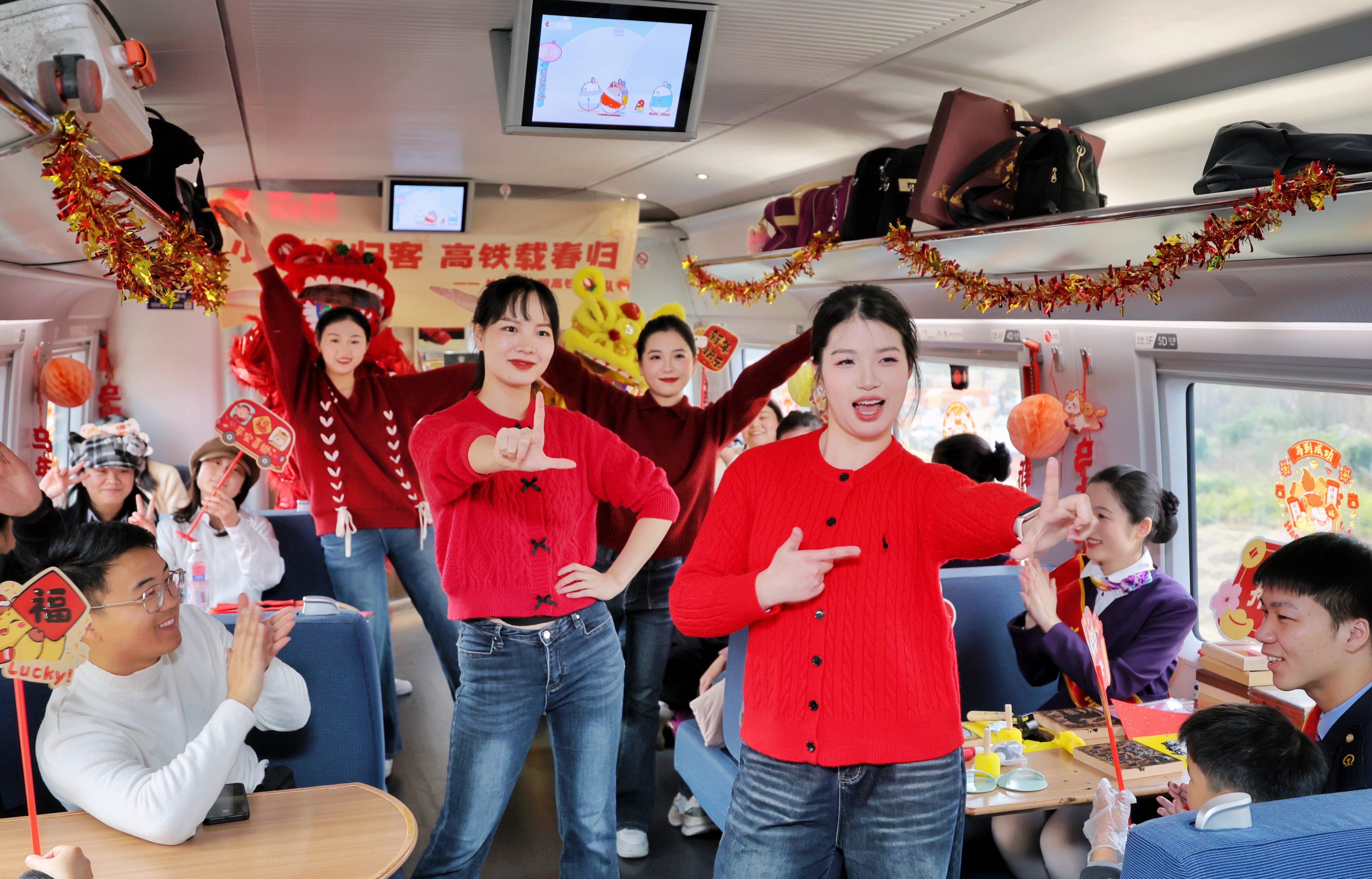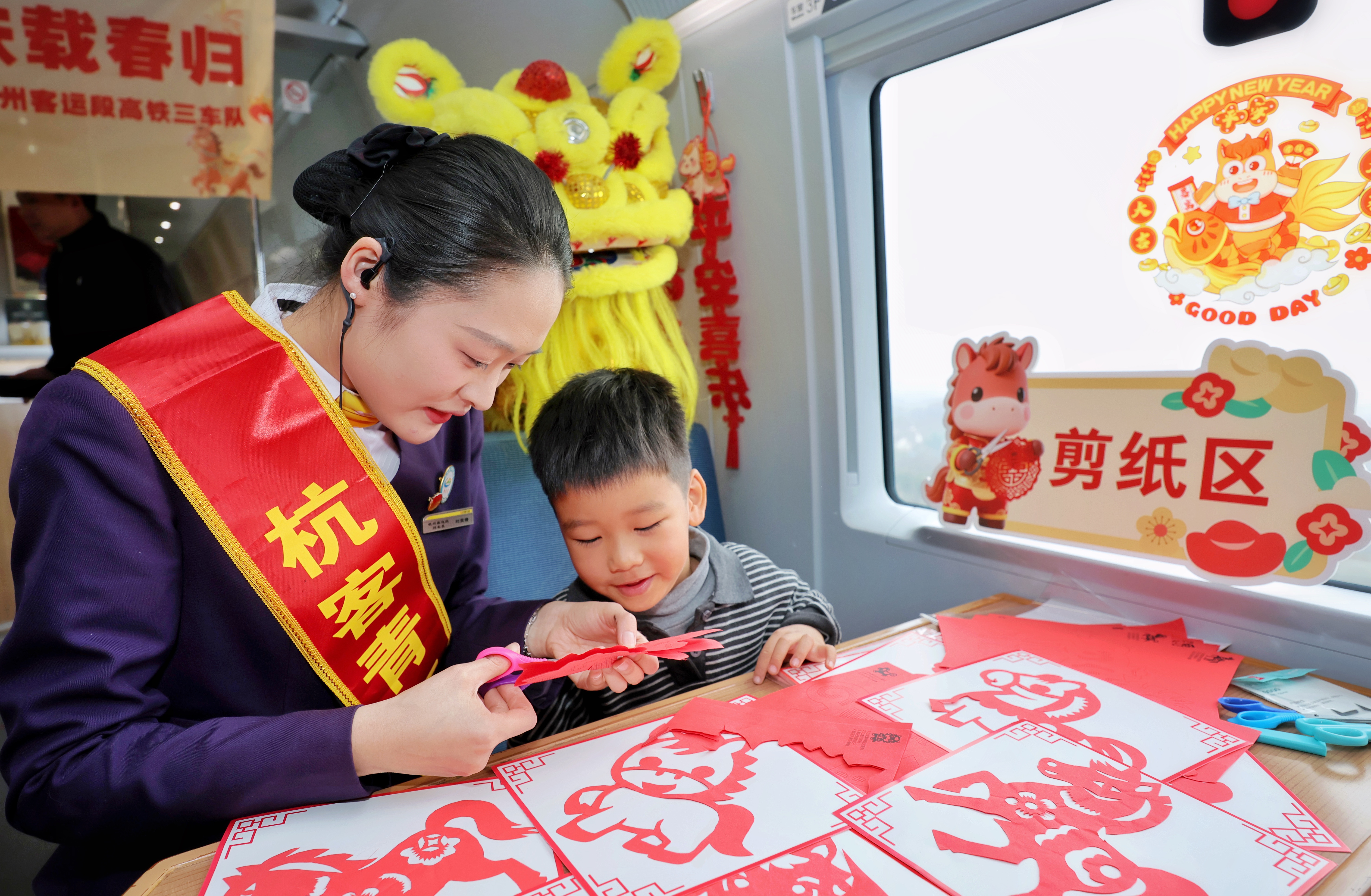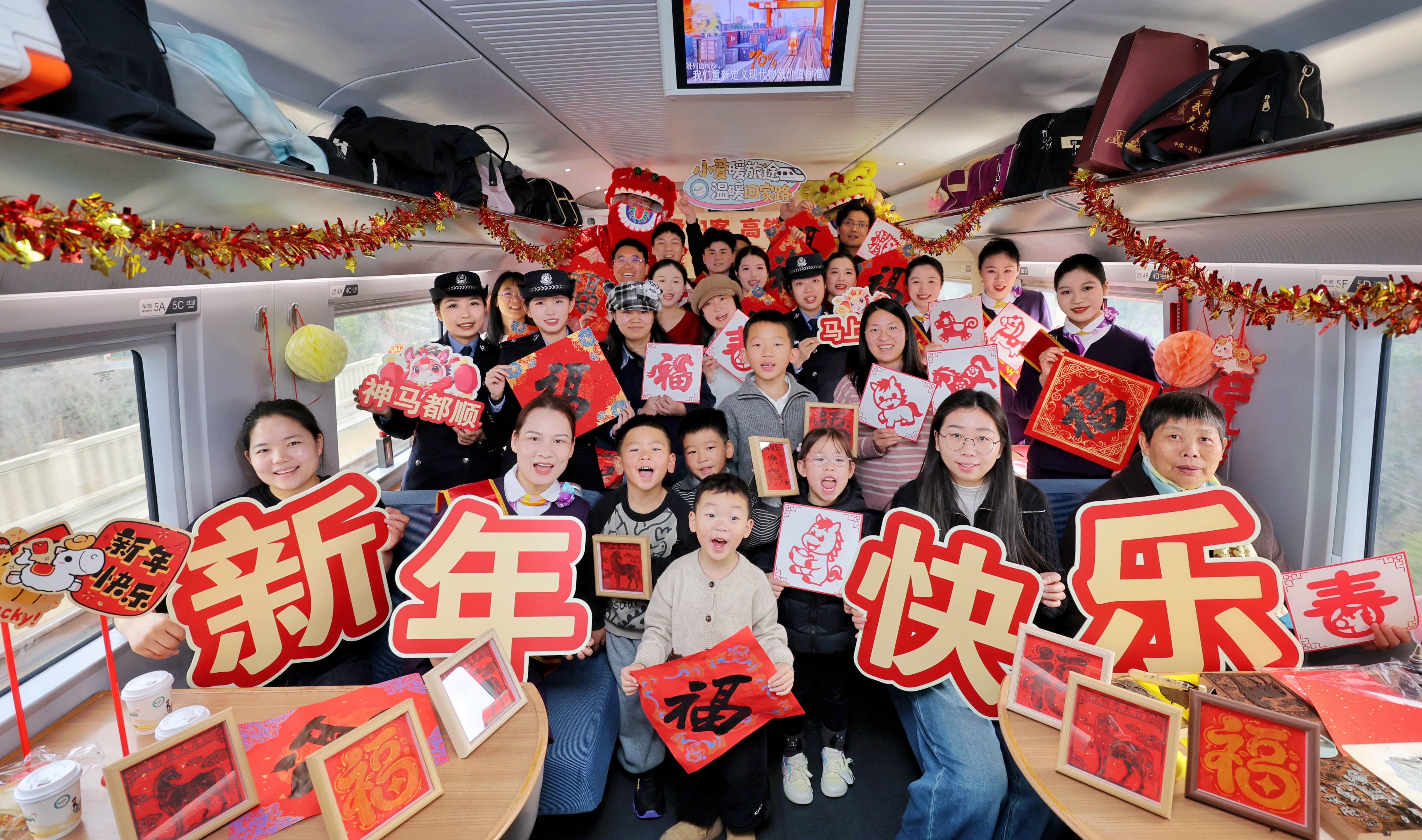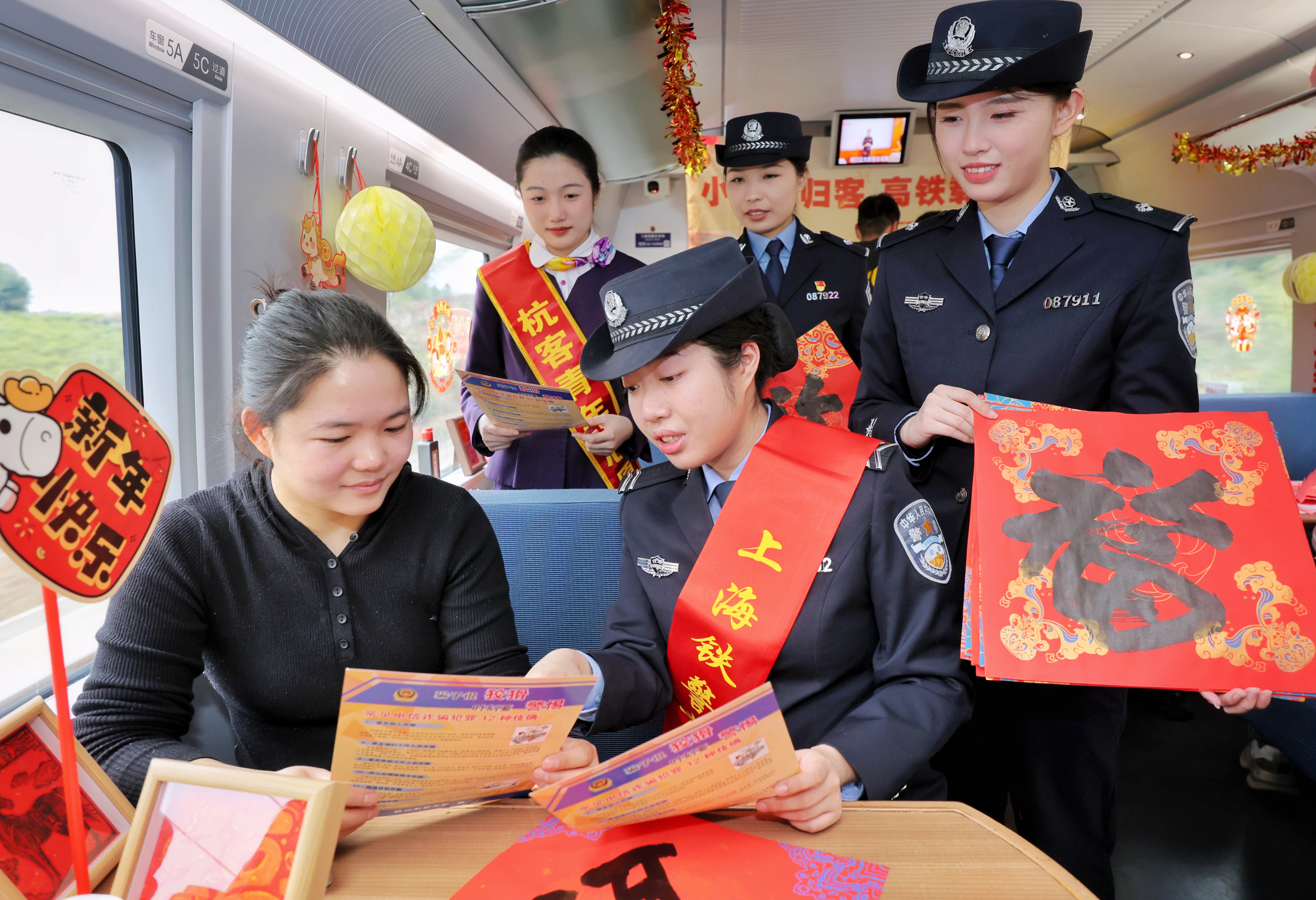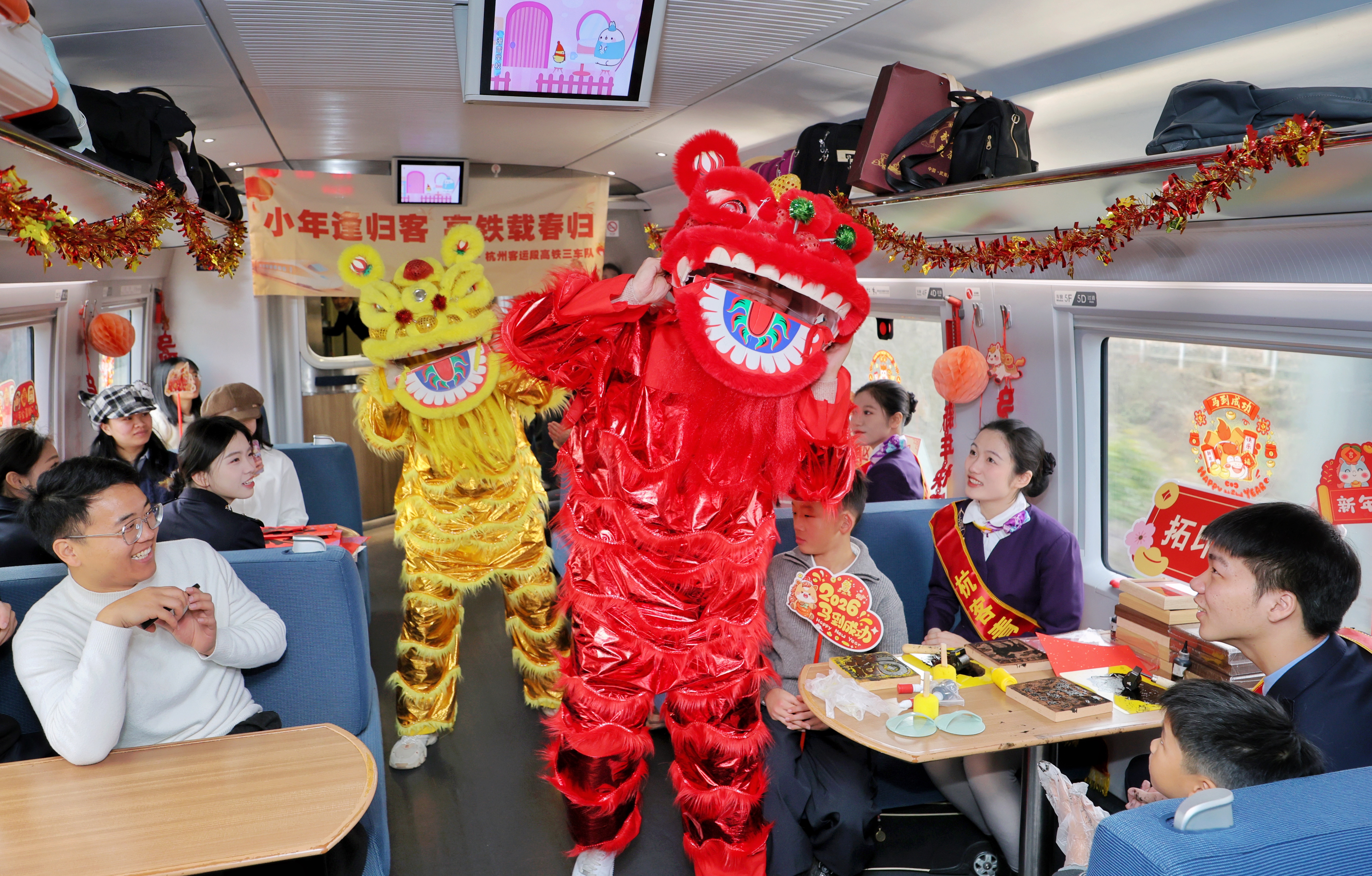 高铁车厢年味浓,温馨喜庆迎小年 2026年2月10日,铁路杭州客运段高铁三车队联合杭州乘警支队,在G1960次列车上,开展“小年逢归客,高铁载春归”主题文化活动,飞驰的高铁列车变身温馨的年味驿站,让旅客们在旅途中沉浸式体验非遗手作、观赏文艺表演,共迎新春佳节。