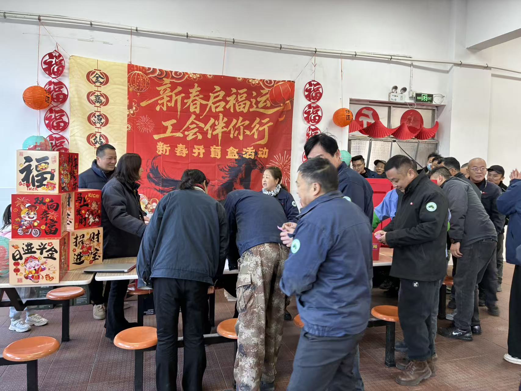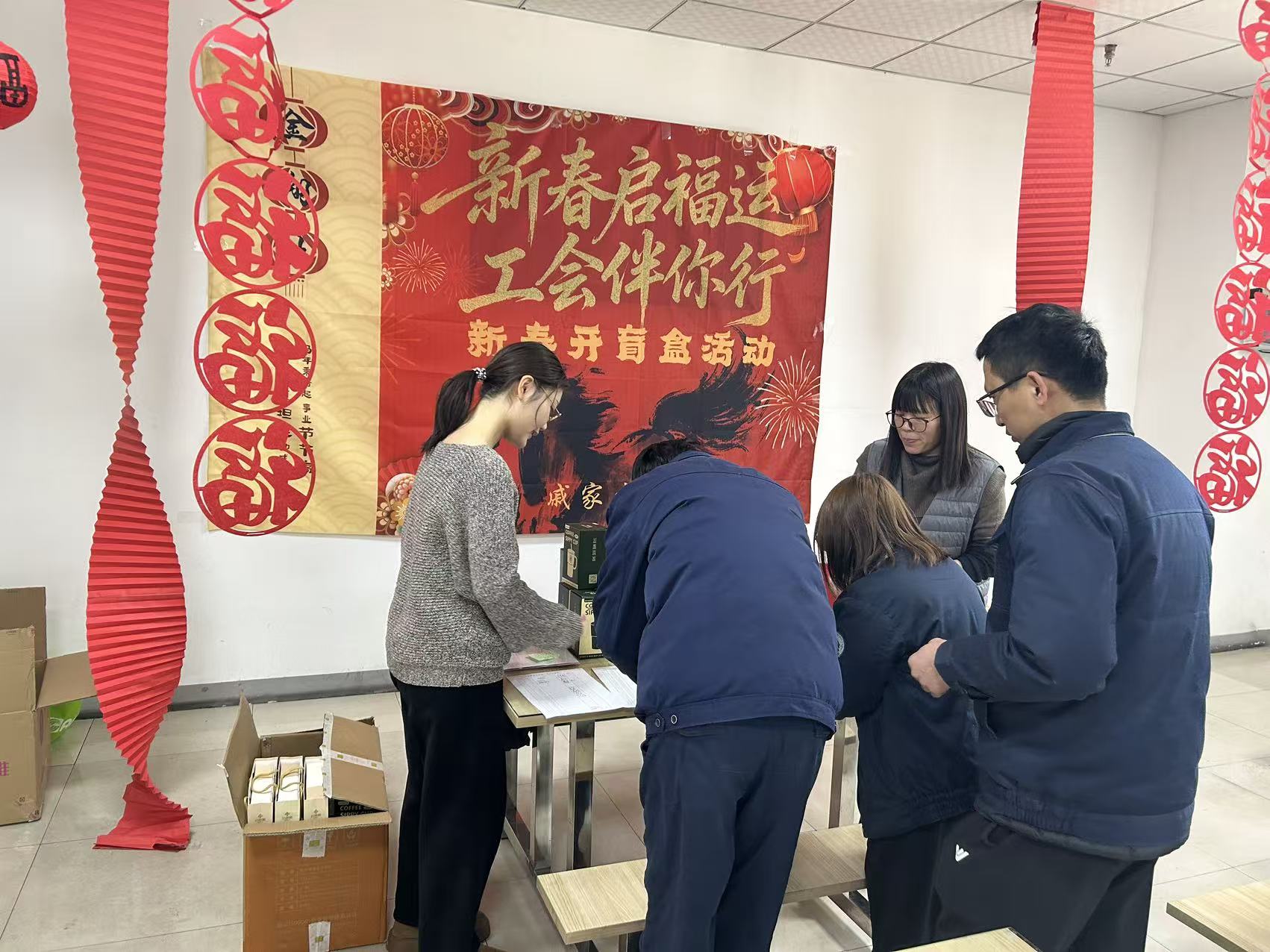 新春将至,年味渐浓。2月9日,戚家山街道总工会开展“新春启福运 工会伴你行”新春开盲盒活动。本次活动来到辖区四家企业食堂开展,让职工在就餐之余轻松参与,收获专属新春惊喜与工会暖心关怀。活动现场布置喜庆温馨,处处洋溢着浓厚的节日氛围。街道总工会精心准备了水杯、毛巾、便捷微压锅、多功能餐盒等日常好物,更设置康巴赫不粘锅作为重磅一等奖,奖品贴合职工生活需求,备受大家期待。职工们利用就餐间隙有序排队参与抽奖,无需占用工作时间、无需额外奔波,在轻松惬意的用餐时刻便可解锁新春好礼,拆开盲盒的瞬间,惊喜与笑意绽放在每个人的脸庞,现场欢声笑语不断。