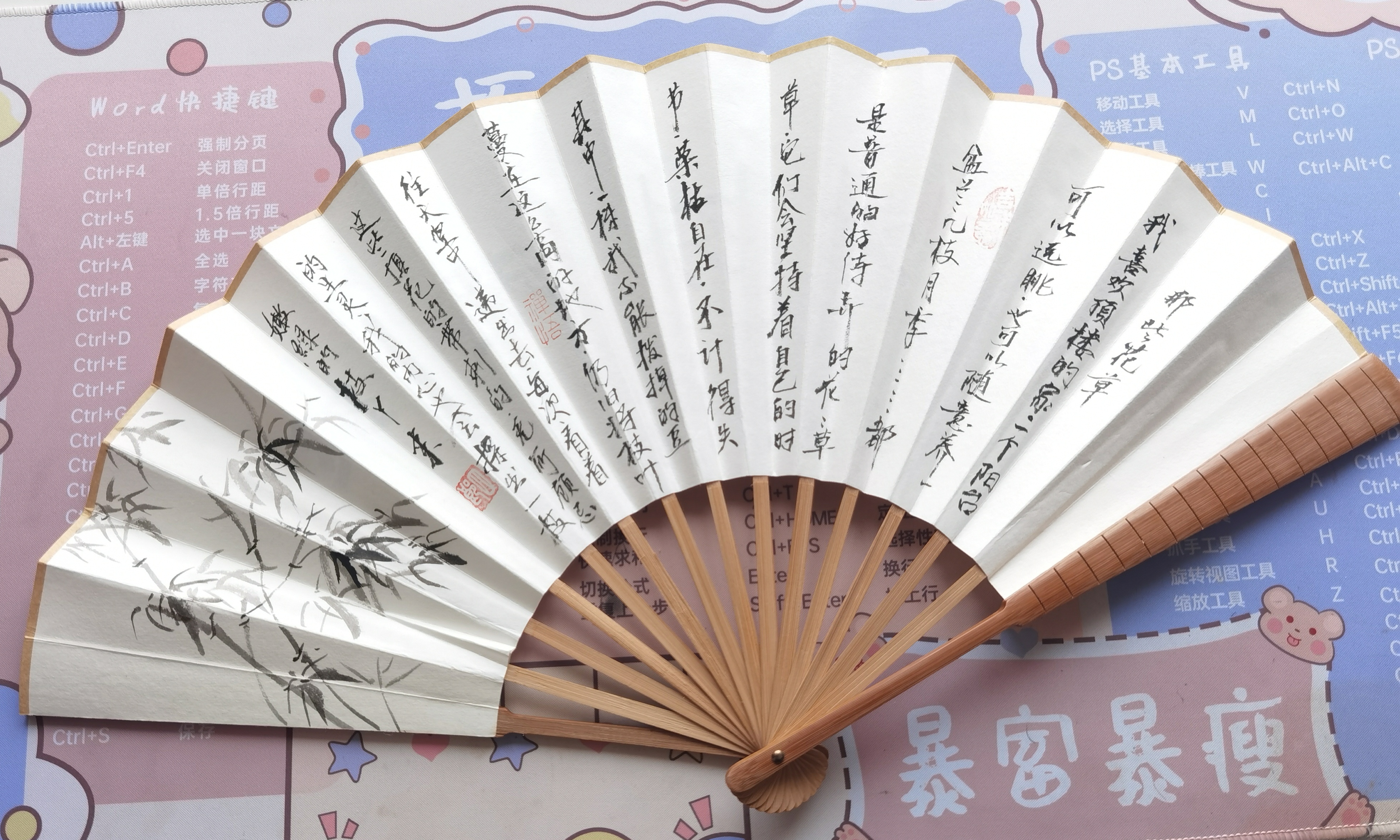 家中的扇子(二) 认识十多年的微信好友四郎送的扇子,扇子上的诗是我的诗,四郎把我写的诗题在了扇子上。