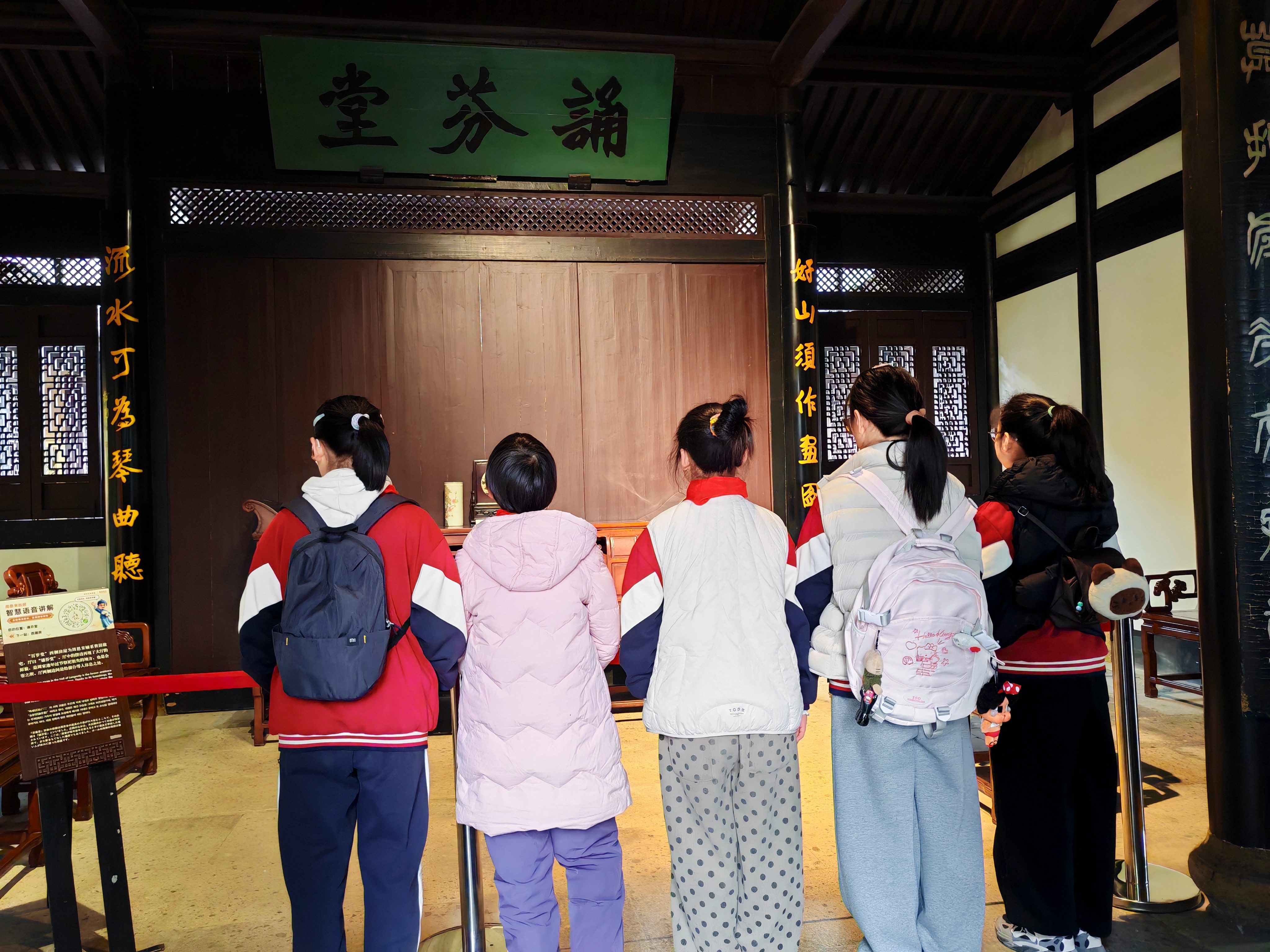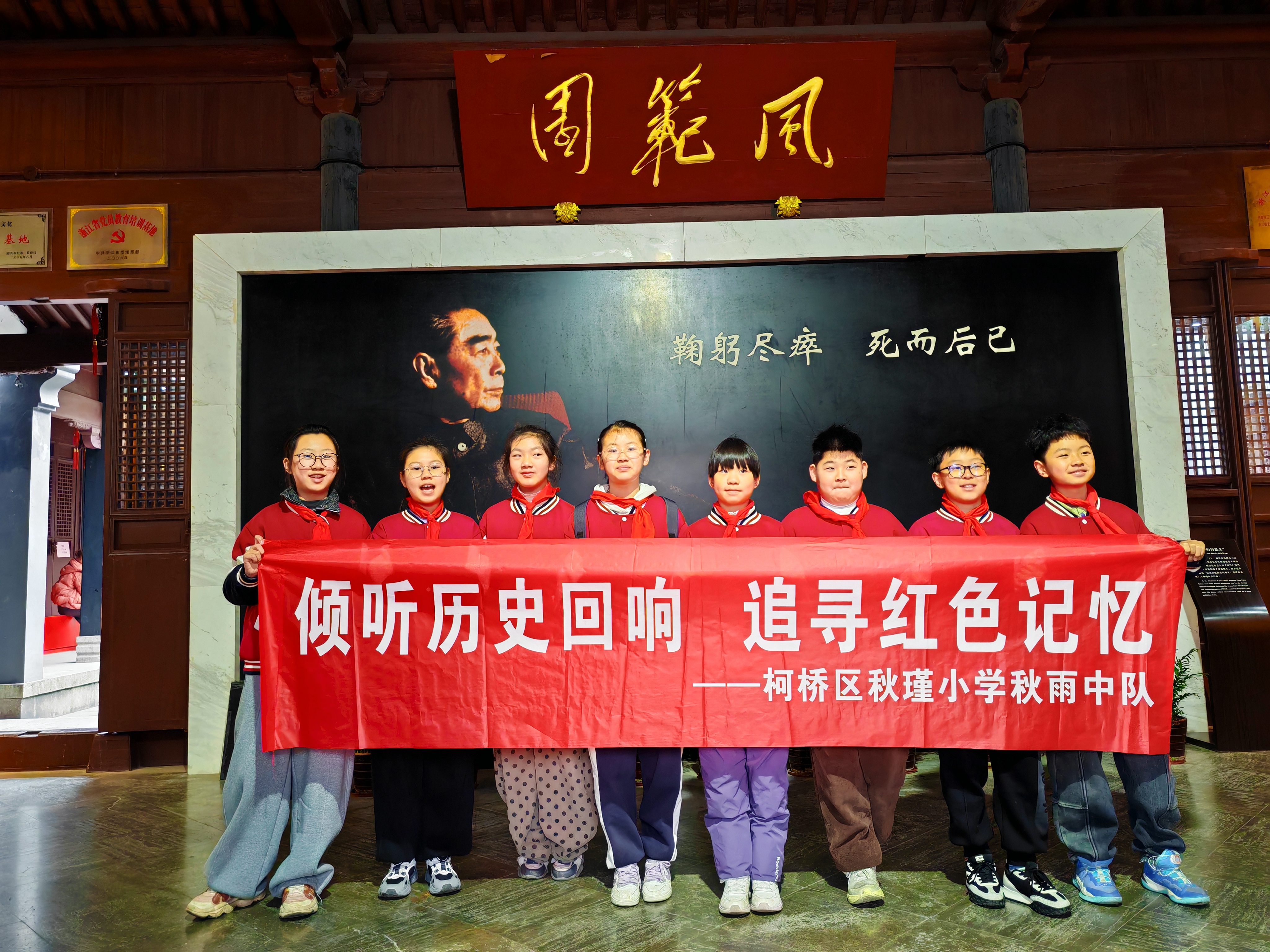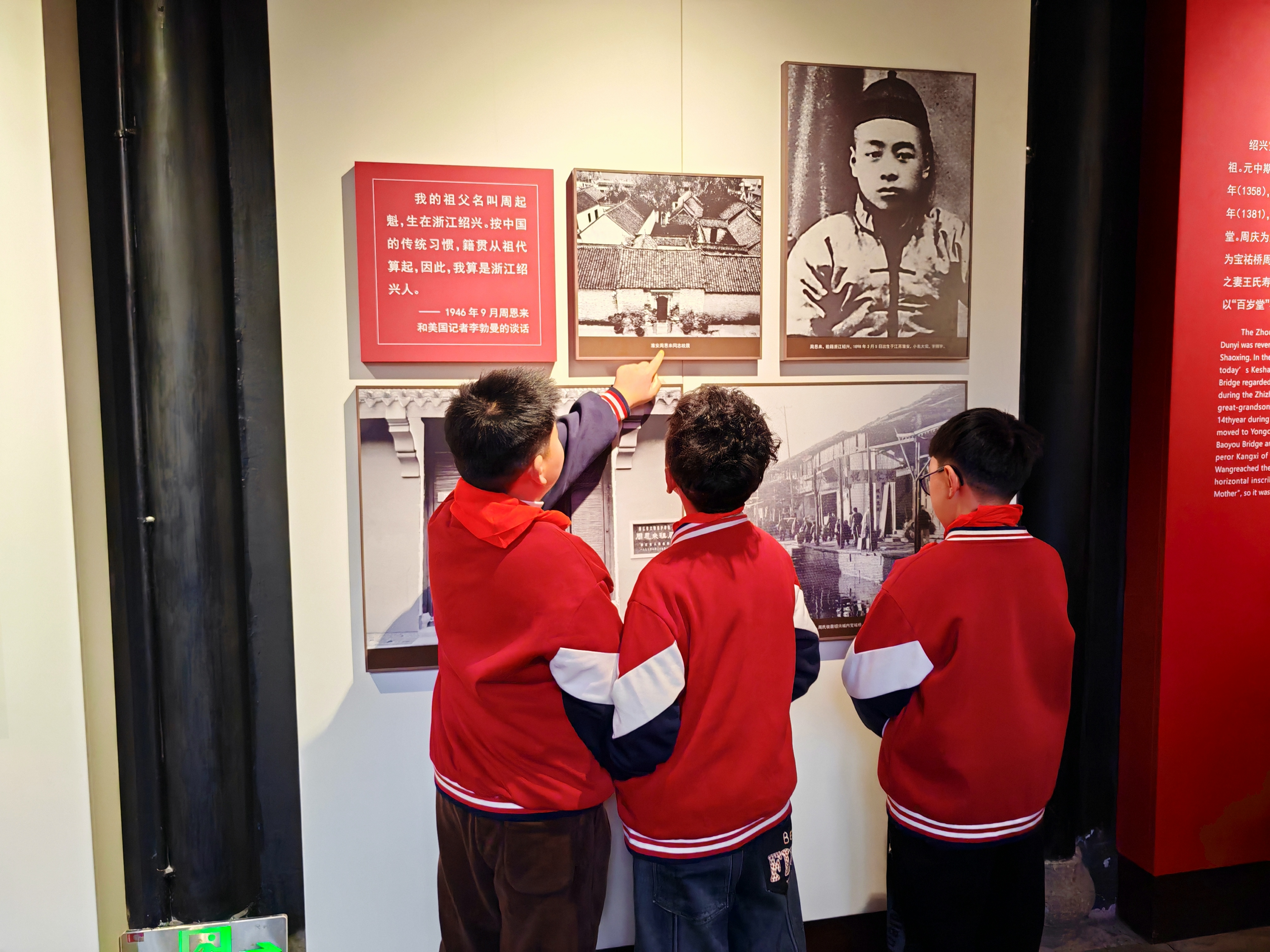 倾听历史回响,追寻红色记忆 今天,我们柯桥区秋瑾小学金三角校区五4班秋雨中队的队员们,怀着激动的心情来到了绍兴周恩来祖居,开启了一场特别的红色研学之旅。 一走进祖居,古朴的“诵芬堂”和“锡养堂”就吸引了我们的目光。在讲解员老师的带领下,我们认真参观了“抗战烽火万众一心”主题展览。墙上的老照片和珍贵文物,仿佛把我们带回了那个战火纷飞的年代。我们看到了周爷爷和其他革命先辈们的合影,听到了他们为了国家和人民不懈奋斗的故事,大家都听得入了迷,还忍不住用手指着照片,小声讨论着。 参观结束后,我们来到了书屋,围坐在长桌旁,认真阅读关于周爷爷的书籍。我们了解到,周爷爷从小就立志“为中华之崛起而读书”,他的爱国精神深深打动了我们。 最后,我们在“风范园”里合影留念。这次研学活动,让我们近距离感受到了周爷爷的伟人风范,也让我们懂得了今天的幸福生活来之不易。我们要好好学习,长大以后也像周爷爷一样,为祖国贡献自己的力量! 浙江省绍兴市柯桥区秋瑾小学金三角校区五4班王艺萱 指导老师:劳海燕