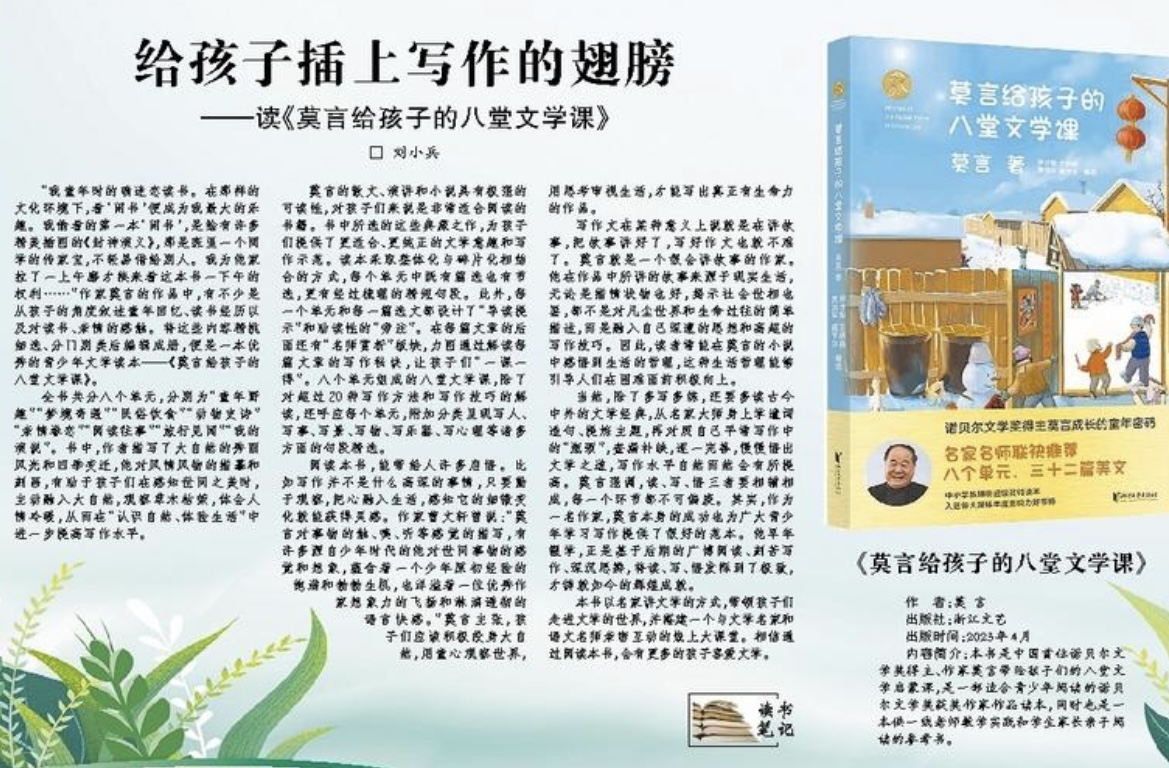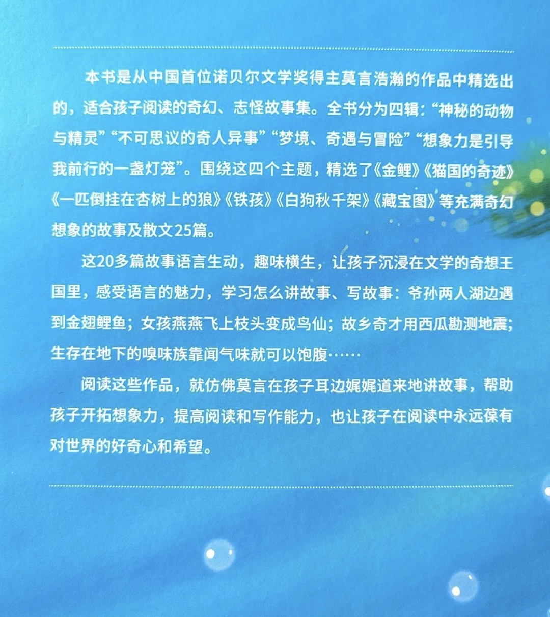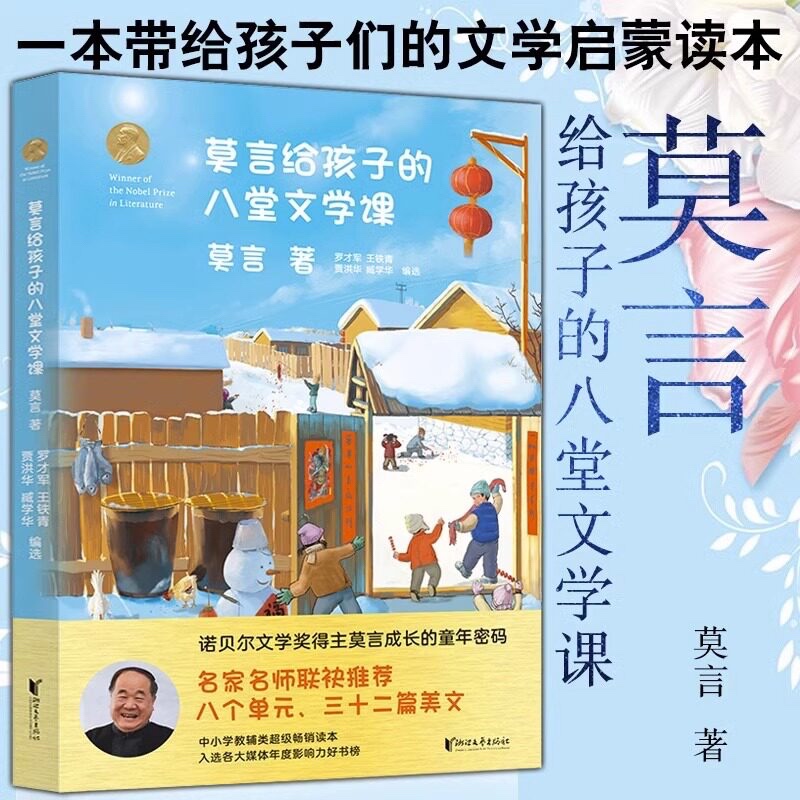 《莫言给孩子的八堂文学课》是潮新闻第十二期阅读活动可免费兑换的书籍之一,其由莫言提供作品,由罗才军、王铁青、贾洪华、臧学华等一线语文名师编选,是一本面向青少年的文学启蒙和写作指导读本。它的核心是将诺贝尔文学奖级别的经典作品,转化为孩子能够理解并获益的“文学课”。 📚 内容与结构速览 本书从莫言的小说、散文和演讲中精选了32个篇章,并按主题分为了8个单元: · 童年野趣:收录《大风》《故乡的原野》等,展现自然童真。 · 梦境奇遇:收录《夜渔》《奇遇》等,展现奇幻想象。 · 民俗饮食:收录《过去的年》《五个饽饽》等,感受乡土文化。 · 动物史诗:收录《我和羊》《马语》等,学习观察与共情。 · 亲情眷恋:收录《陪考一日》《我的老师》等,体会真挚情感。 · 阅读往事:收录《童年读书》等,分享阅读经验。 · 旅行见闻:收录《北海道的人》等,拓宽生活视野。 · 我的演说:收录《讲故事的人》等,感悟创作思想。 每个单元的结构都是 “导读-范文-学法” 三步走: 1. 单元导读:概述本单元主题和精神。 2. 四篇范文:每篇前有“导读提示”,文中有字词注释和启发思考的“旁注泡泡”,文后有详细的“名师赏析”。 3. 向莫言学写作:提炼本单元范文中的写作技巧,并提供同类精彩句段作为拓展。 ✍️ 核心特色与价值 这本书的价值,主要体现在以下几个方面: 1. 专业团队的“翻译”与“搭桥” 编选者均为经验丰富的语文名师和教材编写者。他们所做的工作,是在莫言浩瀚而复杂的成人文学世界里,为孩子开辟出一条适宜的路径。他们筛选出最具童心、最适合孩子理解的篇章。正如作家毕飞宇所说:“莫言所描绘的是成人的世界,但是他的感知方式,在很多时候恰恰是孩子式的。” 2. 独创的“助读系统”,既是读本也是学本 这本书不只让孩子“读”,更引导他们“学会读”和“学着写”。 · 旁注泡泡:文中设有旁批,有些是示范赏析,有些则故意留白,让孩子自己填写,这既是阅读理解范本,也鼓励个性化思考。 · 写作技法提炼:每个单元最后的“向莫言学写作”部分,系统总结了如“五感写作法”、“如何写活动物”、“如何描写复杂心理”等20多种具体技法,将大师的文学创作转化为可学可用的写作工具。 3. 传递乐观坚韧的生命底色 书中选文没有回避过去的苦难(如饥饿、贫困),但莫言总能用孩子般的好奇与乐观将其转化为妙趣横生的故事。教育家朱永新指出,书中传递的“鲜明的人道主义、顽强的英雄主义和苦难的理想主义”,是青少年重要的精神养料。 💎 综合评价与阅读建议 总的来说,这本书成功地将文学巨匠的创作精髓与青少年教育需求结合。它不仅降低了阅读名家经典的门槛,更提供了一套完整的阅读写作提升方案。 · 对青少年读者:是接触顶尖中文文学、提升语文素养的优秀读本。 · 对家长和教师:是进行亲子共读、开展语文教学实践的实用参考书。 阅读时,可以先通读感受文学魅力,再借助旁注和赏析深化理解,最后模仿“写作课”部分进行练笔。家长或老师若能参与讨论,效果更佳。 本书有两个版本:2018年初版(定价36元)和2023年新版(定价42元,内容更丰富),可根据需要选择。 如果大家想深入了解某个特定单元(比如“动物史诗”或“亲情眷恋”)的具体篇目和教学价值,我可以为你们做更详细的介绍哦~