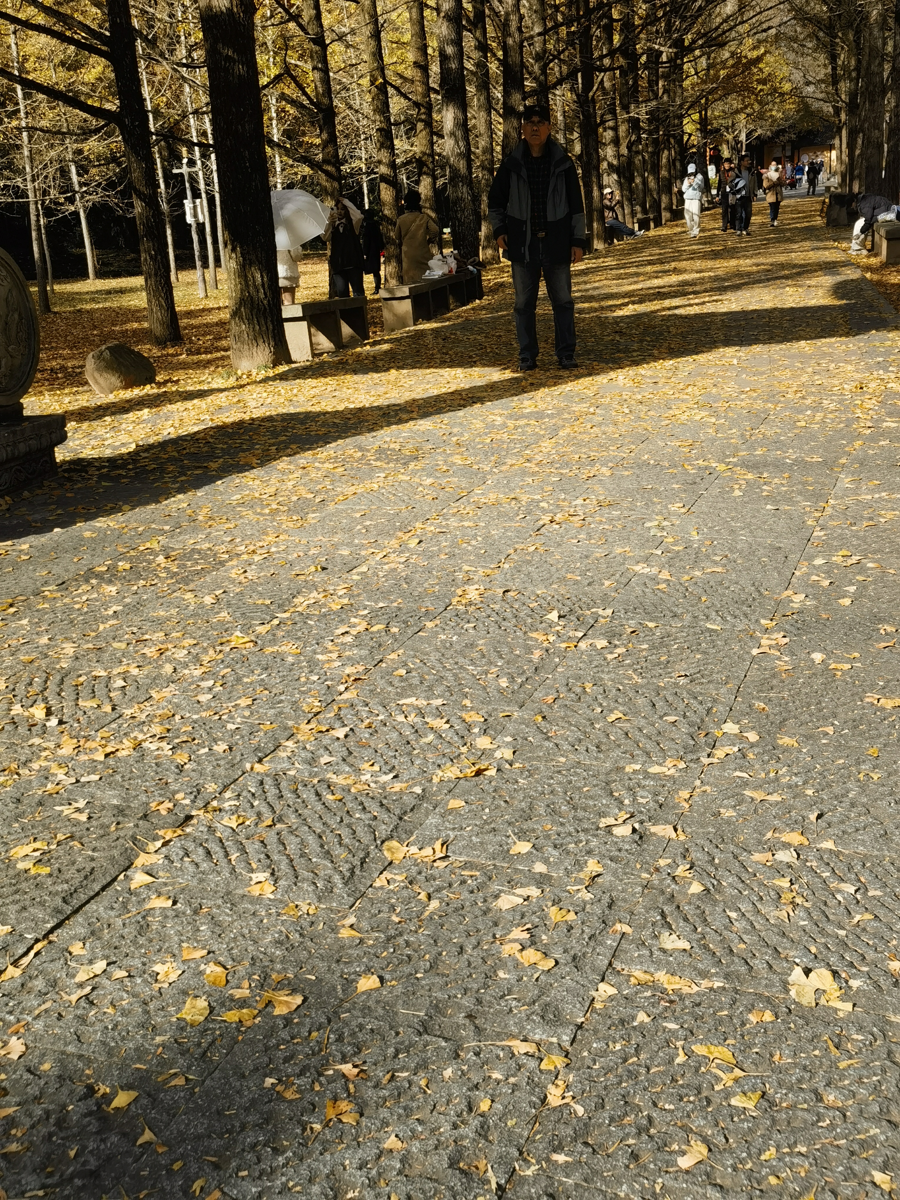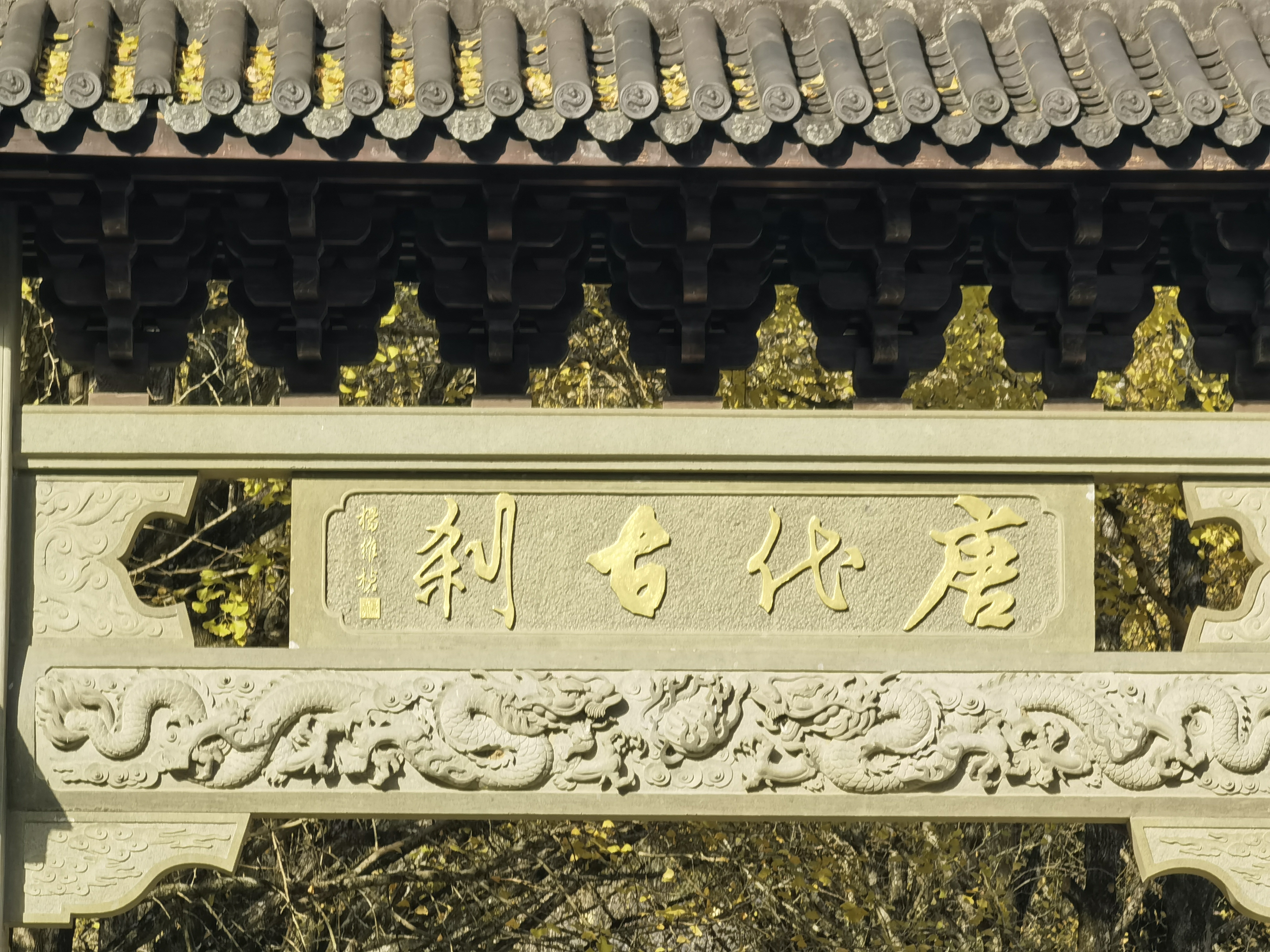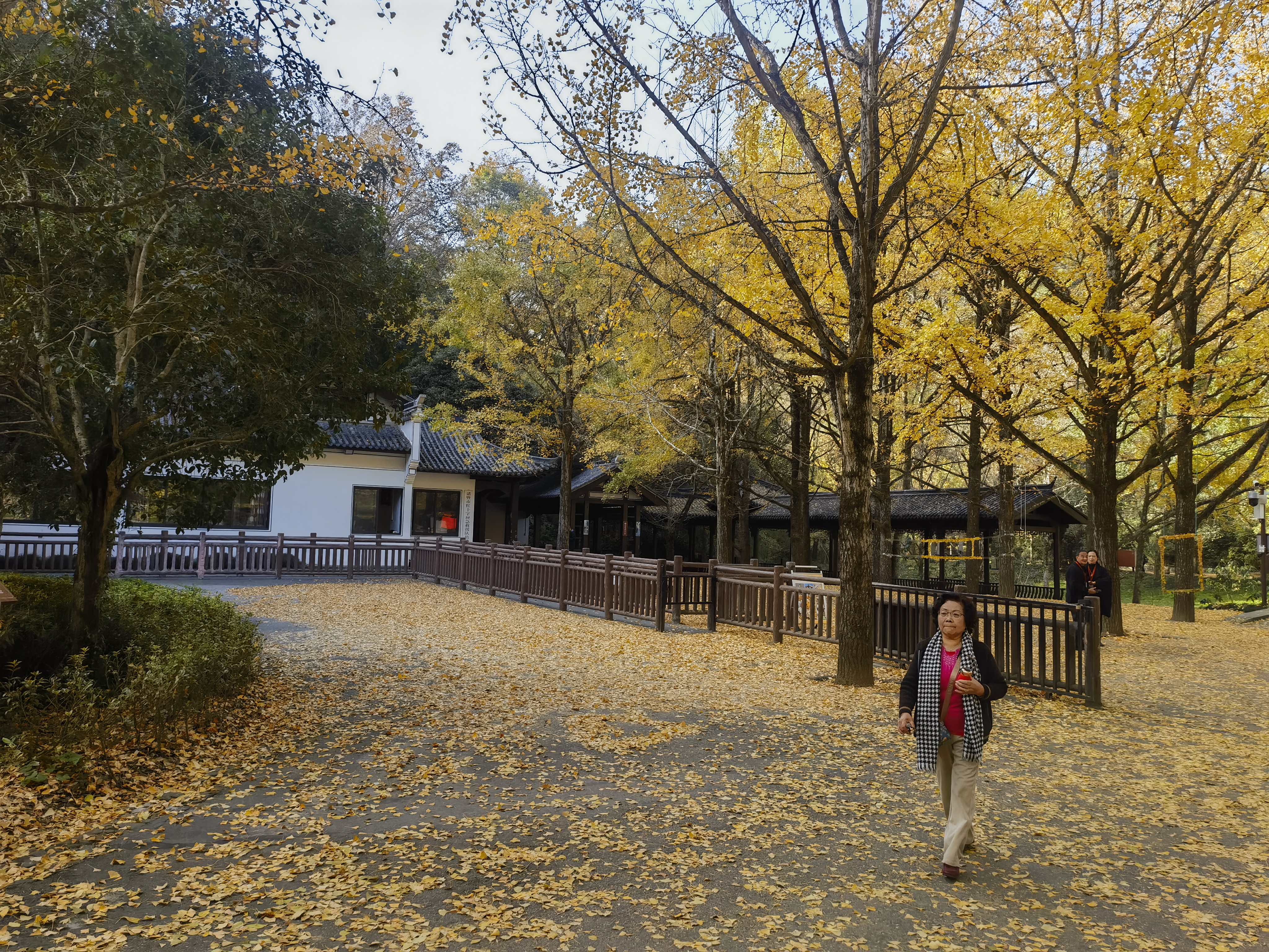 深秋的银杏叶铺满地,瓦楞檐角处也满是黄澄澄、收获的喜悦……