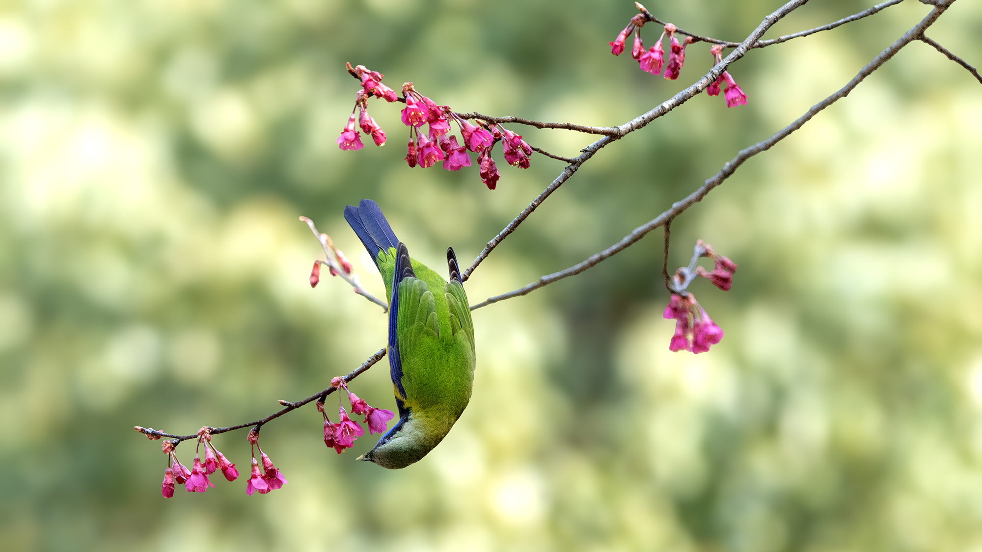 春暖花开!(橙腹叶鹎吸花蜜——雄)