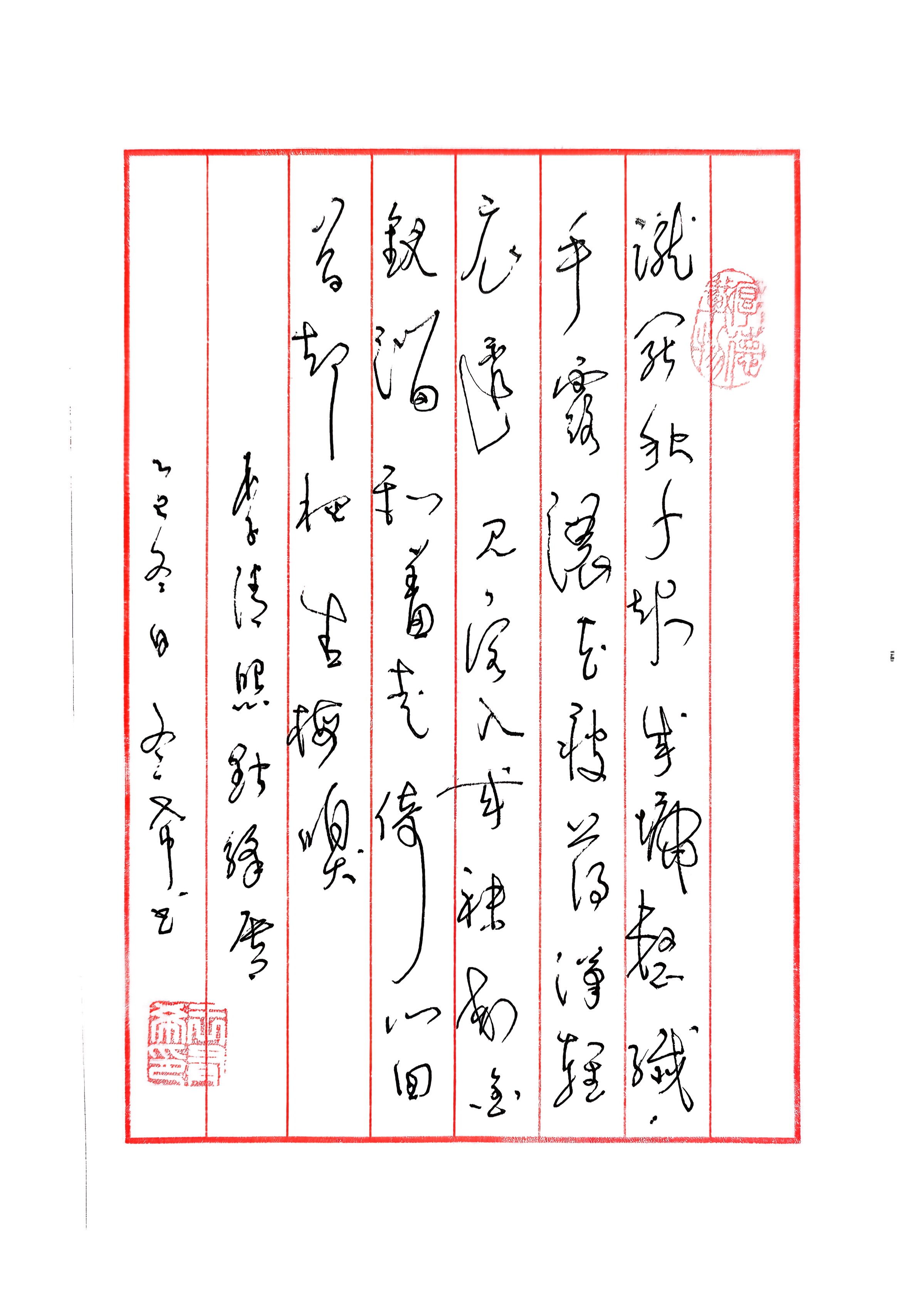 写透少女心 法自流水声 本人书法赏析之1 用好线条 这幅硬笔草书以李清照《点绛唇》为内容,线条表现极具特色: 线条流畅圆转,提按顿挫分明,起笔收笔利落,转折处如行云流水,既见草书的奔放洒脱,又不失硬笔的爽利质感。笔画间牵丝映带,粗细变化自然,细处如游丝袅空,粗处如坠石压纸,刚柔相济。整体一气呵成,将少女娇羞灵动的词意,融于笔势的婉转与力度之中,尽显书写者对线条的精准把控与艺术才情。