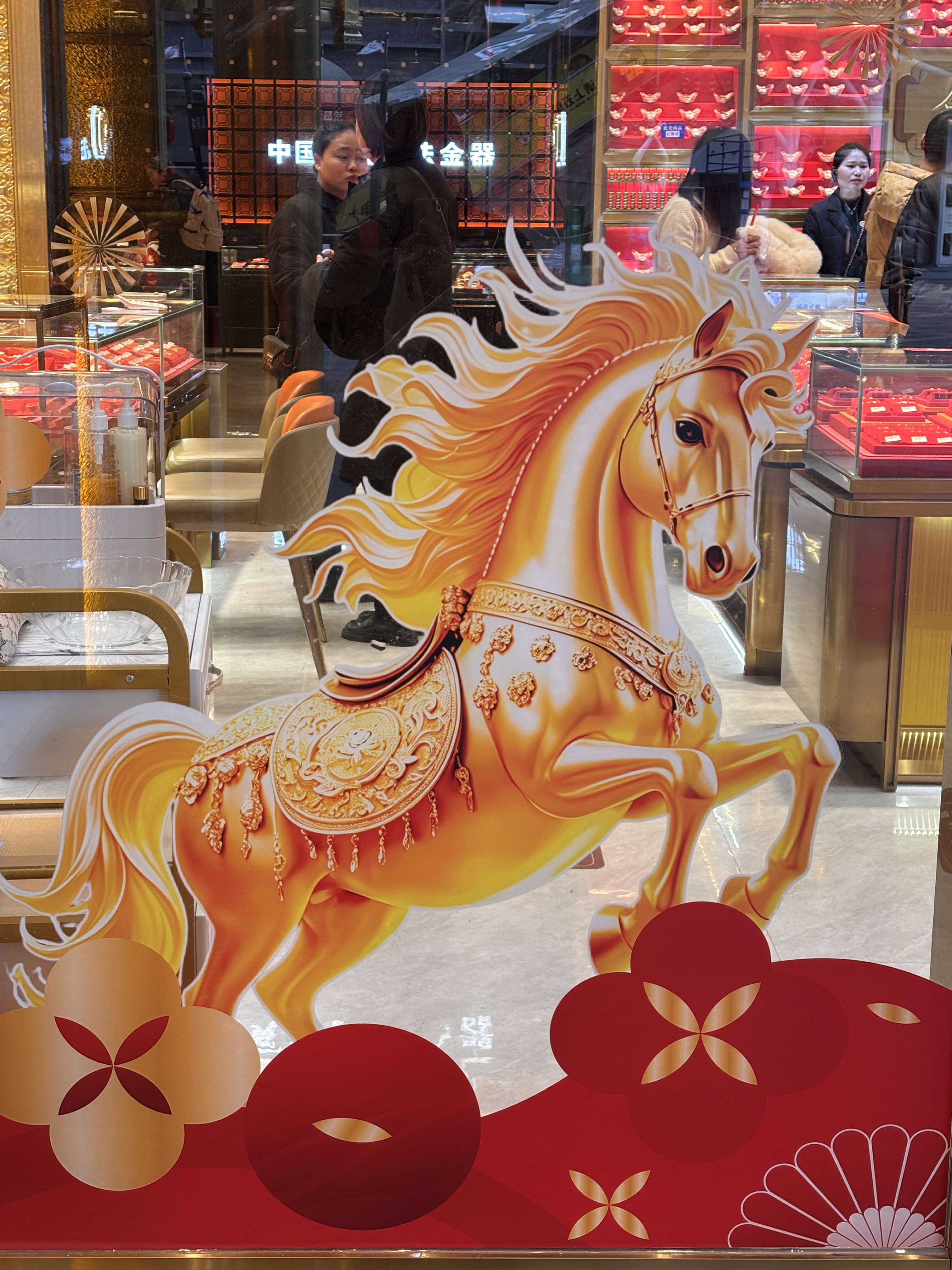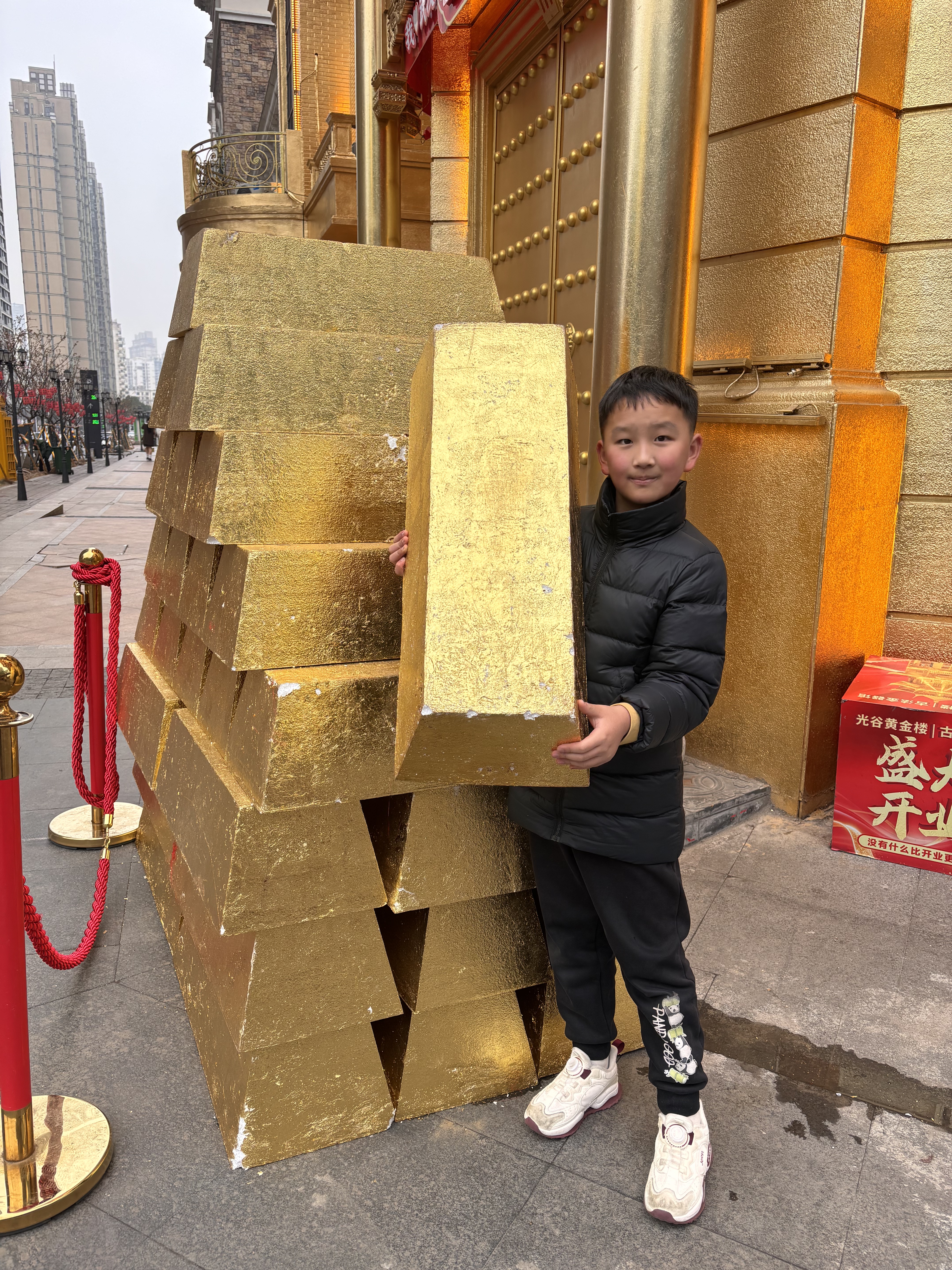 带娃打卡光谷的“黄金地标”,解锁别样的年味儿。小家伙抱着超大金砖摆件,认真比耶的模样,成了冬日里最鲜活的风景。沿街的祈福红牌、璀璨的花灯,还有橱窗里蓄势待发的金马,每一处都藏着新年的美好期许。愿成长如金马奔腾,愿生活如黄金般璀璨,岁岁常欢愉,万事皆胜意。