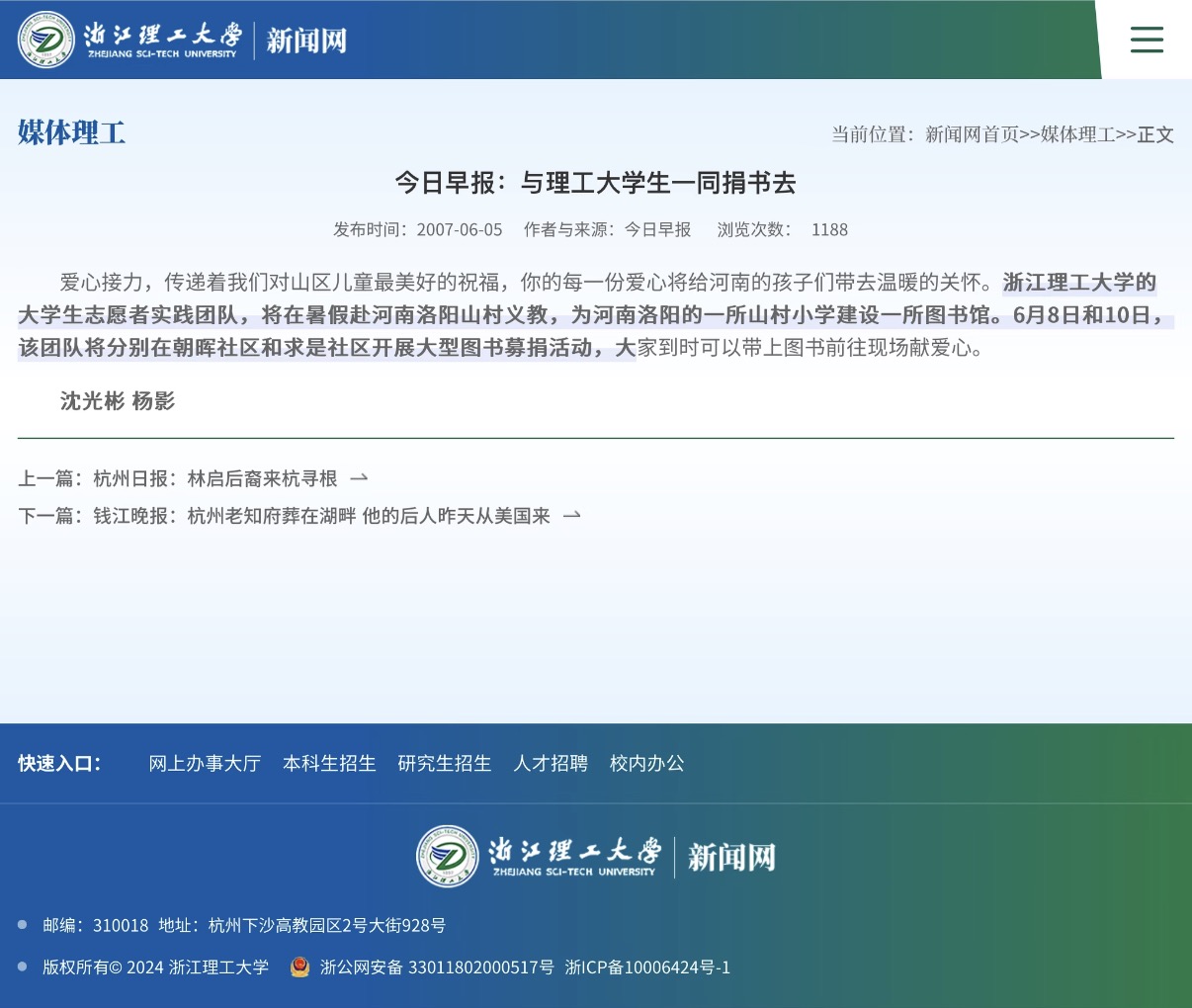 谢谢浙江日报报社今日早报报道沈豪丽参加暑期社会实践活动