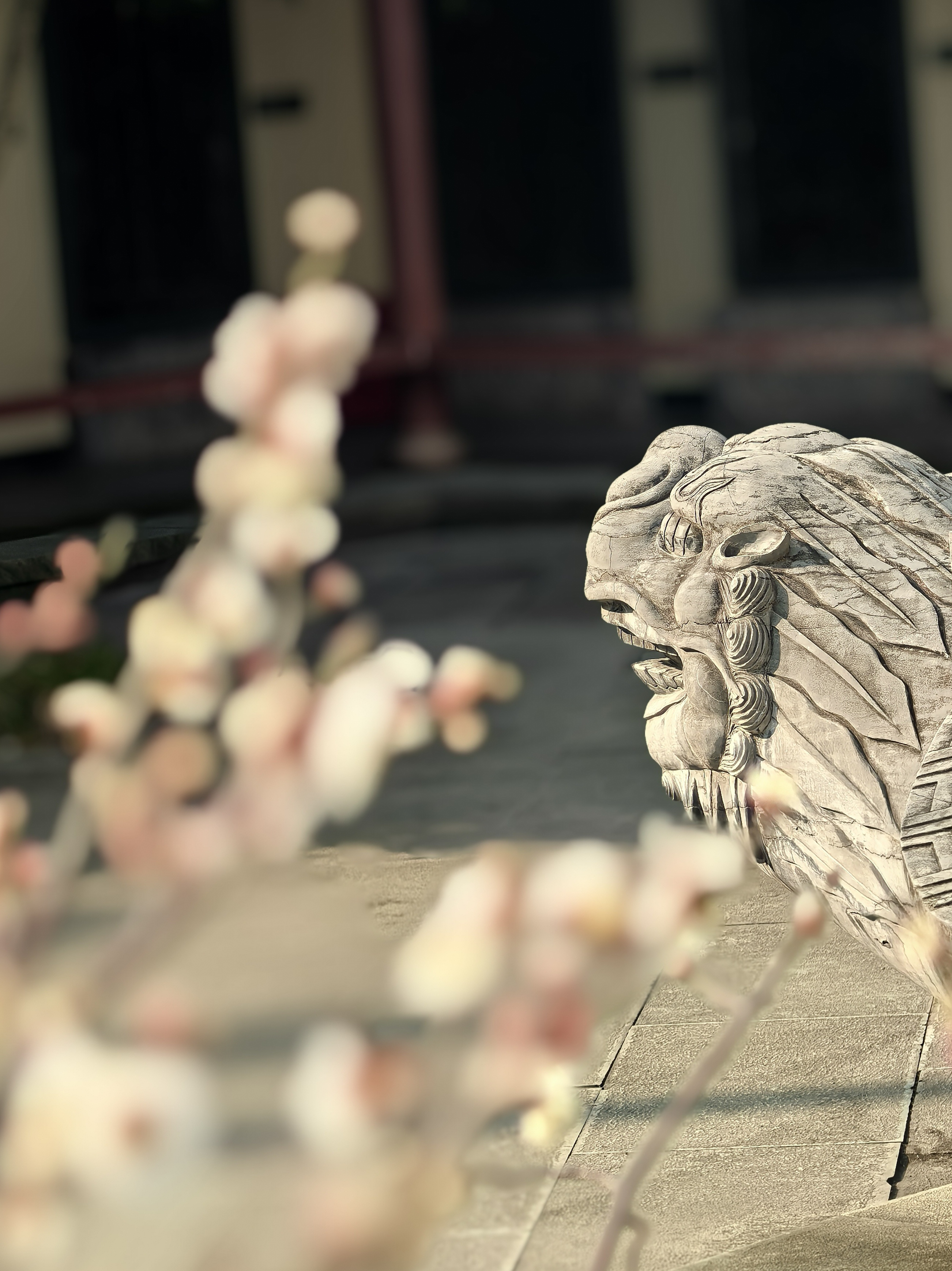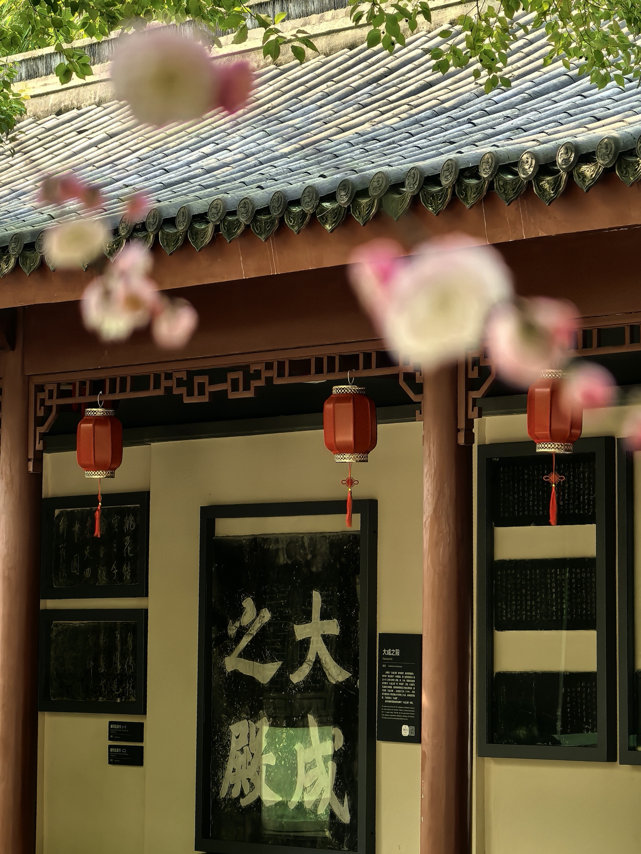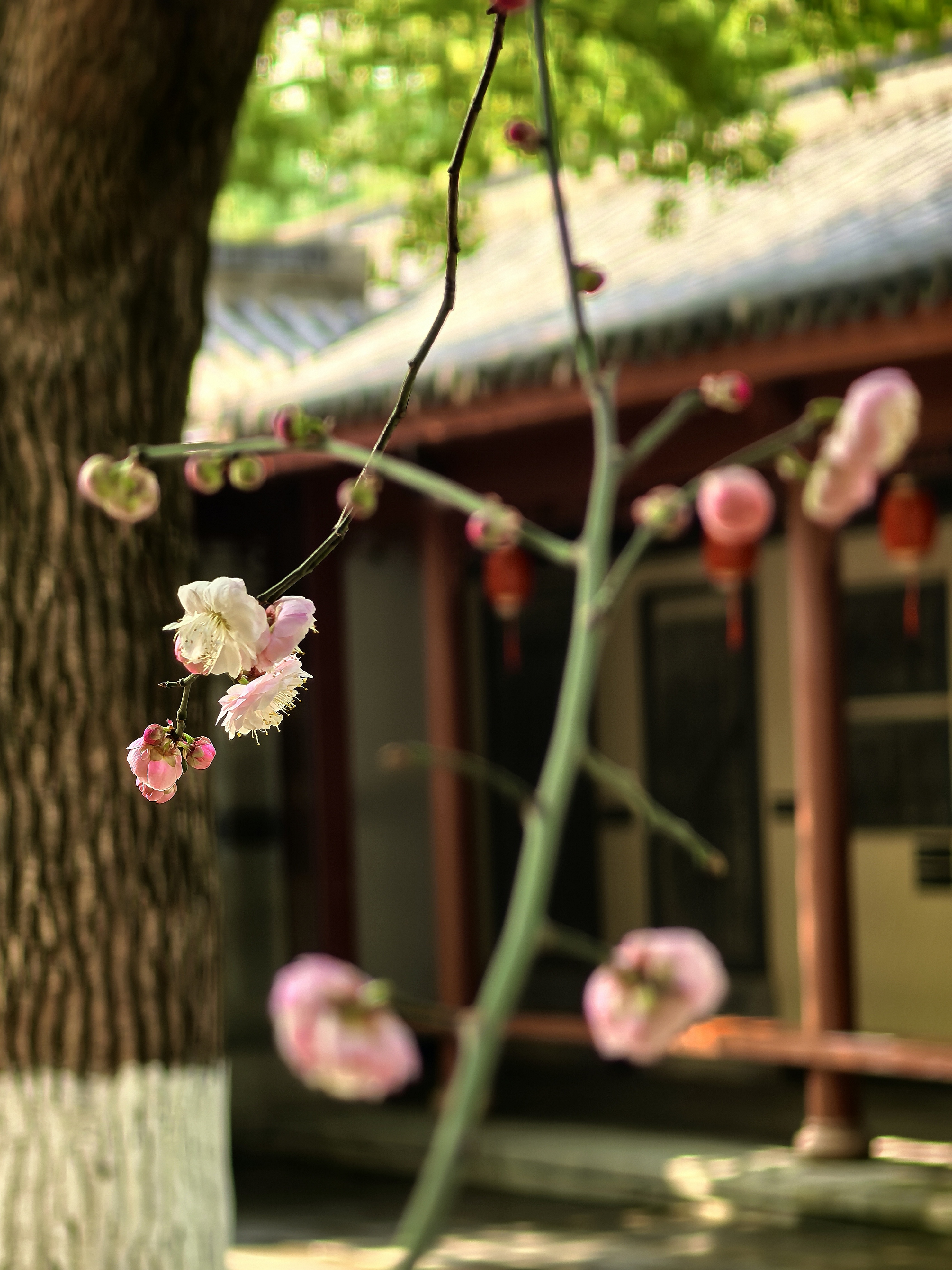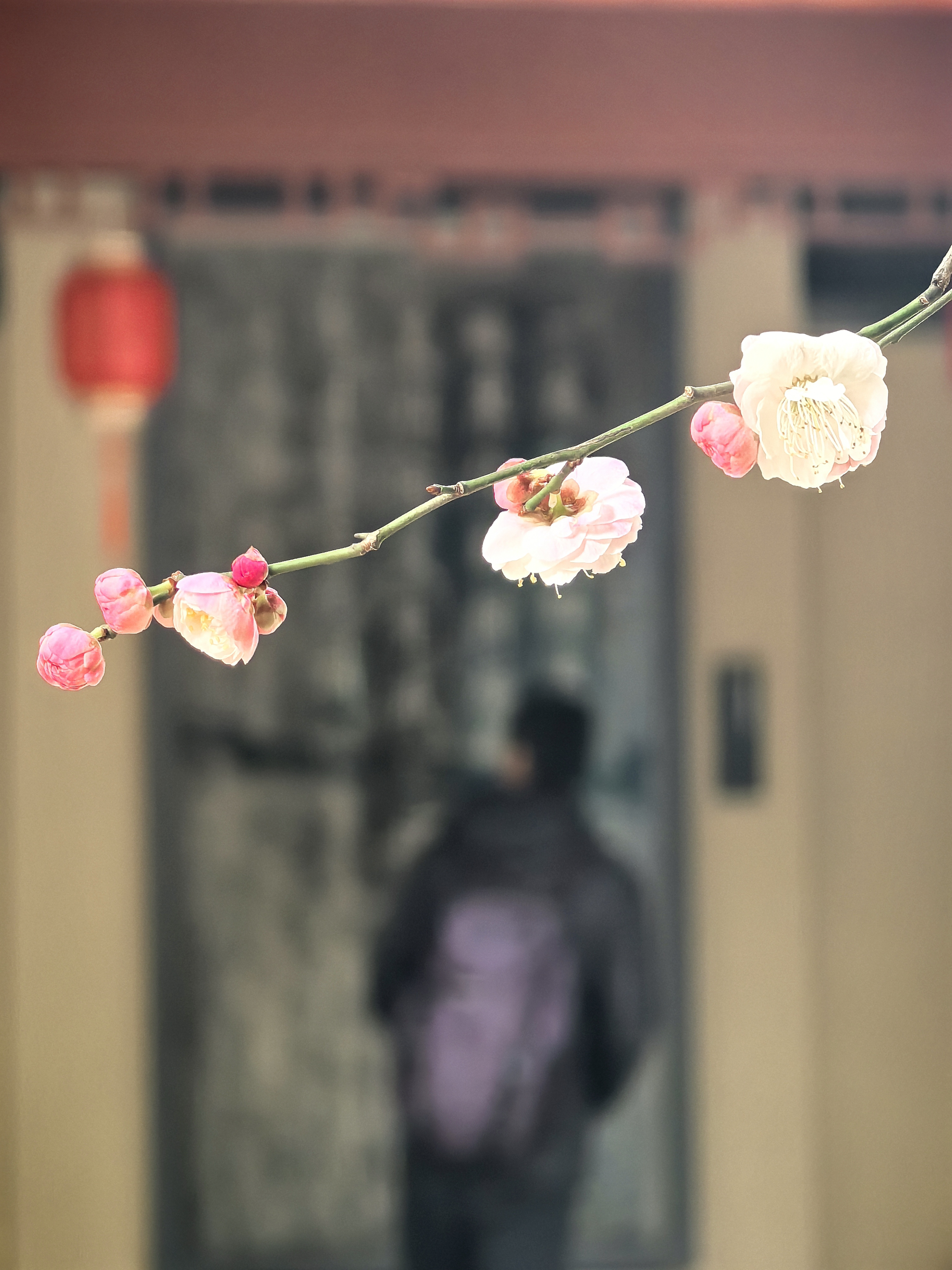 好看的皮囊千篇一律,有趣的灵魂万里挑一。赏梅花也是如此。 藏于吴山闹市的孔庙内,绝大多数也许来赏过金秋的银杏,识过回廊里的众多古碑文物,但在梅花季,将梅花与石碑、石经一同欣赏,却很难得。 梅花仿佛是这些石碑身外跳动着的魂魄,穿越千年时光而来,都活了。而梅花呢,掩映在这些博大高深的碑铭前,沾了说不清的人文底蕴,变得莫名的高雅。 我从不同的角度,将后院内的几株株梅花与石碑同框,不放过一个变化着的鲜活组合。 不光有红梅担纲,还有白梅,蜡梅,也在助力,使得小小的院子,本来只想呆半小时就走的,结果满当当赏了一个多小时。越看越有味儿。