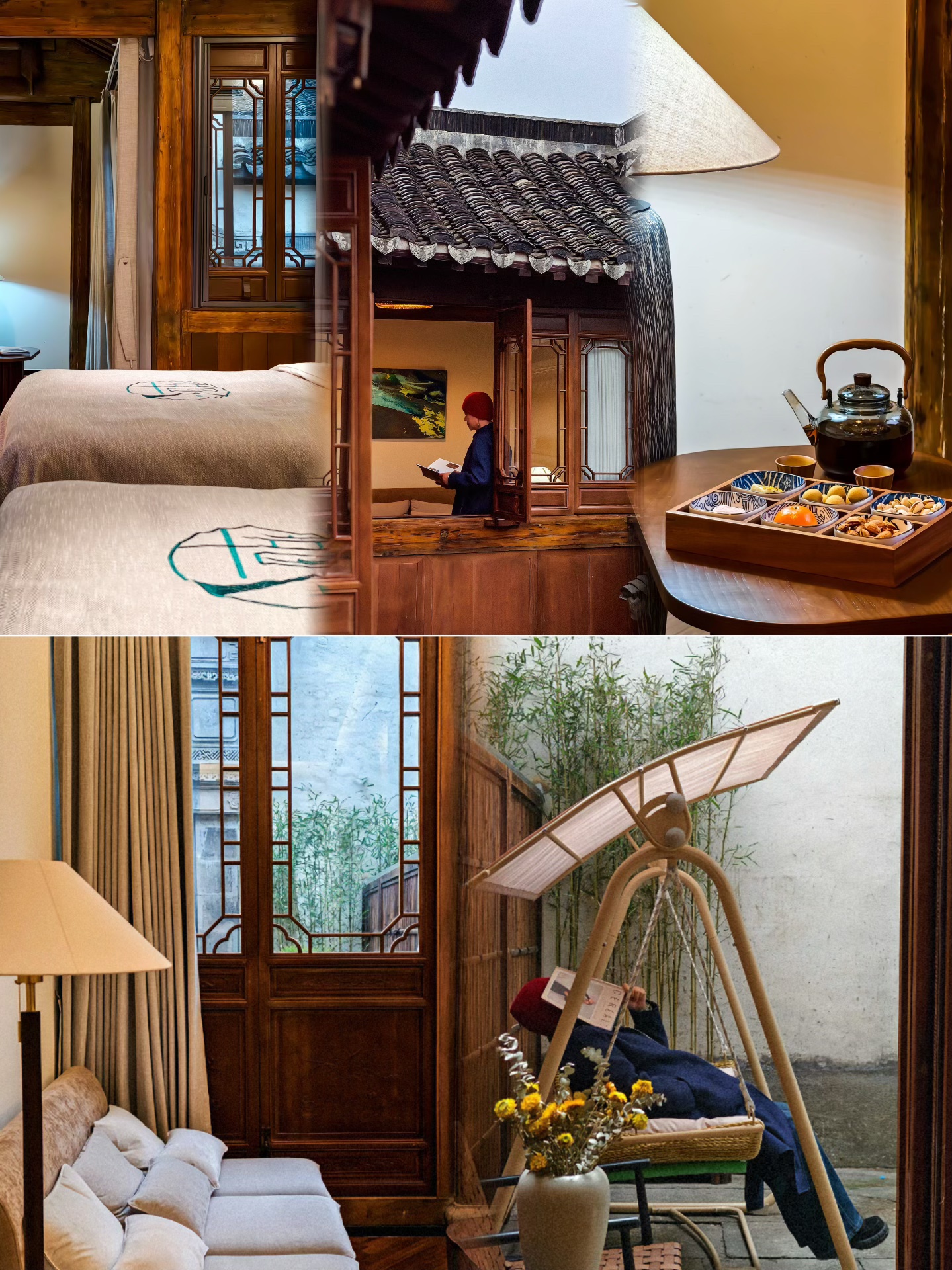 雨中南浔!这私宅民宿把氛围感焊死了✨ - 救命!这次南浔遇上下雨,本来还emo, 结果住进这家民宿直接把我治愈到哭😭 - 清末丝商巨贾吴其昌的百年老宅改的, “三进三出”的院子,木雕老梁、青石板地, 雨天的时候,雨滴顺着屋檐往下掉, 打在石板路上的声音,配上院子里的暖黄灯光, 我直接在廊下发呆坐了半小时,这才是江南啊! - 📍位置真的绝: 就在宝善街和百间楼中间,出门几步路就能逛: ✅ 百间楼(雨天的白墙黑瓦像水墨画,拍爆内存) ✅ 张静江故居(民国大佬的宅子,雨天逛更有历史感) ✅ 嘉业堂(藏书楼,躲雨看书太舒服) ✅ 广惠宫(中西合璧的小宫殿,小众好拍) 逛完湿漉漉的古镇, 回民宿就躲进暖乎乎的小世界,太爽了! - 🛏️住得舒服到不想走: 我订的私汤房套餐,细节真的戳我: 👉全屋地暖!雨天住进去暖到脚指头,完全不冻 👉早餐是双浇面/馄饨,热乎的一口下去超满足 👉下午茶有南浔特色三道茶,雨天喝暖到心坎里 👉晚上还有晚安甜汤+小酒套餐,泡完私汤喝一杯,疲惫全没了 👉重点是居然宠物友好!没带我家🐶真的有点小遗憾… - 📸雨天出片封神: 廊檐下的雨丝、房间的木窗、私汤池的暖光, 随便拍都像古风电影截图, 发朋友圈被问了800次地址! - 这次南浔之行, zui惊喜的还是这家民宿。 雨天里的江南, 配上这样一处安静又有温度的老宅, 真的太难忘了。 来南浔想慢下来、 想感受真正的水乡氛围, 选这里,不会失望。 - 📍 南浔 •境里 Oasis精品民宿