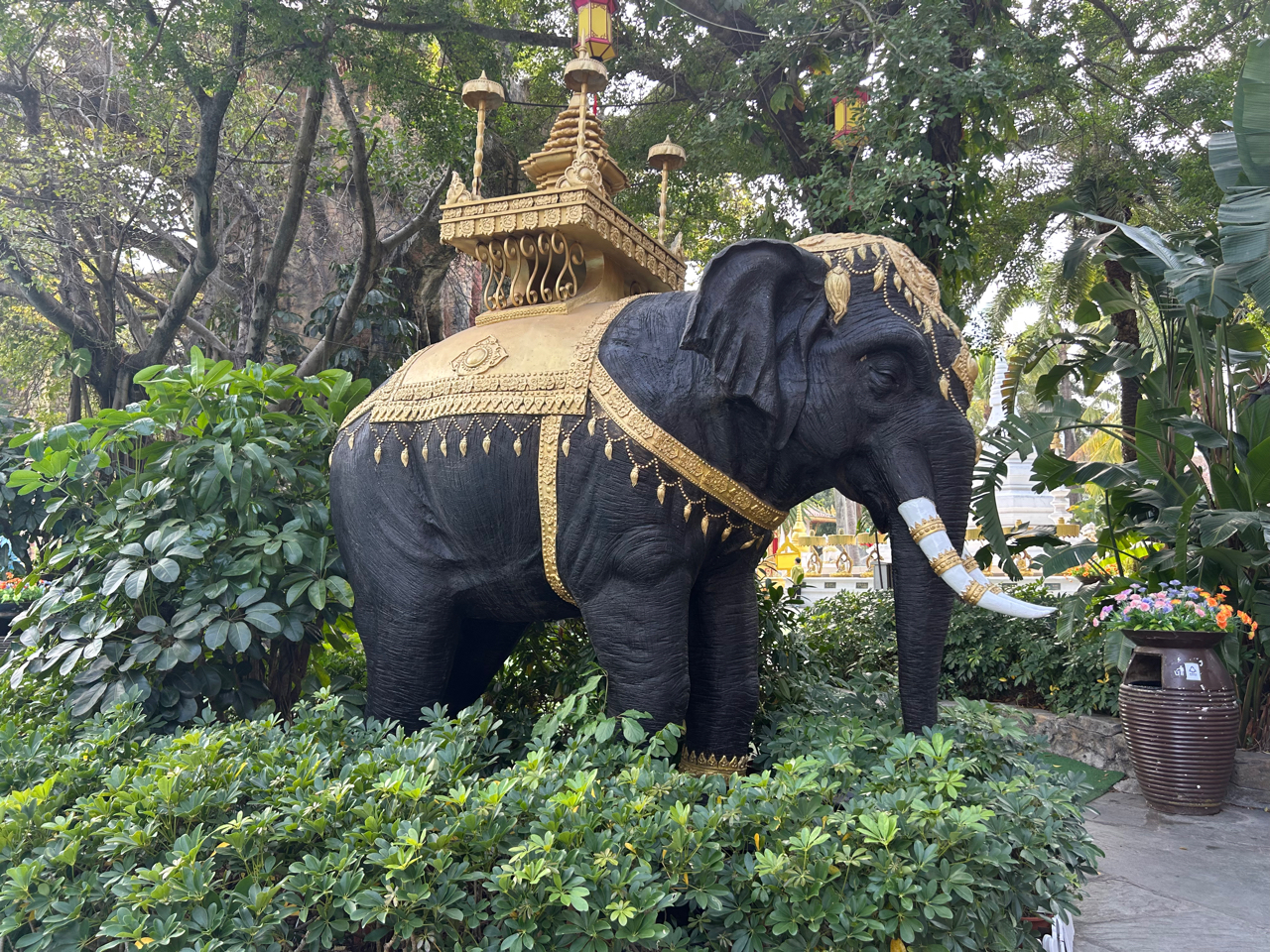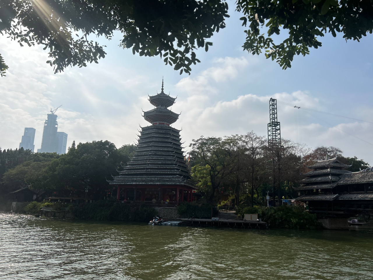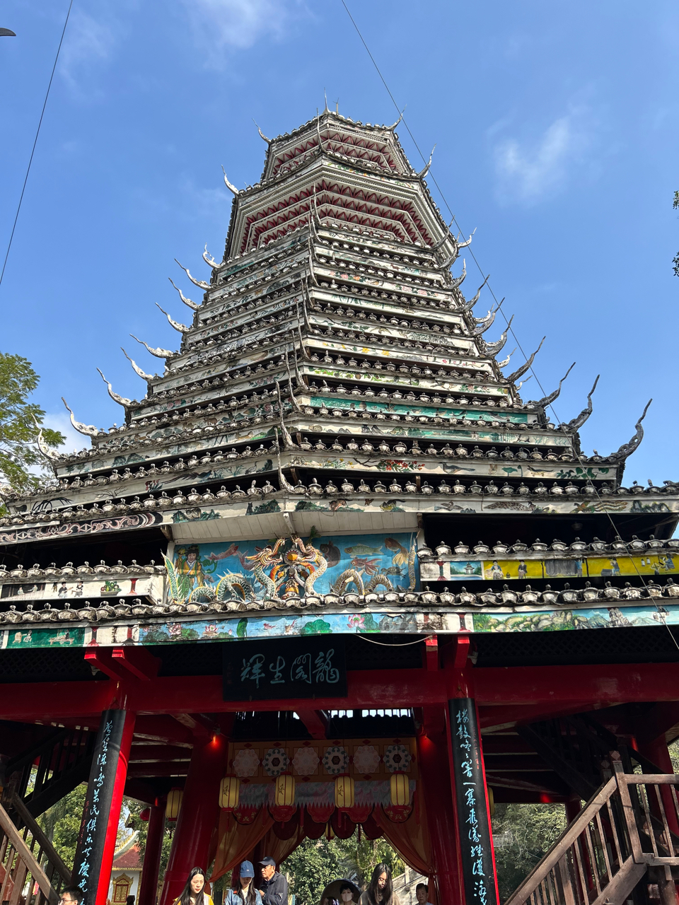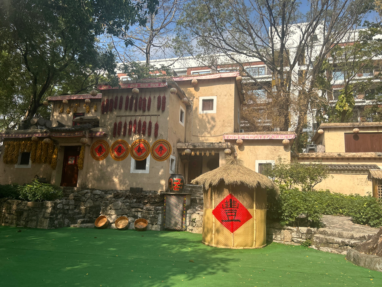 青秀山风起,竹影摇曳,清风明月亭下祈福木牌轻响。花桥横卧,侗寨鼓楼与傣式金顶相望,红灯笼映着绿植石阶。民族团结园里,大象静立,仿佛听见千年的歌谣在檐角流转。