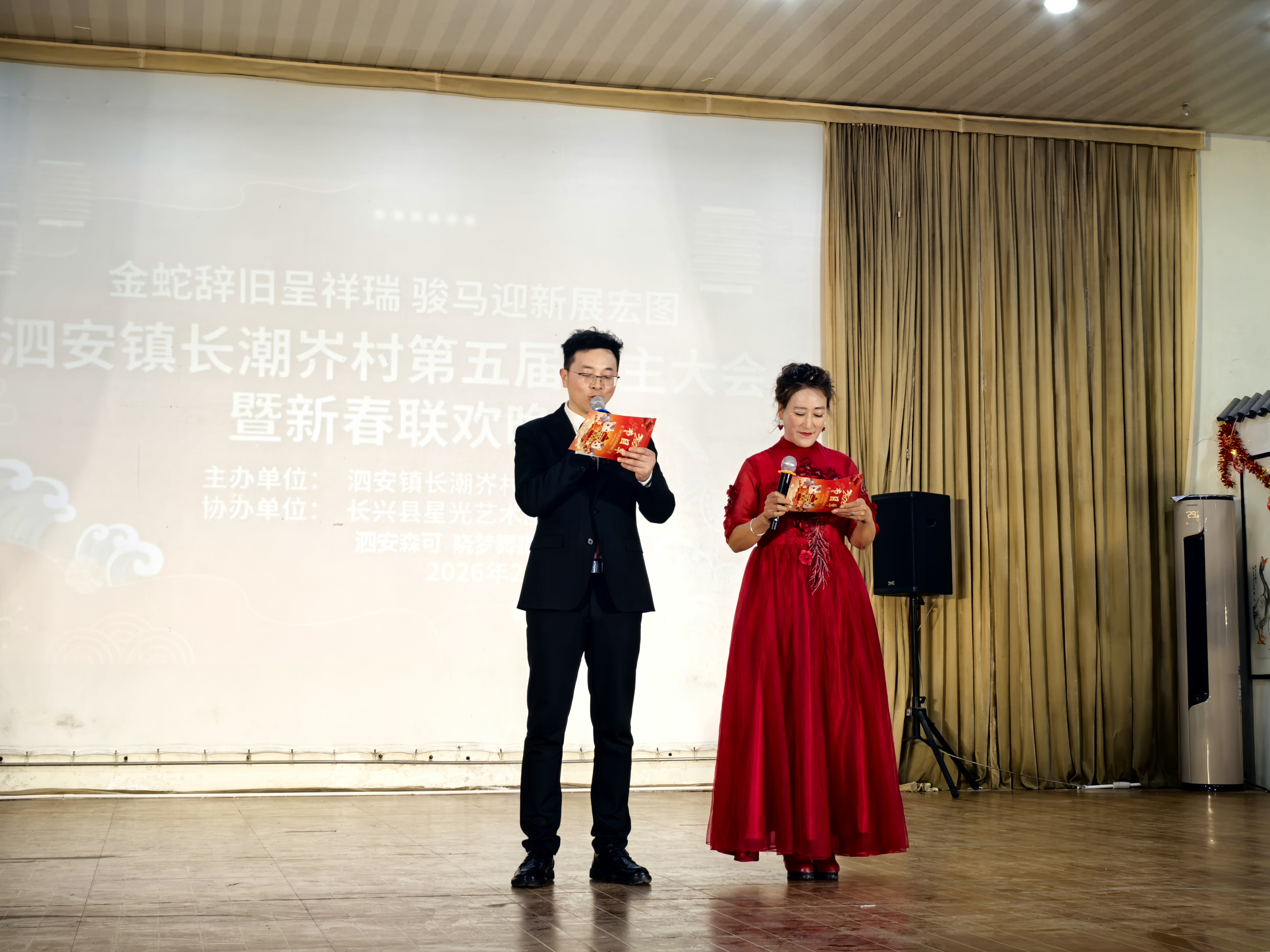 泗安镇长潮岕村第五届户主大会暨新春联欢晚会圆满举办 近日,长潮岕村第五届户主大会暨新春联欢晚会在村文化礼堂隆重举行。全村户主、党员干部与村民欢聚一堂,共话发展、同庆新春。 大会总结年度工作,通报村务财务,听取村民意见建议,凝聚治理共识。联欢环节精彩纷呈,村民自编自演歌舞、戏曲、小品等节目,洋溢着乡土气息与节日喜庆。现场掌声不断、暖意融融,既展现了村民昂扬向上的精神风貌,也拉近了邻里情谊。 此次活动以会议聚民心、以文艺润乡村,进一步激发共建共治热情,为乡村振兴注入强劲动力。