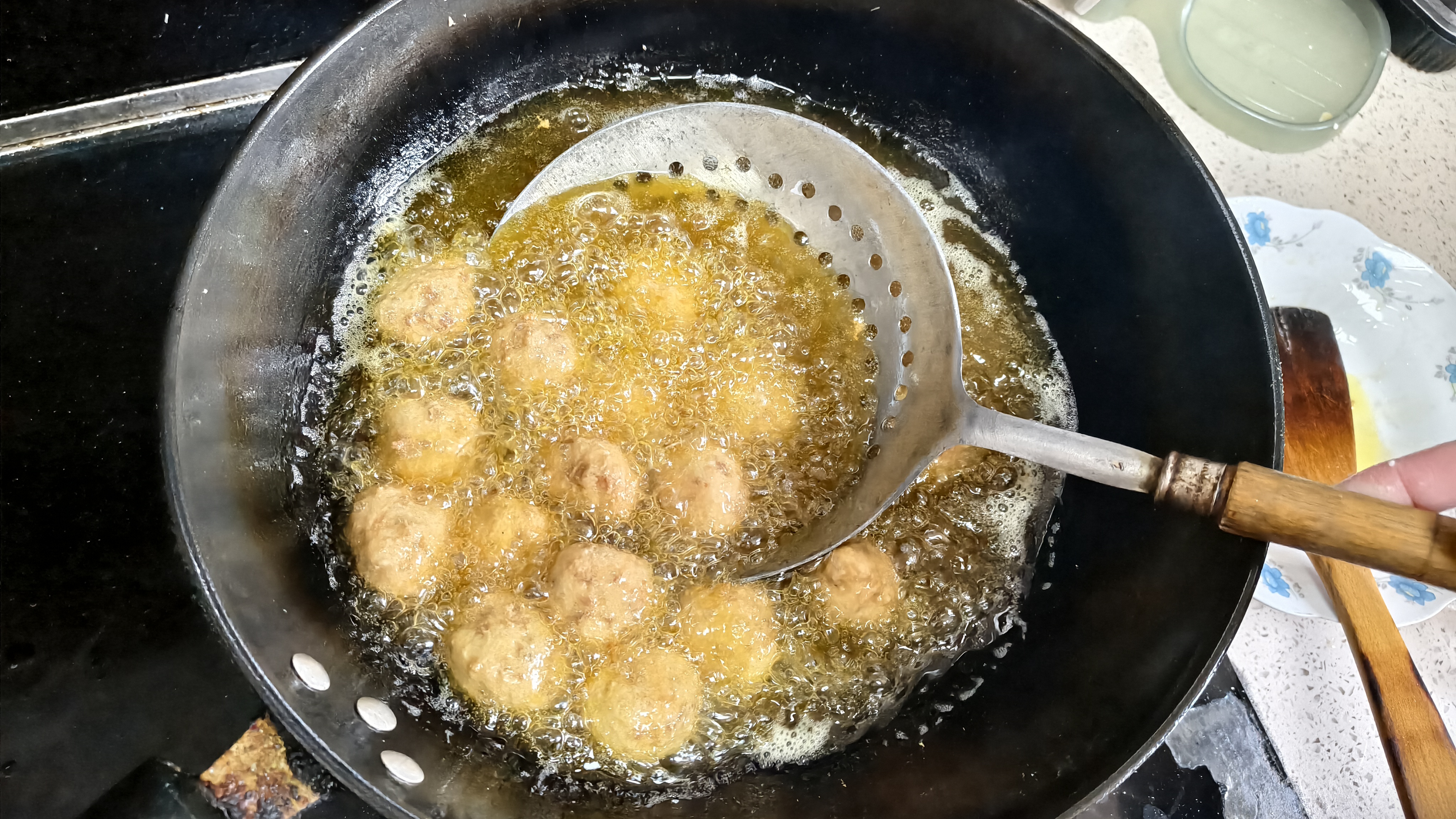 炸肉丸,炸油豆腐,年越来越近,灶台上升腾们的年味也越来越浓了。
