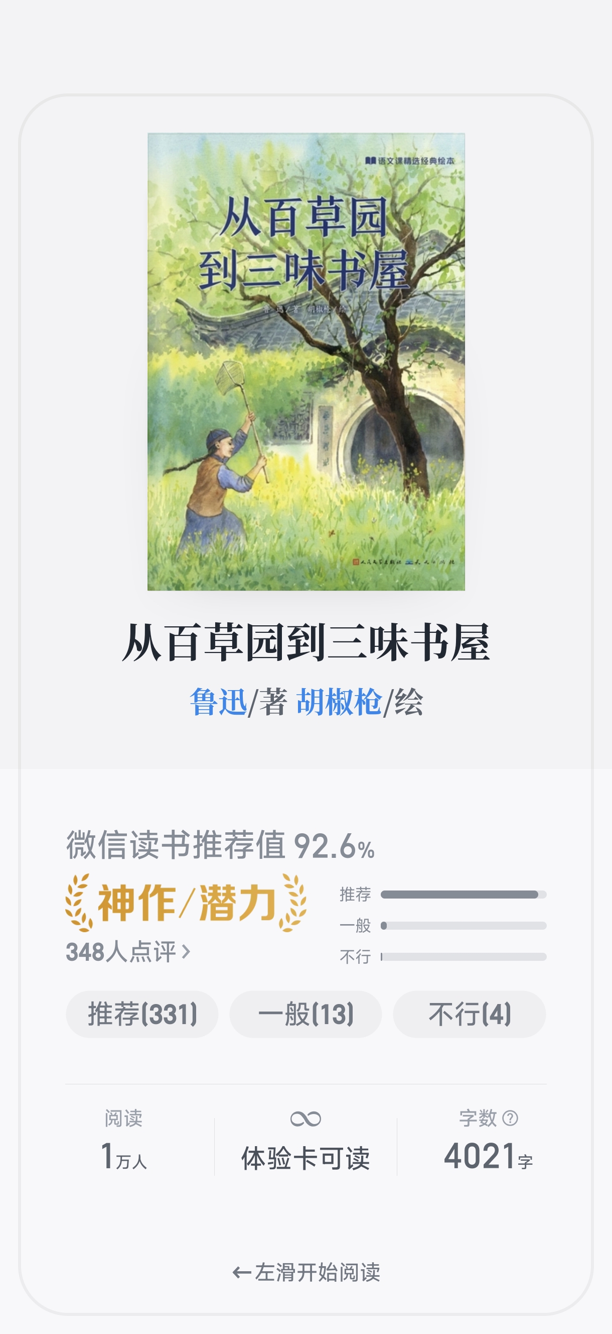 《从百草园到三味书屋》是鲁迅先生的经典散文,文中许多句子因其生动的描写和深刻的情感而广为流传。以下是一些经典好句,他家相传叫作百草园,现在是早已并屋子一起卖给朱文公的子孙了,连那最末次的相见也已经隔了七八年,以乐园二字奠定全文情感基调。 不必说碧绿的菜畦,光滑的石井栏,高大的皂荚树,紫红的桑椹,也不必说鸣蝉在树叶里长吟,肥胖的黄蜂伏在菜花上,轻忽然从草间直窜向云霄里去了,运用排比和拟人手法,描绘出百草园生机勃勃的景象,充满童趣。走到竹筛底下的时候,将绳子一拉,便罩住,细致描写捕鸟过程,动作连贯,充满生活气息,是童年乐趣。