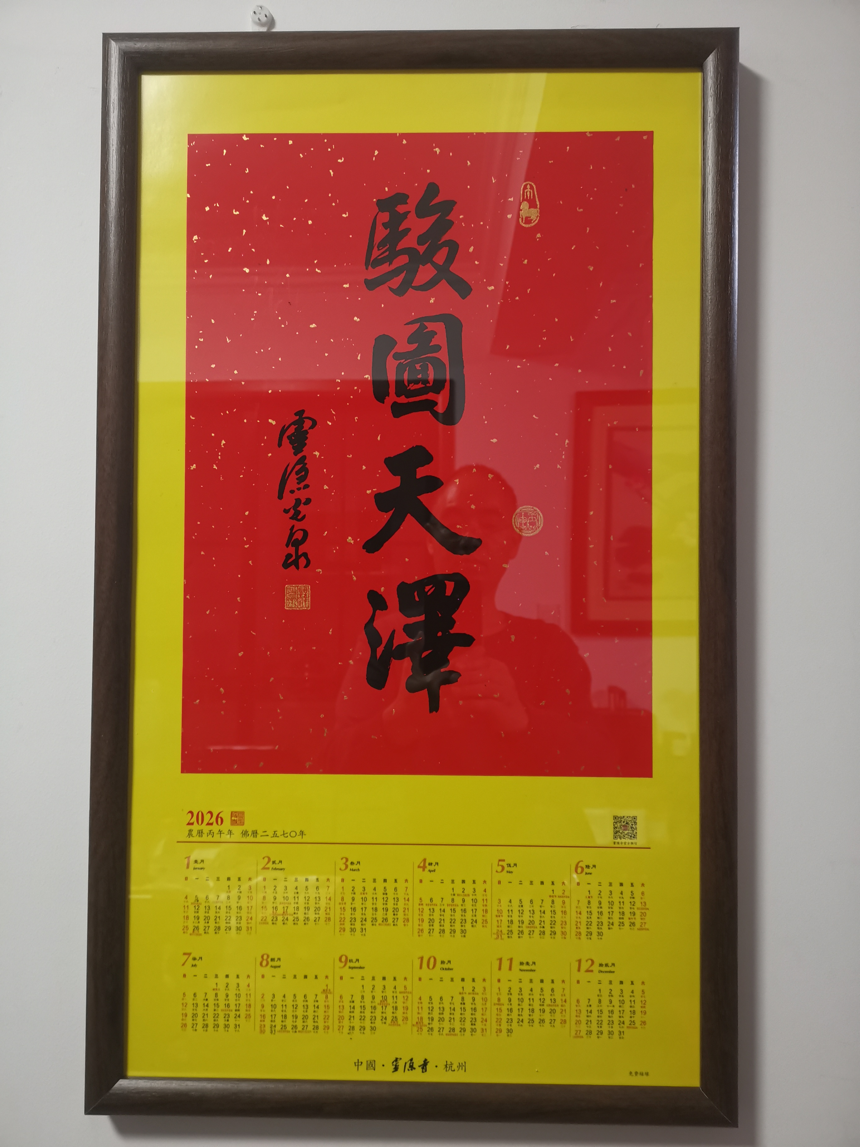 马上有骏图天泽!《潮新闻》钱报朋友圈邮寄的灵隐寺挂历真不错,“骏图天泽”四个大字圆润通透、苍劲有力!“骏图天泽”是一个寓意远大的志向和上天恩泽的吉祥词语,常用于表达对未来的美好期望和祝福。