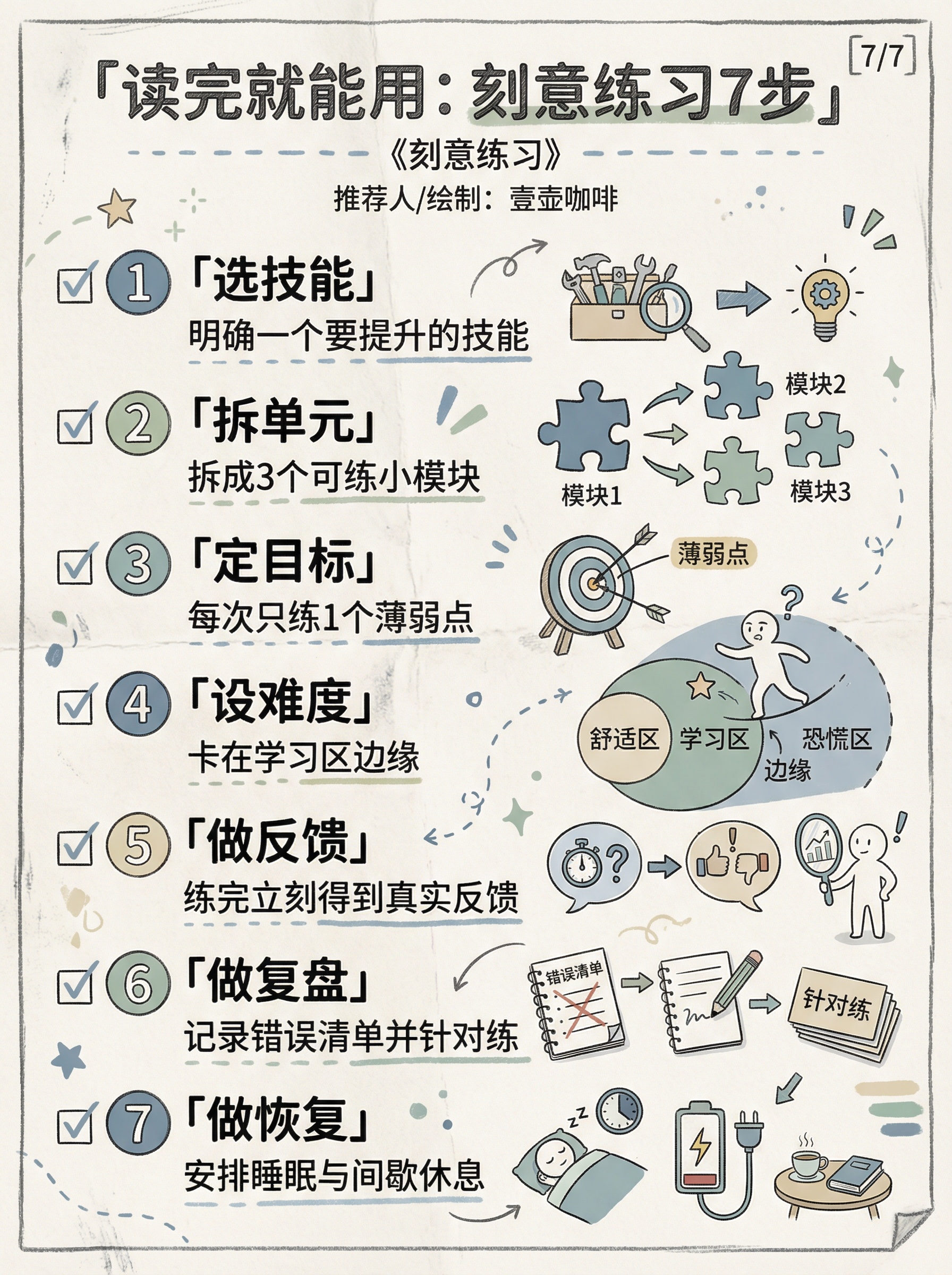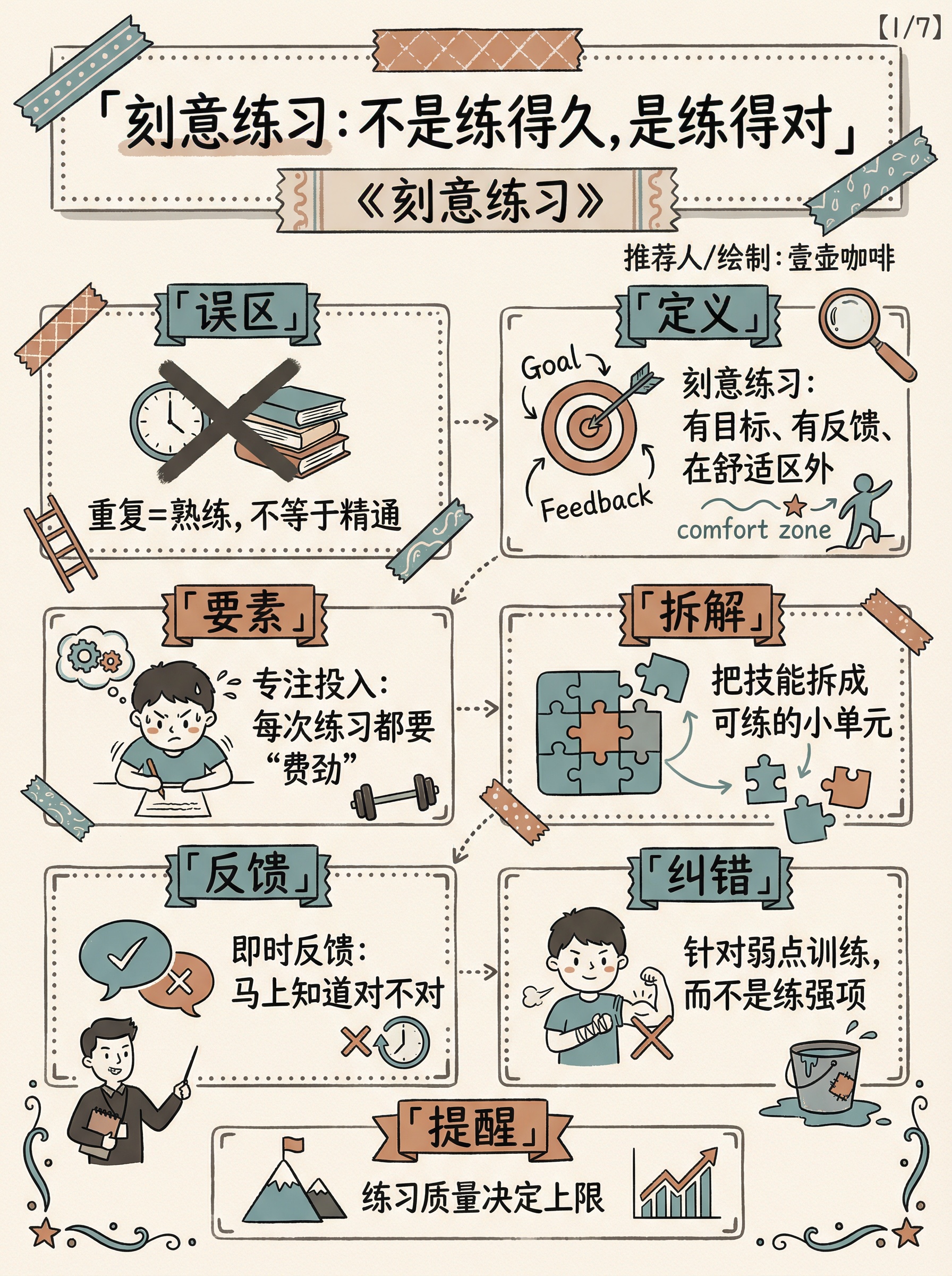 为什么很多老司机开了20年车,技术还是不如专业赛车手? 为什么很多人工作了10年,能力却只停留在第1年? 安德斯·埃里克森在《刻意练习》里一针见血地指出: 👉 “天真的练习(Naive Practice),只是在不断重复已经掌握的事情。” 🚫 真正的成长,从来不是靠时长的堆砌,而是靠“刻意”的设计。 这本书彻底颠覆了我的“努力观”。它告诉我,杰出不是一种天赋,而是一种人人都可以学会的正确练习方式。 💡 刻意练习的3个核心心法: 1️⃣ 逃离舒适区:如果你练得很舒服,说明你在退步。只有感到“有点难、有点累”的时候,大脑才在长肌肉。🏋️ 2️⃣ 建立心理表征:高手和菜鸟的区别,不在于记忆力,而在于大脑里有没有一张高质量的“地图”。🗺️ 3️⃣ 即时反馈:没有反馈的练习就是自嗨。你需要知道哪里错了,然后立刻修正。🔄 愿我们都能摆脱“低水平勤奋”,在每一个枯燥的动作里,看见通往卓越的阶梯。