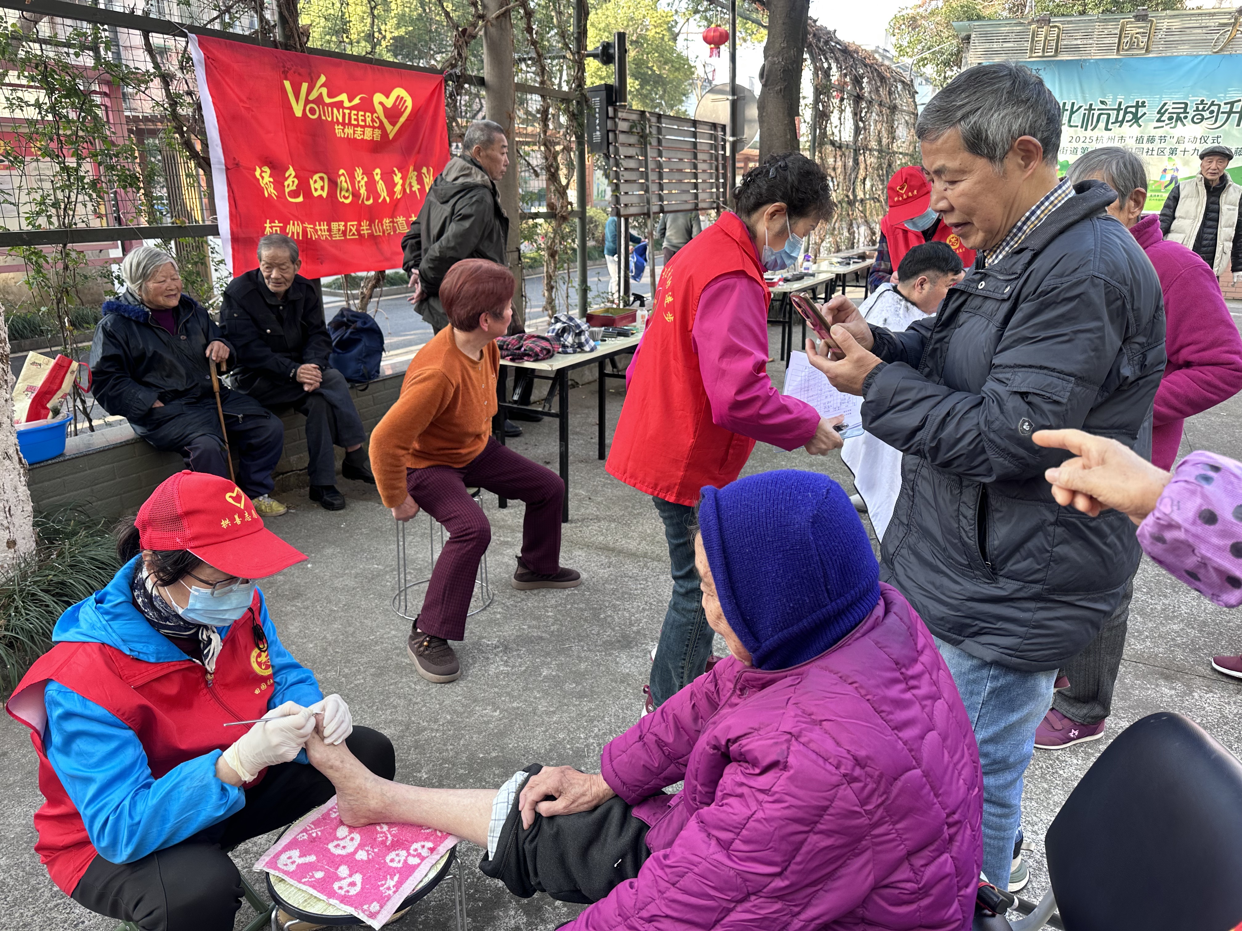 “先锋担当显初心 暖冬行动惠万家”绿色田园公益服务社今开展助老助残党员志愿者固定日活动 2月15日上午,半山街道田园社区党支部联合、绿色公益服务社支部,在社区广场开展“微寒清晨暖人心——银发族‘从头到脚’暖心关怀公益活动”,以实际行动关爱辖区银发长者与残疾老人,传递党建温情。 活动以“先锋担当显初心、暖冬行动惠万家”为宗旨,精准对接老年群体实际需求,现场设置理发、养生推拿、修脚三大便民服务摊位。党员志愿者与优秀志愿者们热情服务、细致耐心,为老人们提供“零距离、全方位”的便民服务,认真倾听老人需求,切实解决老年群体理发难、修脚难、康养不便等“急难愁盼”问题。 针对行动不便的老人,志愿者还提供上门服务,送上贴心照料,让服务真正延伸到家门口。 本次活动中,党员志愿者王建接、李金生、吴陆萍,孙琴玉优秀志愿者俞韵祥、马锦妹、任根生、金明积极参与、无私奉献。活动累计为36位老人提供理发服务,3位老人享受养生推拿,8位老人接受修脚服务,服务覆盖近47位社区长者。 此次助老助残志愿服务,充分展现了党员先锋模范作用,不仅提升了社区长者的幸福感、获得感与归属感,更进一步凝聚了党建引领下的社区公益力量,营造了尊老、敬老、爱老、助老的良好社区风尚。