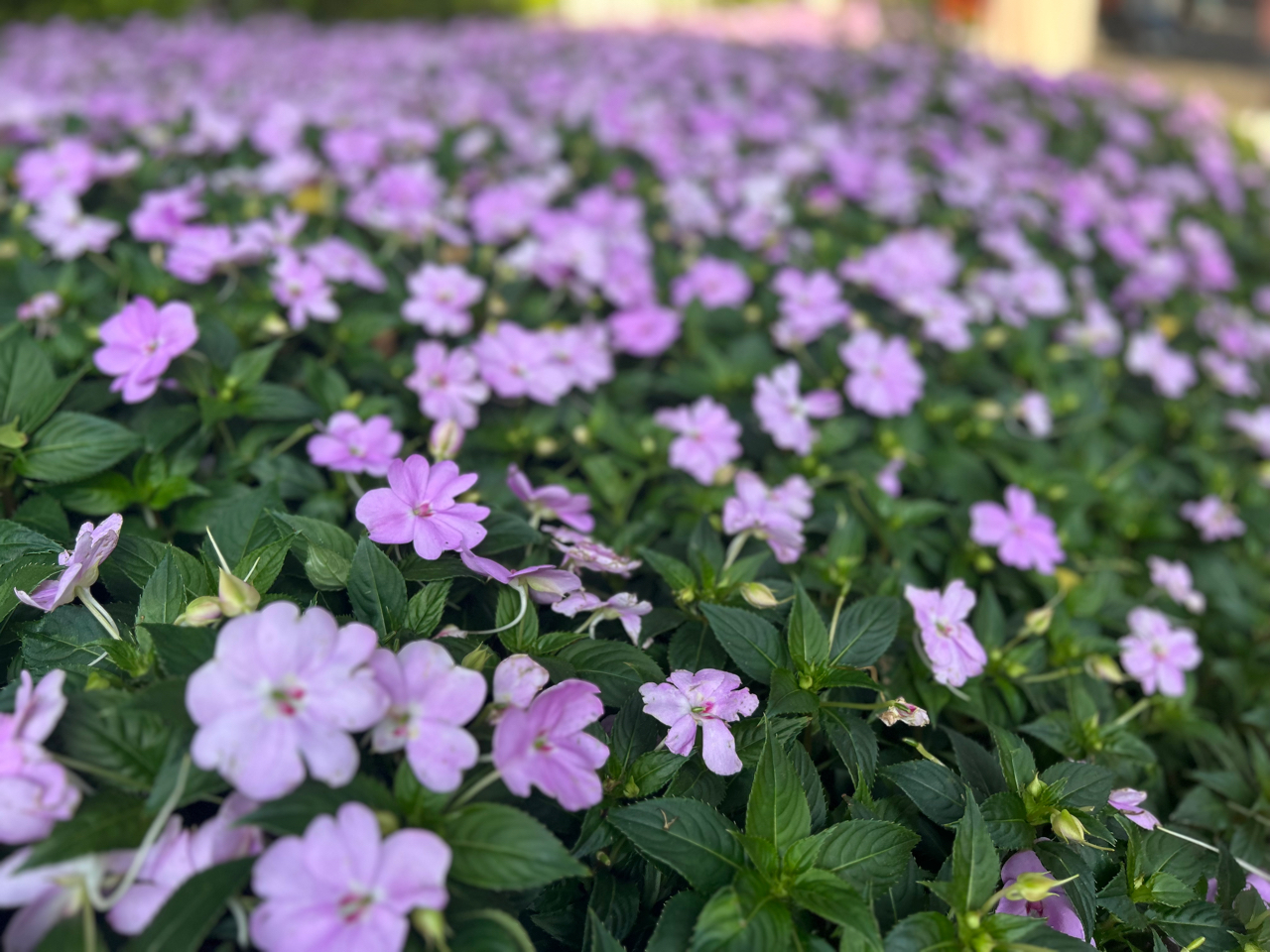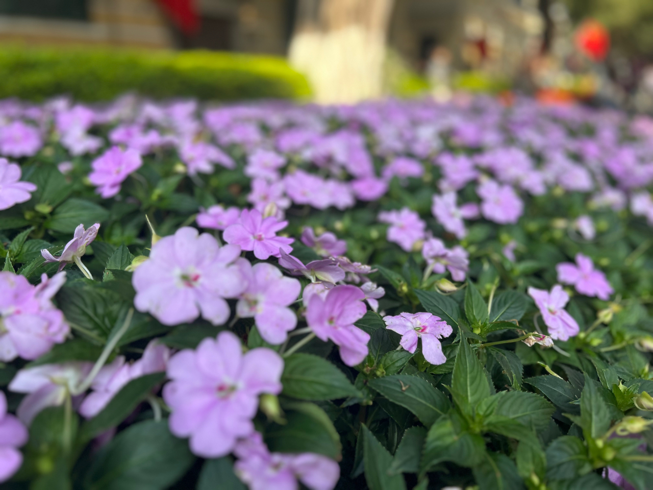 春日园中,紫罗兰与凤仙花织就一片粉雾般的花海,绿叶轻托,繁花低语。阳光穿过枝隙,在花坛、小径、都市公园的每一寸生机里,静静流淌。快门轻按,便锁住这抹清新自然的永恒诗意。