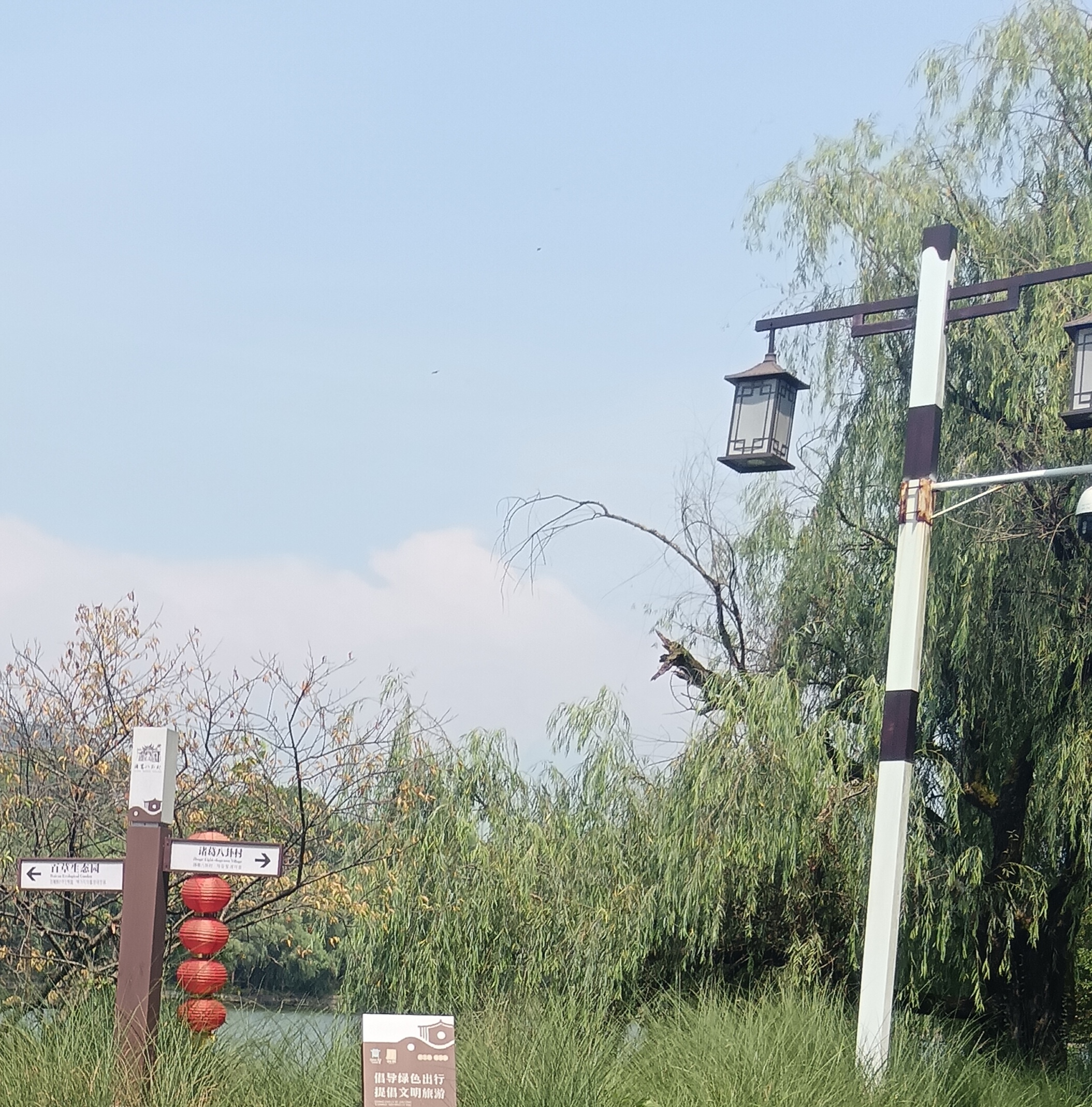 诸葛八卦村遛弯儿~百草园里灯笼摇,柳影摇曳湖光蓝,绿色出行拍到爽!