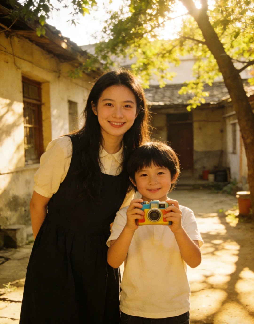 我们都曾有过那样一个玩具相机,对着空气按动快门,假装留住了风,留住了云,留住了午后的阳光,AI却把这场“假装”变成了具象的震撼那个小小的身影倔强地举起相机,而画面中央出现的,正是他心心念念想成为、却又在长大后感到陌生的那个大人,这种视觉上的错位,像极了一封寄错了地址却最终投递成功的信我想这就是AI赋予艺术的浪漫吧:它能让“过去”与“未来”在同一个像素平面里握手言和, 那个孩子并不知道他拍到了什么,而那个大人也并不确定自己是否活成了孩子期待的样子,他们在算法的折叠下,共同完成了一场名为“人生”的赛博面基