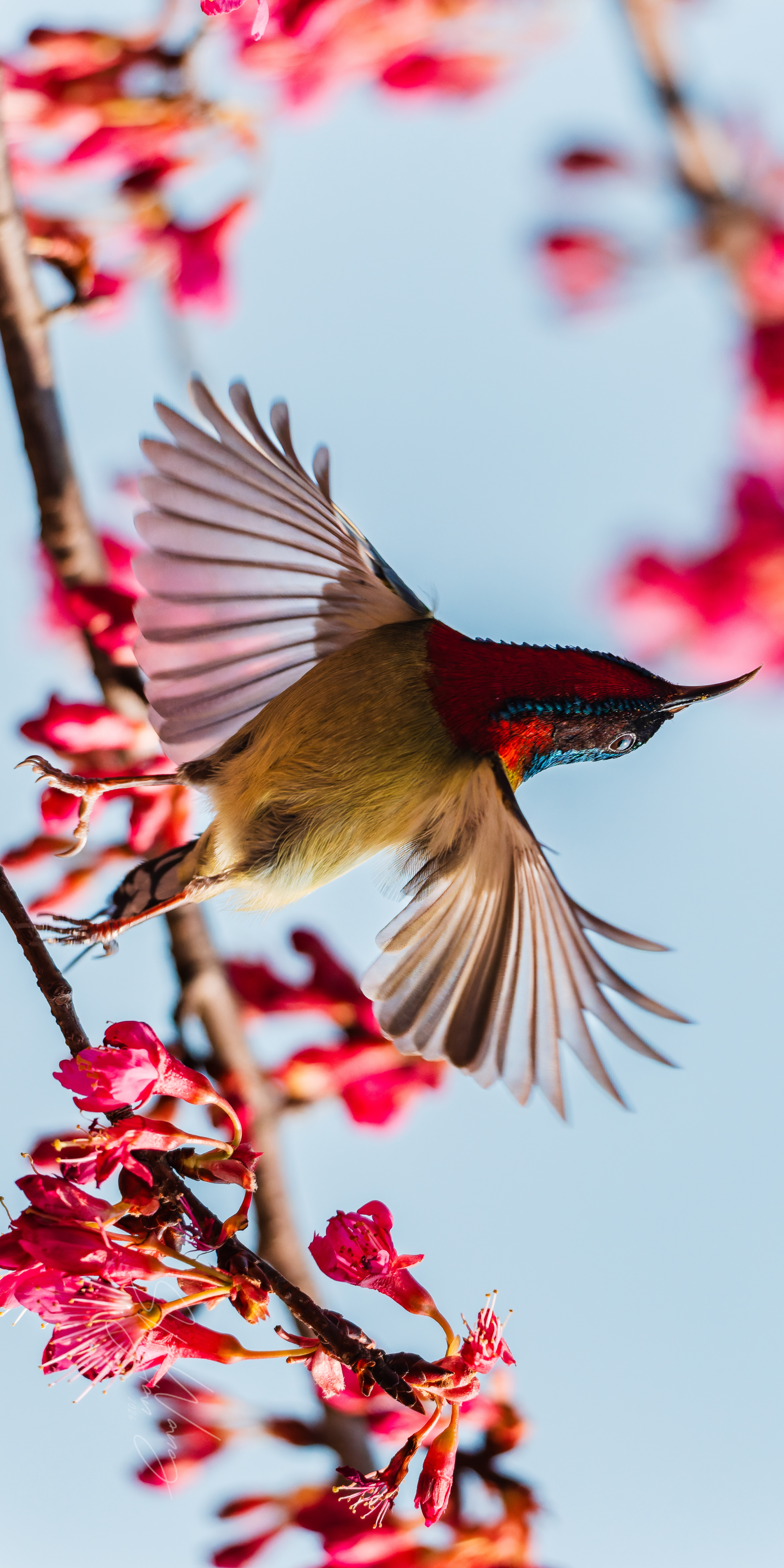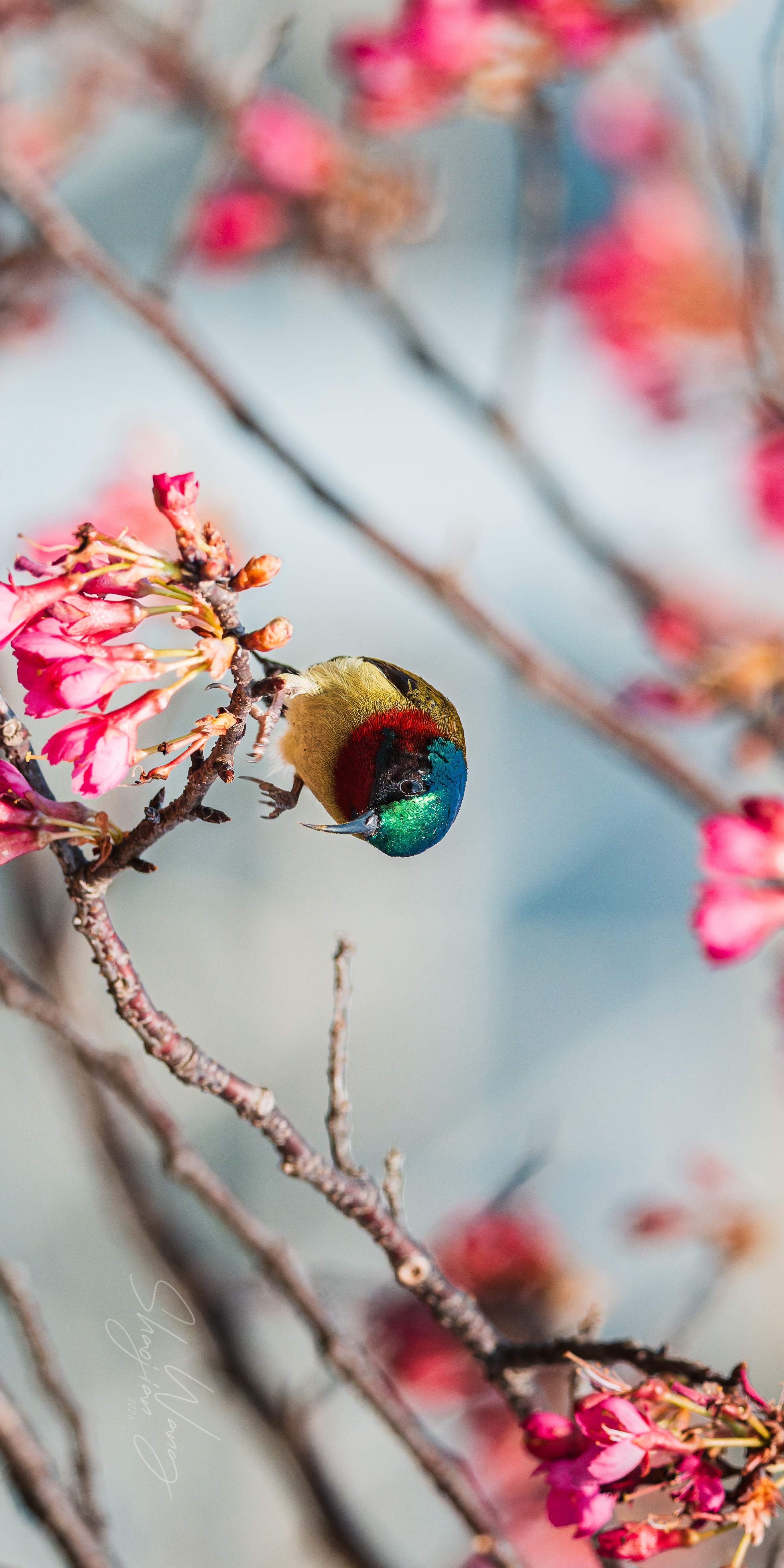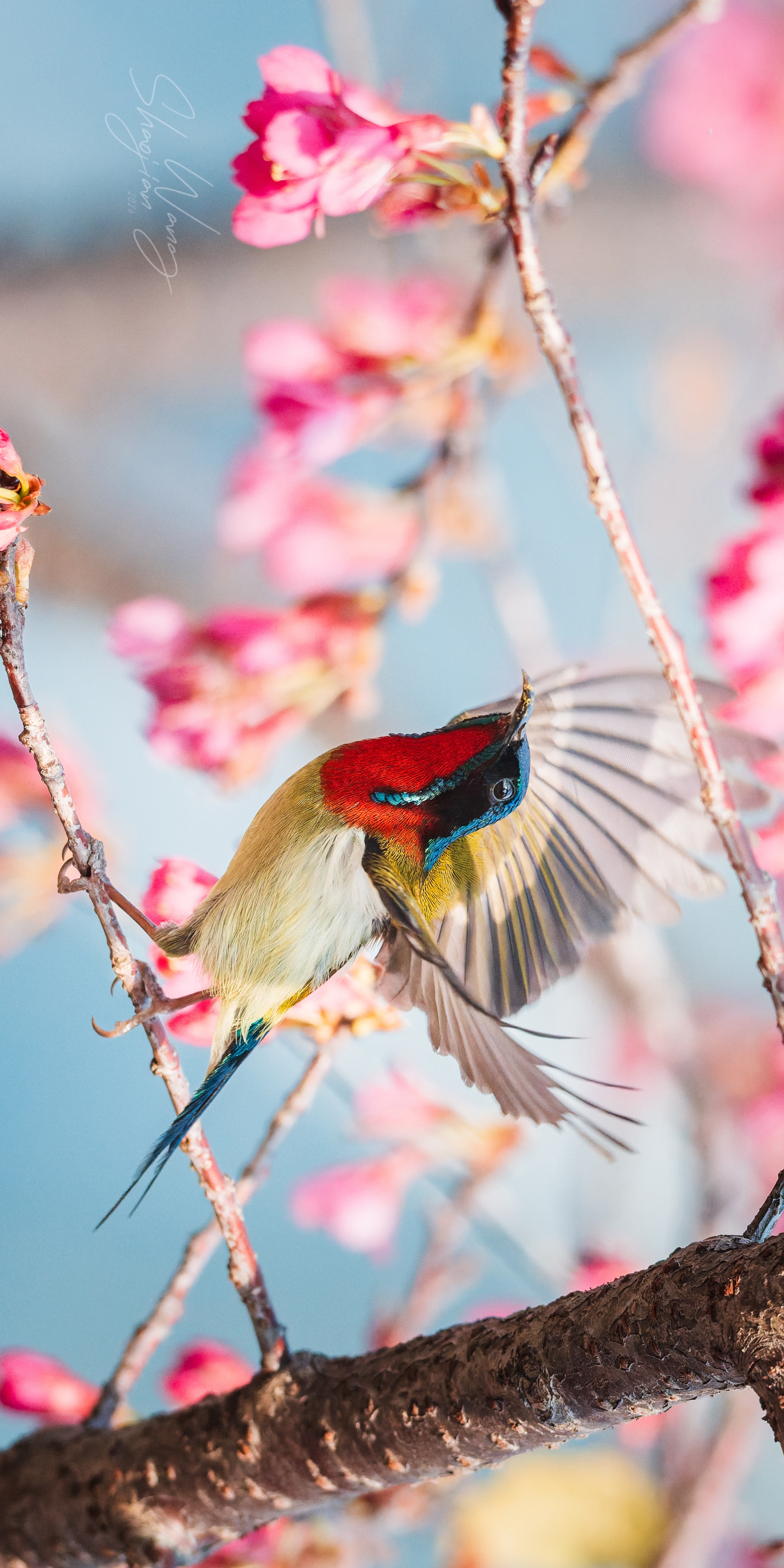 杭州的春天,是樱花与“东方蜂鸟”的约会💘 当叉尾太阳鸟悬停在粉樱间,翅膀扇动出风的形状,金属光泽的羽毛在阳光下流转,那一刻,所有的等待都值得了。 这大概就是自然最动人的模样吧✨ 拍摄参数:快门1/3200 光圈F8 感光度3200 拍摄设备:索尼A1M2+480G