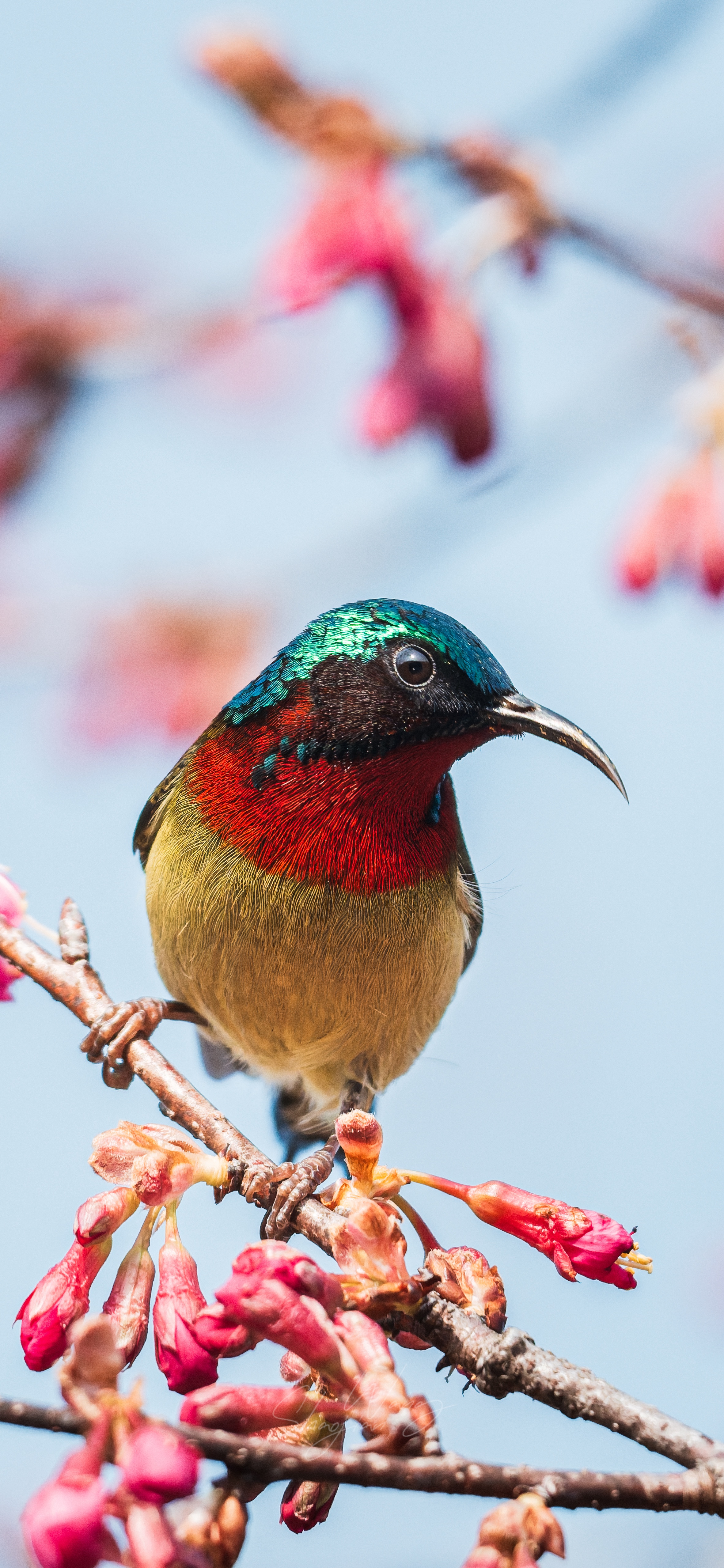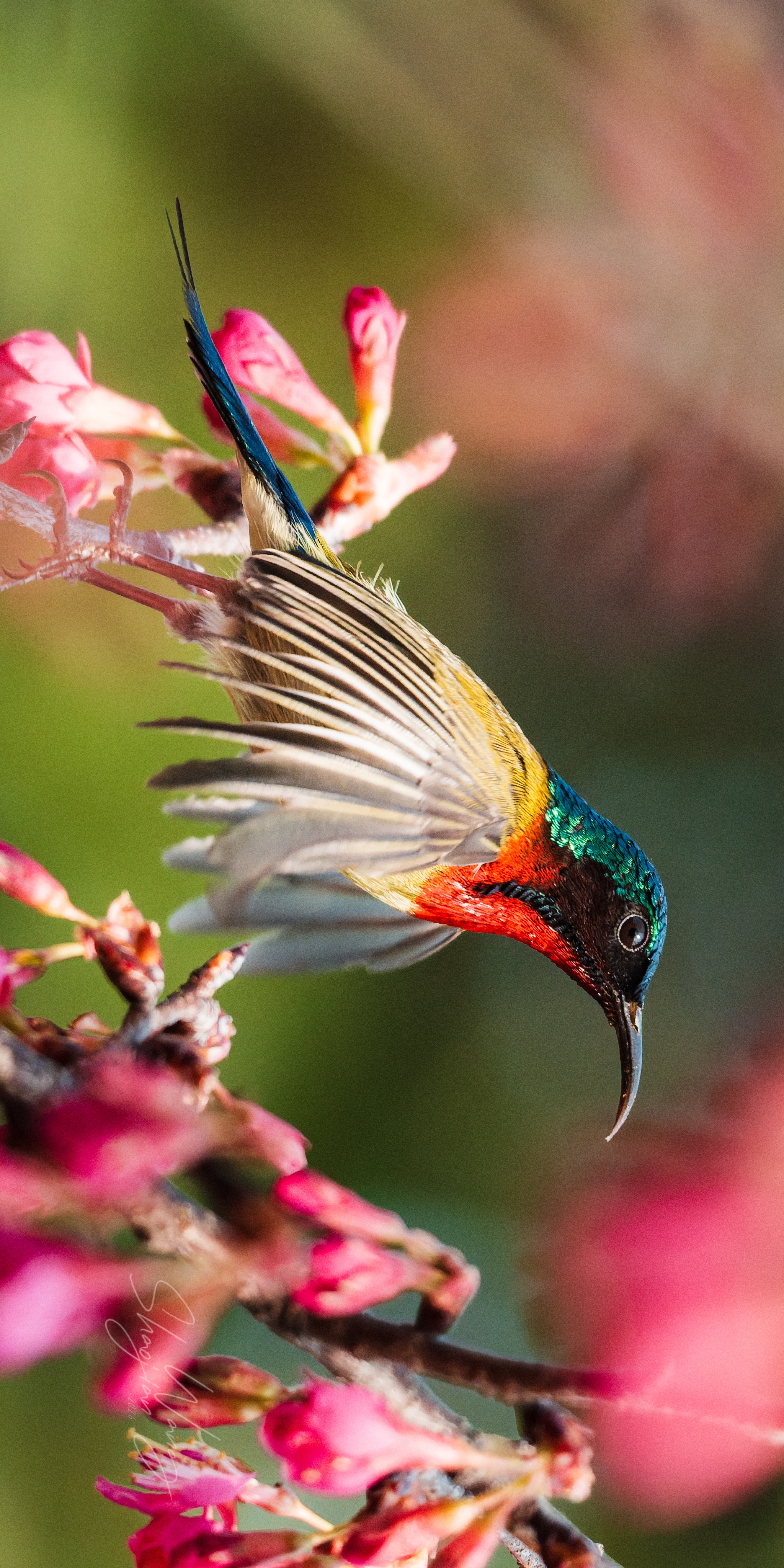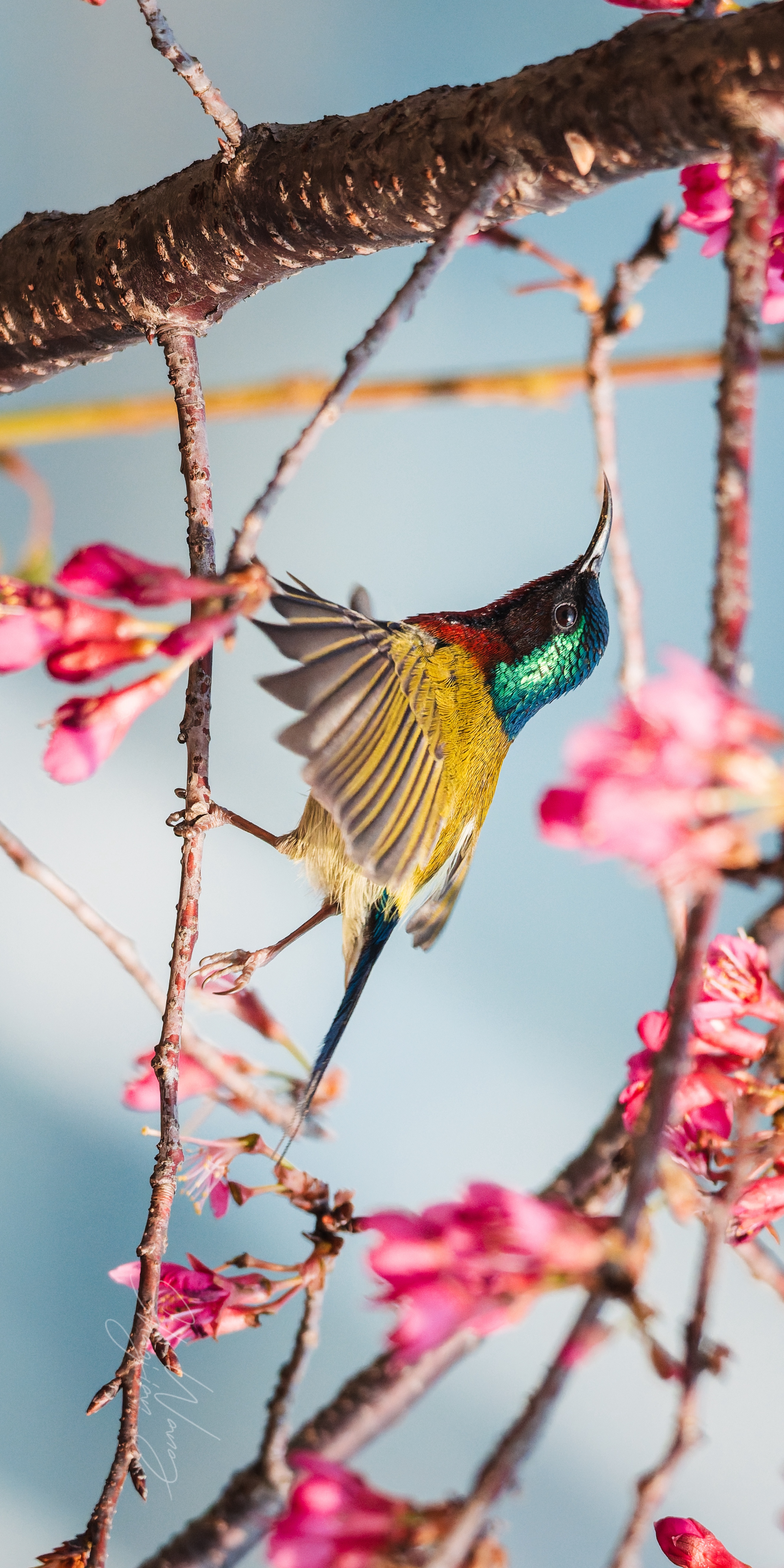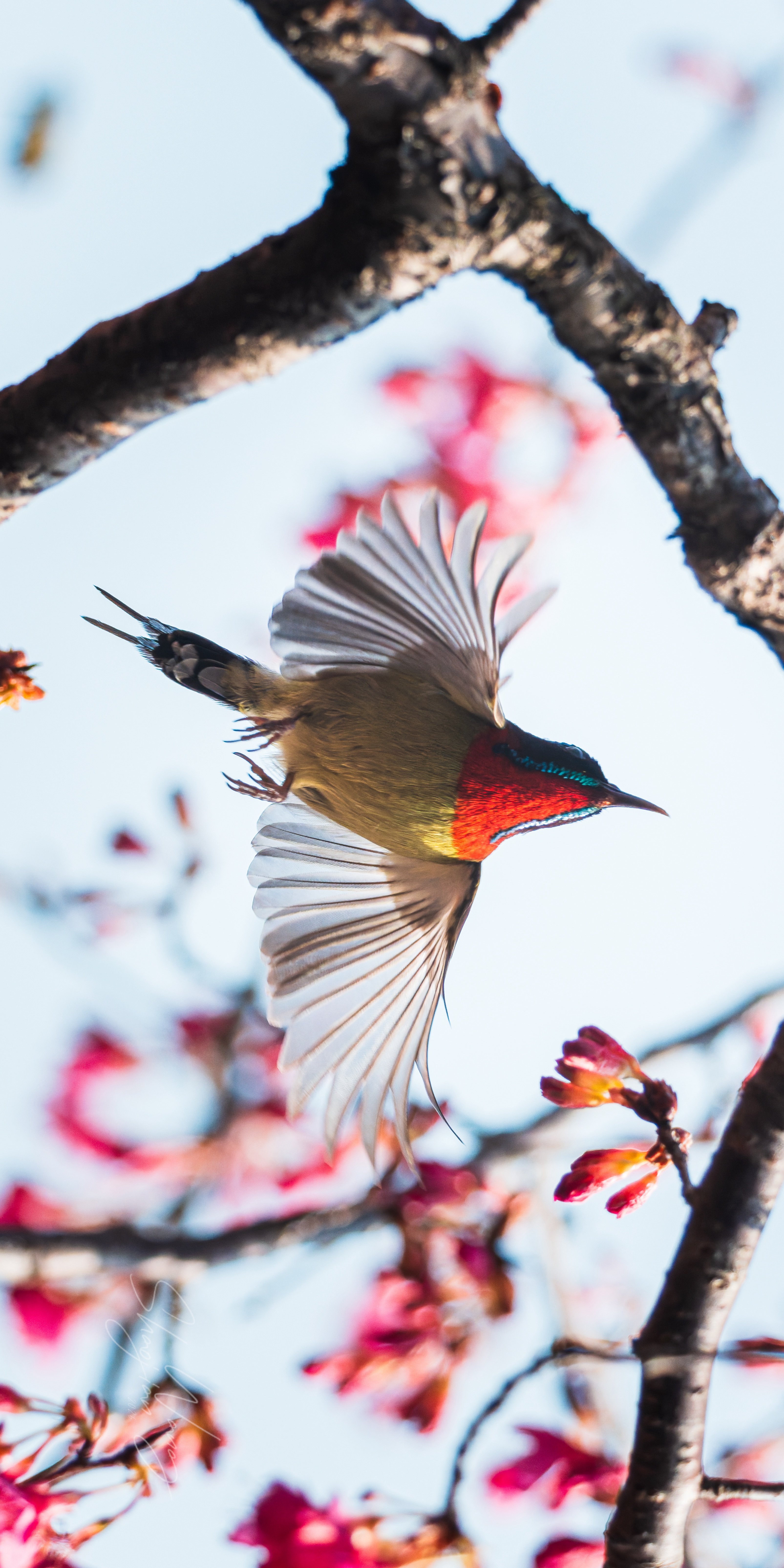 杭州的春天,是樱花与“东方蜂鸟”的约会💘 当叉尾太阳鸟悬停在粉樱间,翅膀扇动出风的形状,金属光泽的羽毛在阳光下流转,那一刻,所有的等待都值得了。 这大概就是自然最动人的模样吧✨ 拍摄参数:快门1/3200 光圈F8 感光度3200 拍摄设备:索尼A1M2+480G