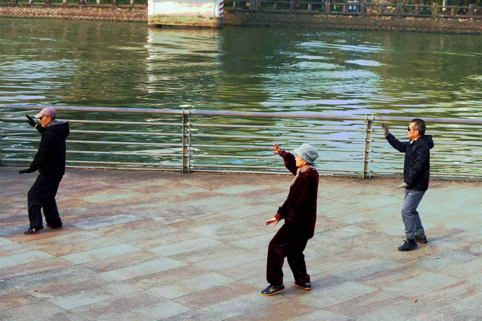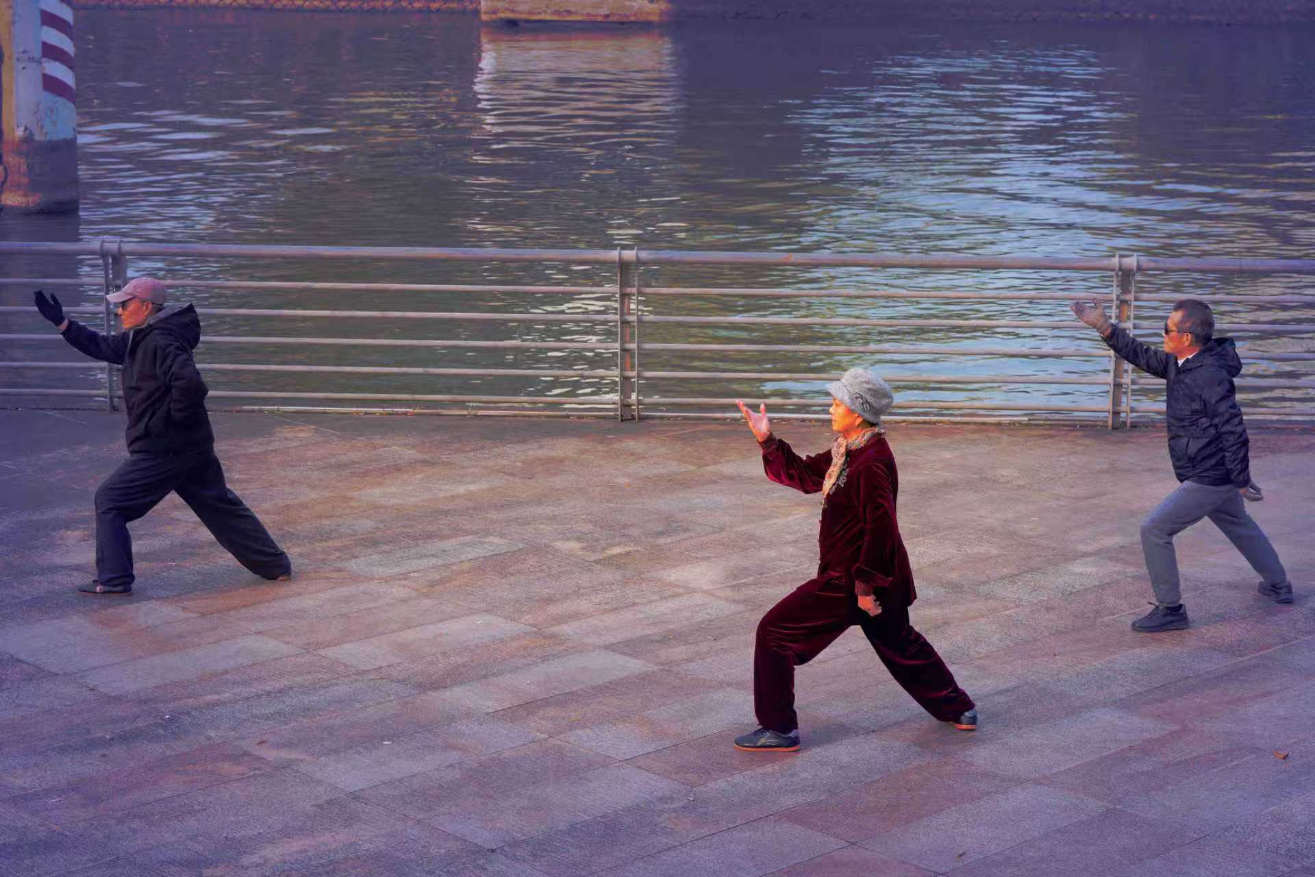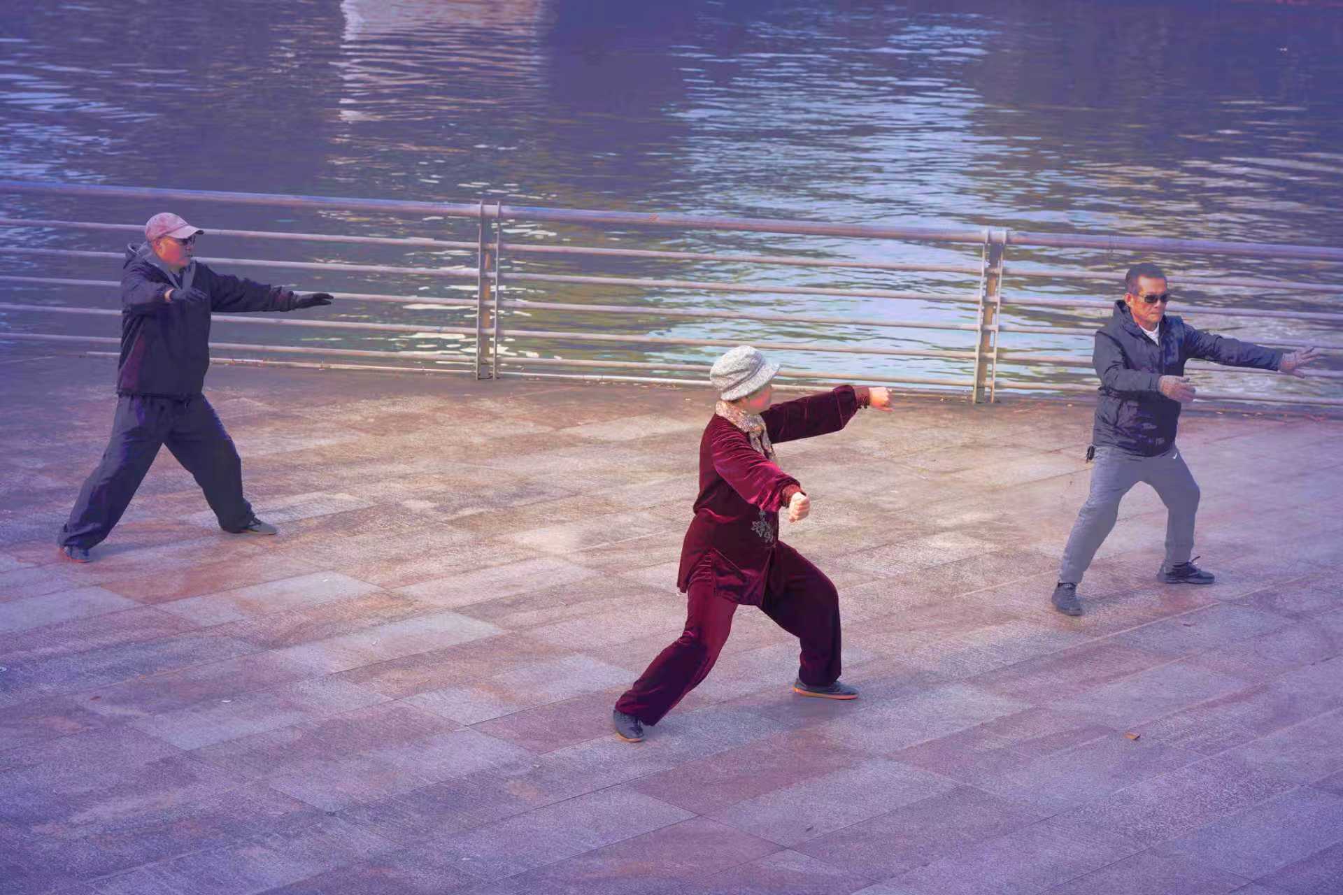 杭州大运河畔西湖文化广场文体健身人之五: 大运河畔中北桥墩下方空广地域,清晨常见有轮滑、舞剑、太极健身训练市民,也有吹奏西洋乐器训练者。了解皆以离退休老同志为主,那处似乎已成为吹拉弹唱、健身训练全能人才展示地,皆被吸引到此大运河桥墩下河畔。 对此类自发形成丰富多彩市民文化活动场景,恰好符合号称“文化广场”的生态特性,也成为杭州文化艺术大省特色氛围亮点。希望相关管理部门因地制宜~从引领群众文艺立足,辅助培养发展保护好此类特色文艺角!(2026.1.25前拍摄)