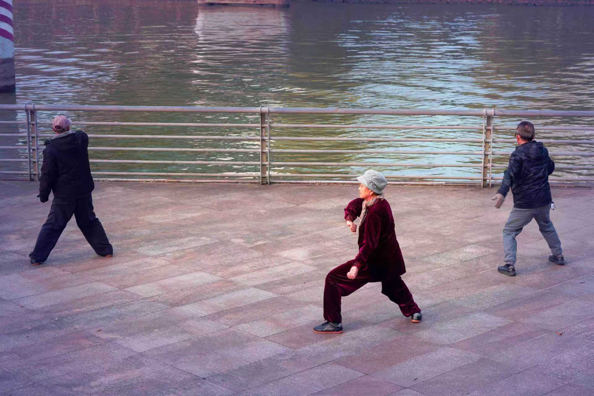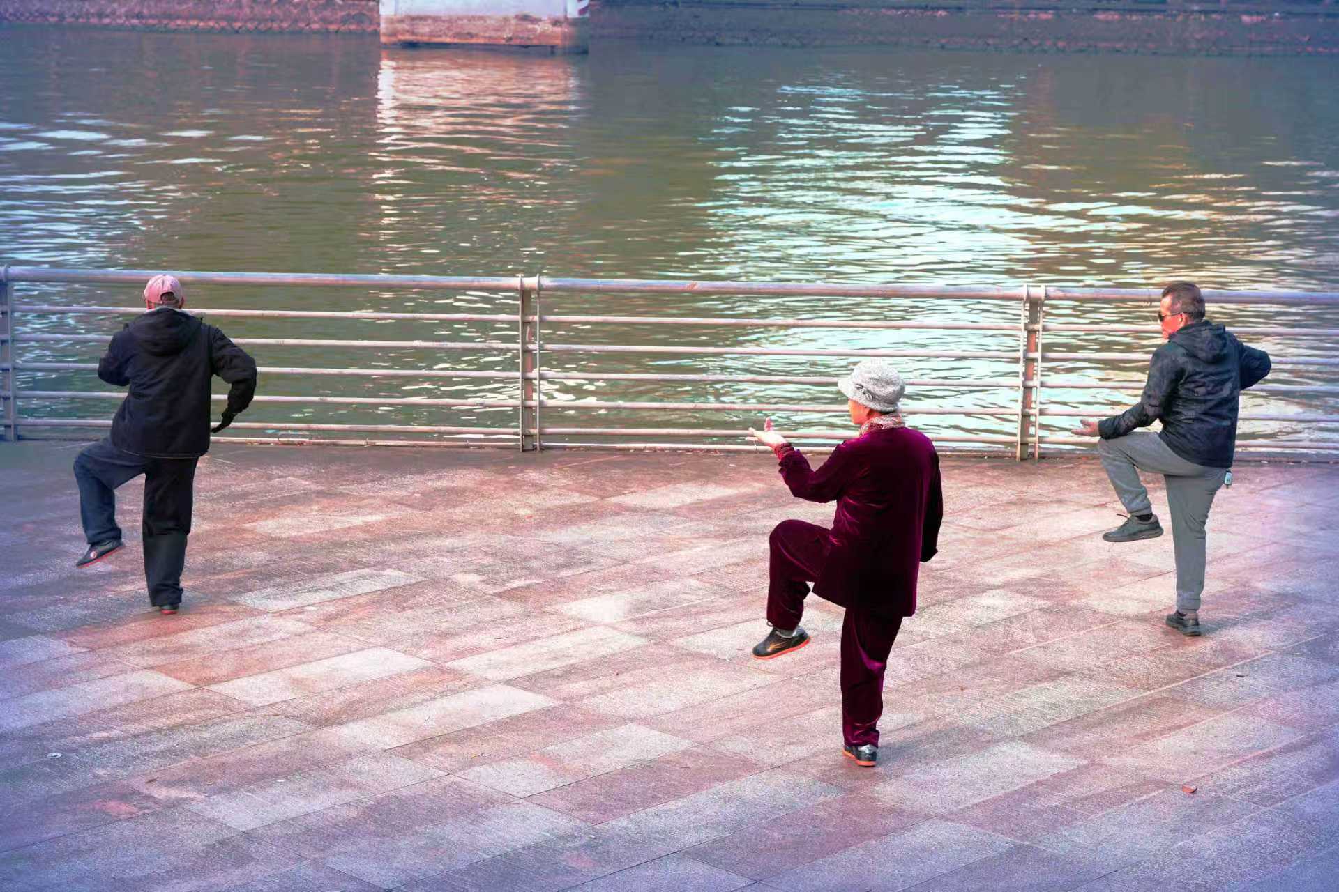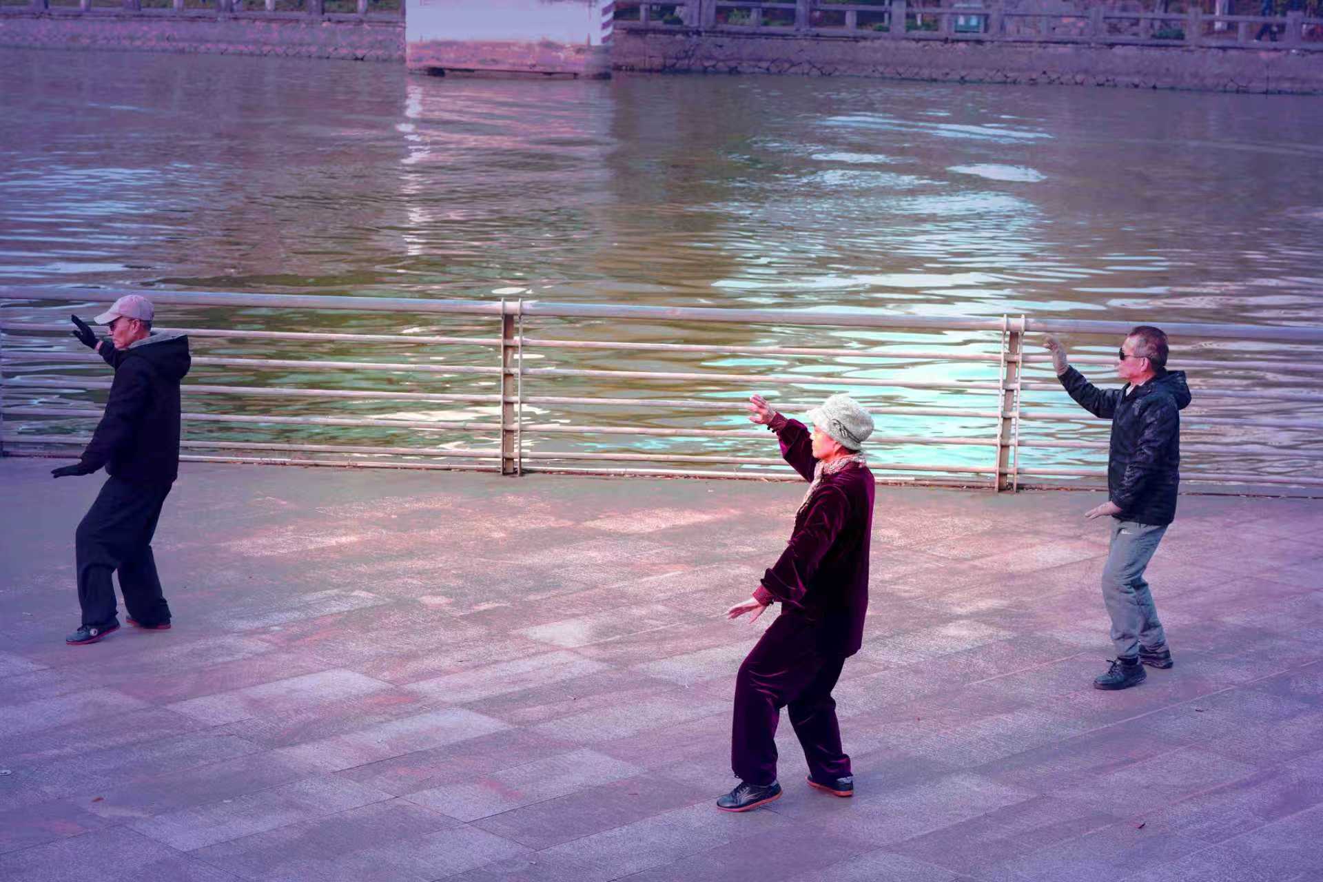 杭州大运河畔西湖文化广场文体健身人之五: 大运河畔中北桥墩下方空广地域,清晨常见有轮滑、舞剑、太极健身训练市民,也有吹奏西洋乐器训练者。了解皆以离退休老同志为主,那处似乎已成为吹拉弹唱、健身训练全能人才展示地,皆被吸引到此大运河桥墩下河畔。 对此类自发形成丰富多彩市民文化活动场景,恰好符合号称“文化广场”的生态特性,也成为杭州文化艺术大省特色氛围亮点。希望相关管理部门因地制宜~从引领群众文艺立足,辅助培养发展保护好此类特色文艺角!(2026.1.25前拍摄)