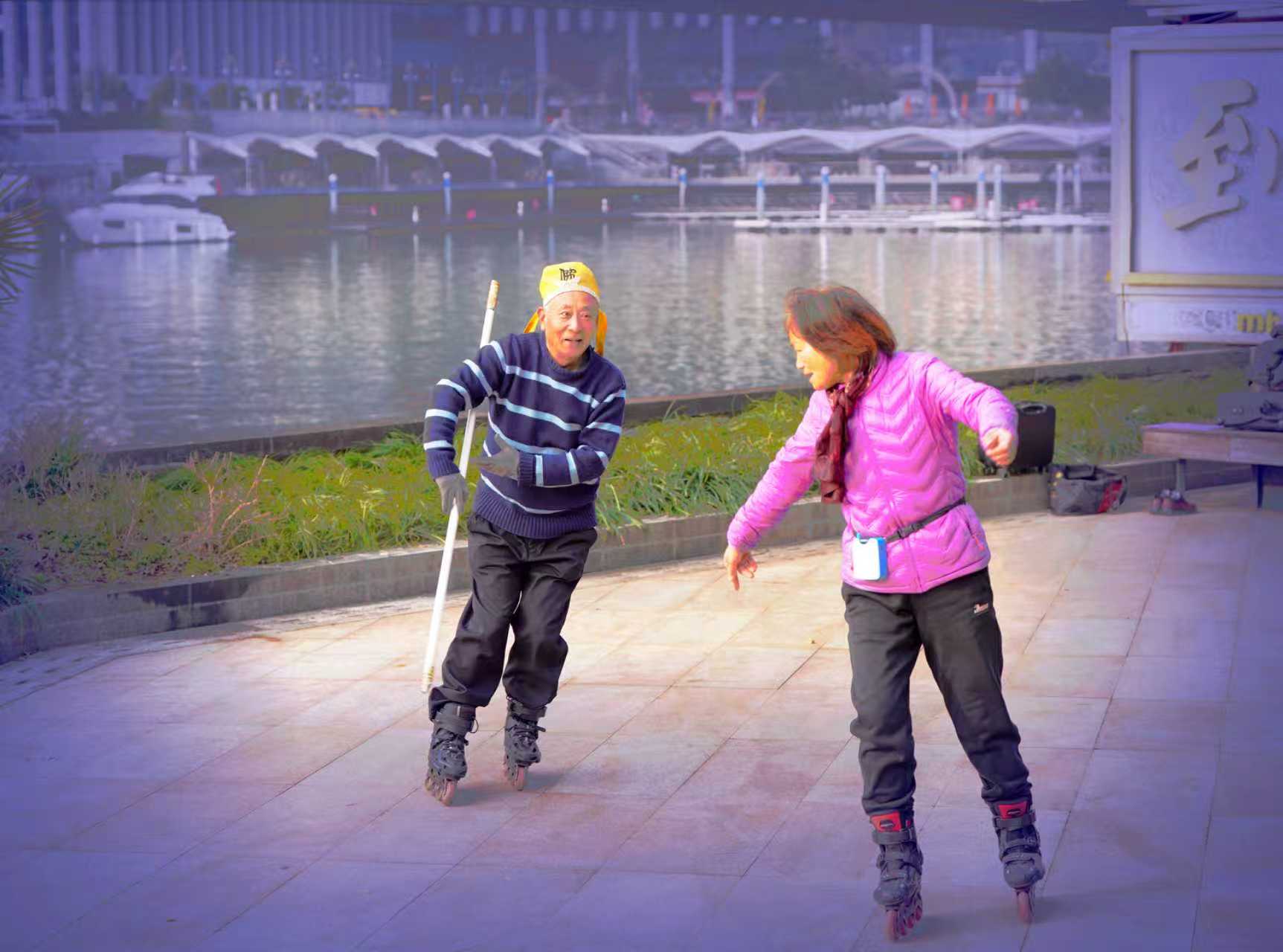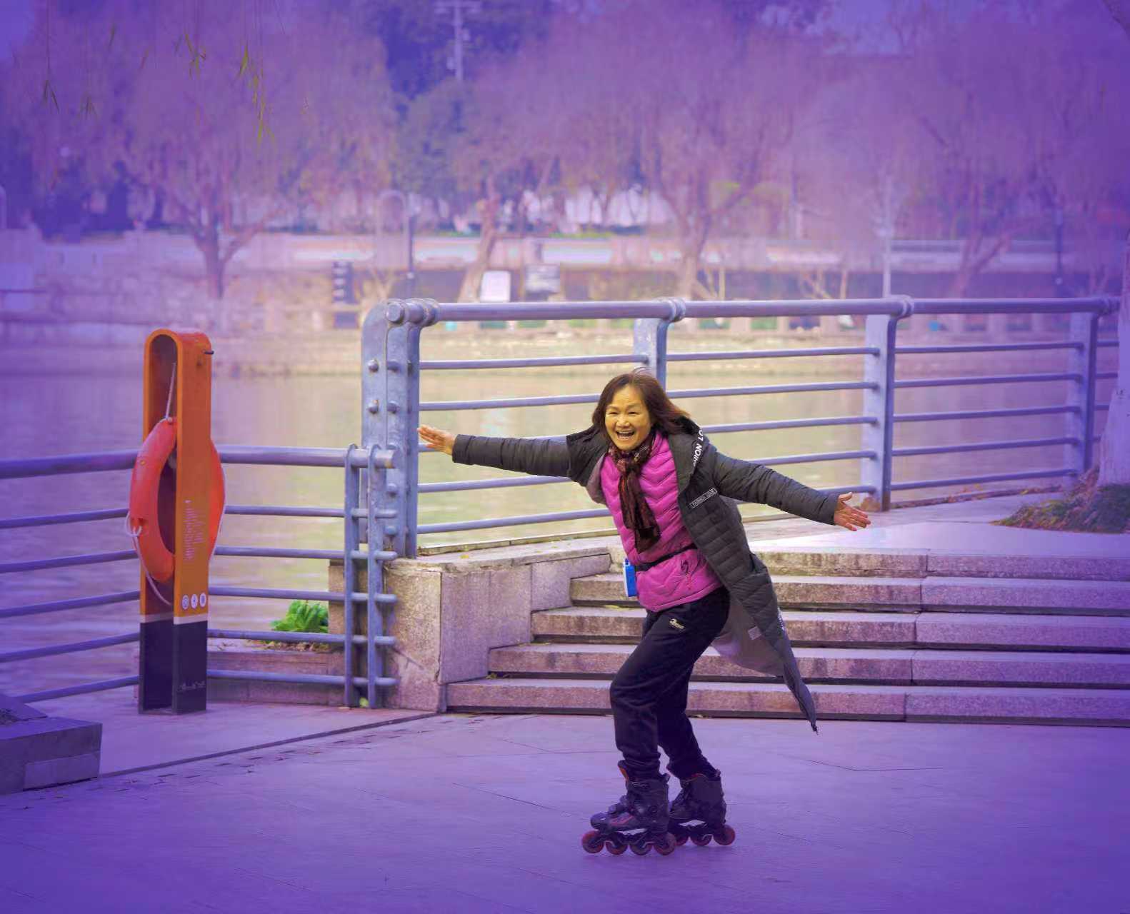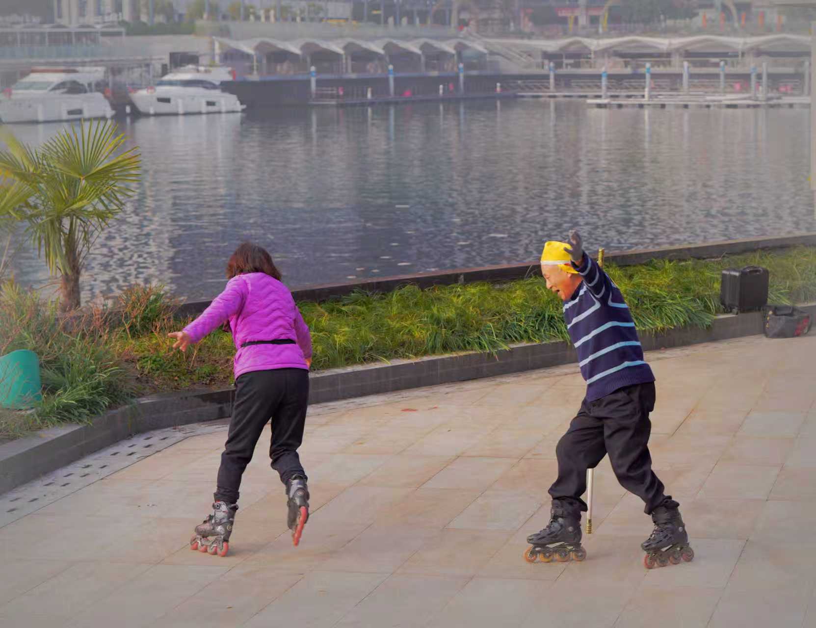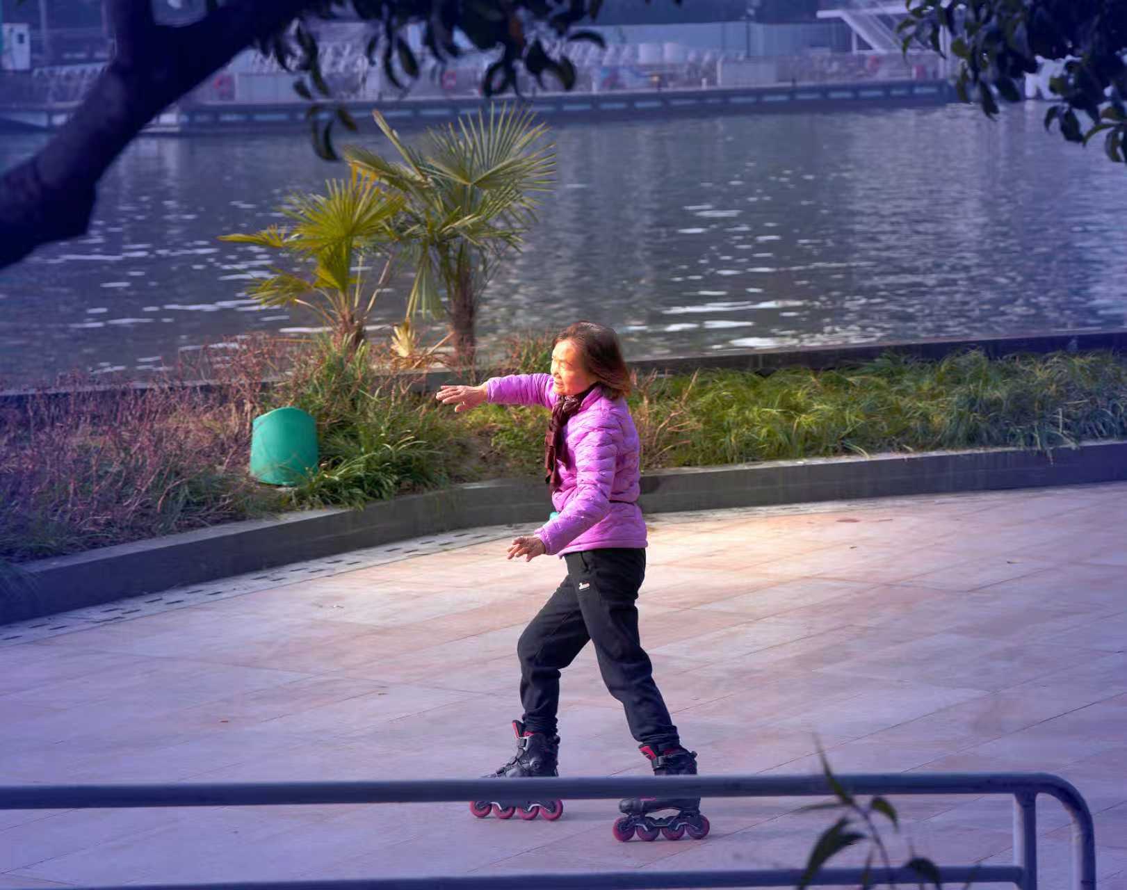 杭州大运河畔西湖文化广场文体健身人之八: 大运河畔中北桥墩下方空广地域,清晨常见有轮滑、舞剑、太极健身训练市民,也有吹奏西洋乐器训练者。了解皆以离退休老同志为主,那处似乎已成为吹拉弹唱、健身训练全能人才展示地,皆被吸引到此大运河桥墩下河畔。 对此类自发形成丰富多彩市民文化活动场景,恰好符合号称“文化广场”的生态特性,也成为杭州文化艺术大省特色氛围亮点。希望相关管理部门因地制宜~从引领群众文艺立足,辅助培养发展保护好此类特色文艺角!(2026.1.25前拍摄)