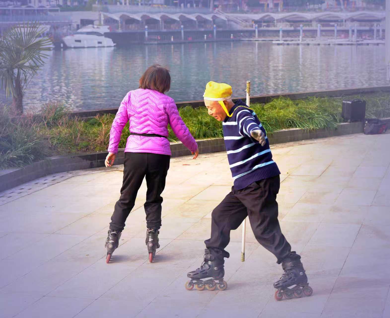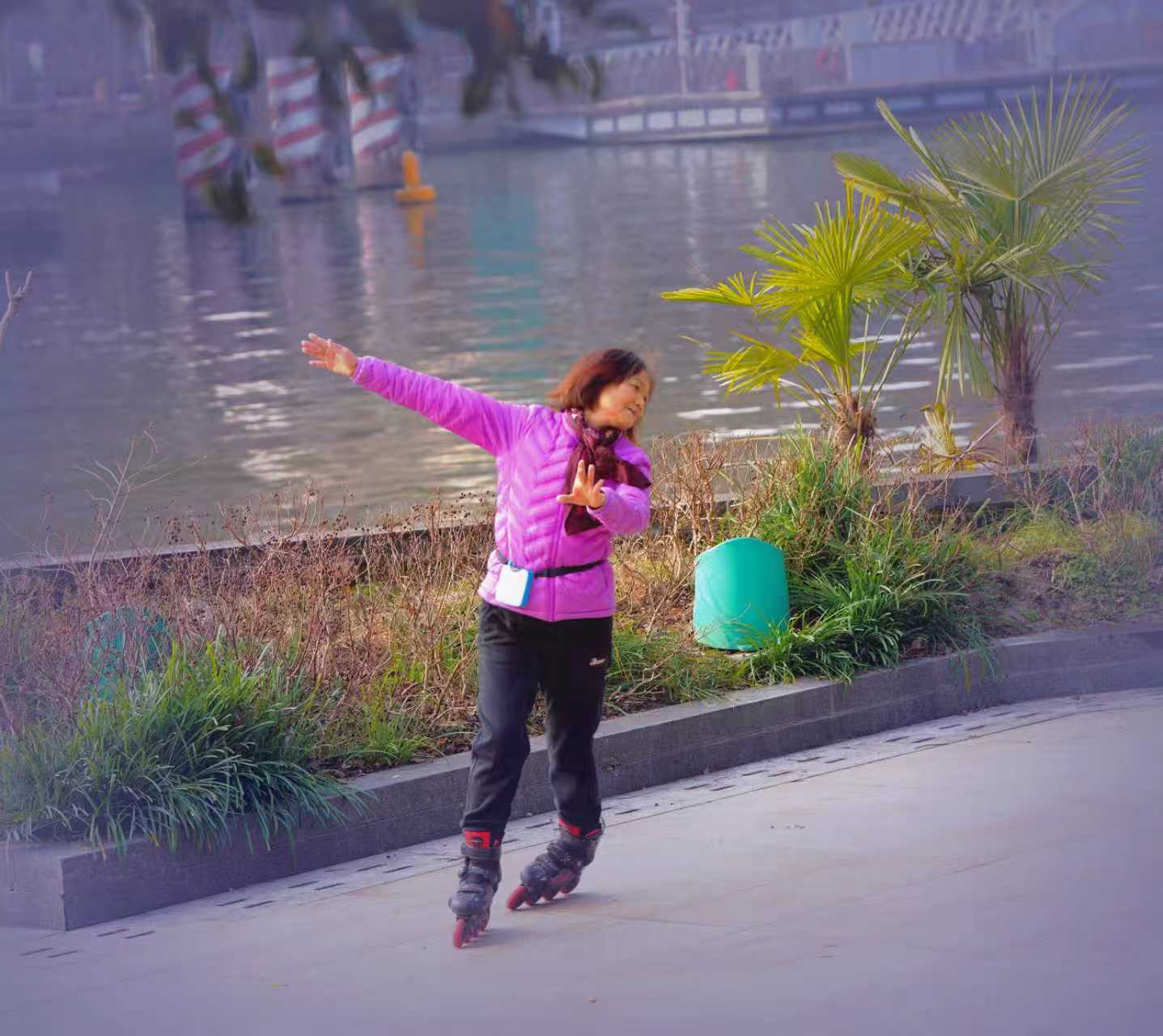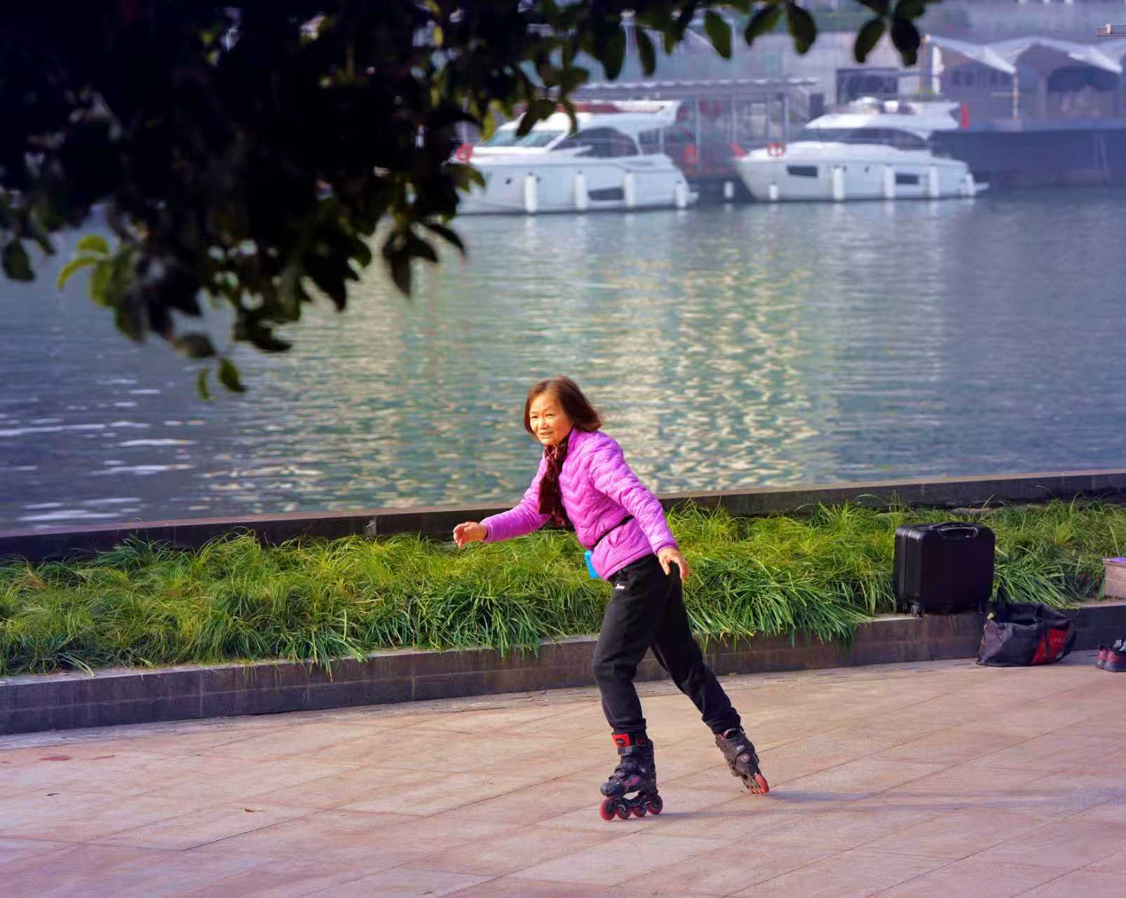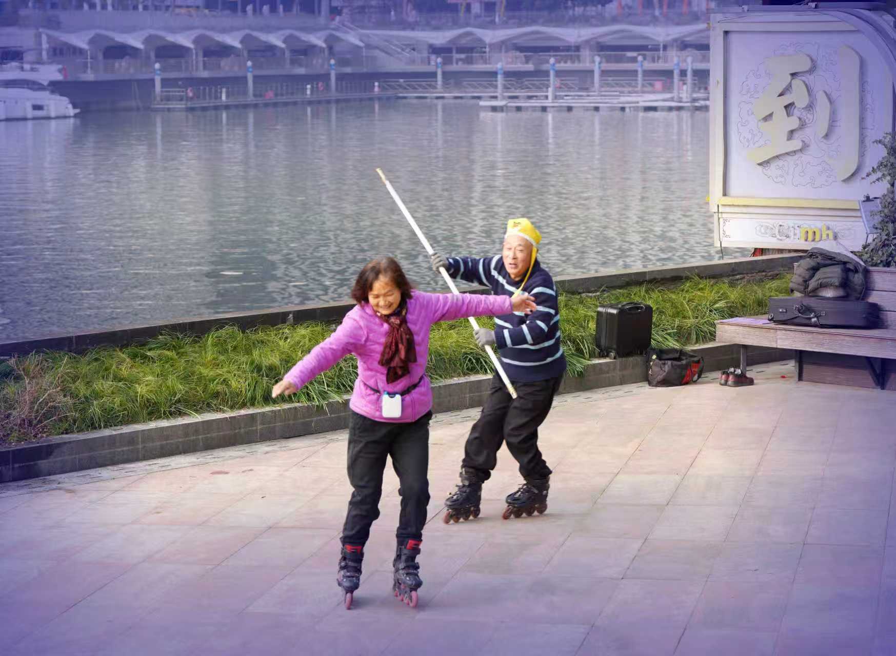 杭州大运河畔西湖文化广场文体健身人之八: 大运河畔中北桥墩下方空广地域,清晨常见有轮滑、舞剑、太极健身训练市民,也有吹奏西洋乐器训练者。了解皆以离退休老同志为主,那处似乎已成为吹拉弹唱、健身训练全能人才展示地,皆被吸引到此大运河桥墩下河畔。 对此类自发形成丰富多彩市民文化活动场景,恰好符合号称“文化广场”的生态特性,也成为杭州文化艺术大省特色氛围亮点。希望相关管理部门因地制宜~从引领群众文艺立足,辅助培养发展保护好此类特色文艺角!(2026.1.25前拍摄)