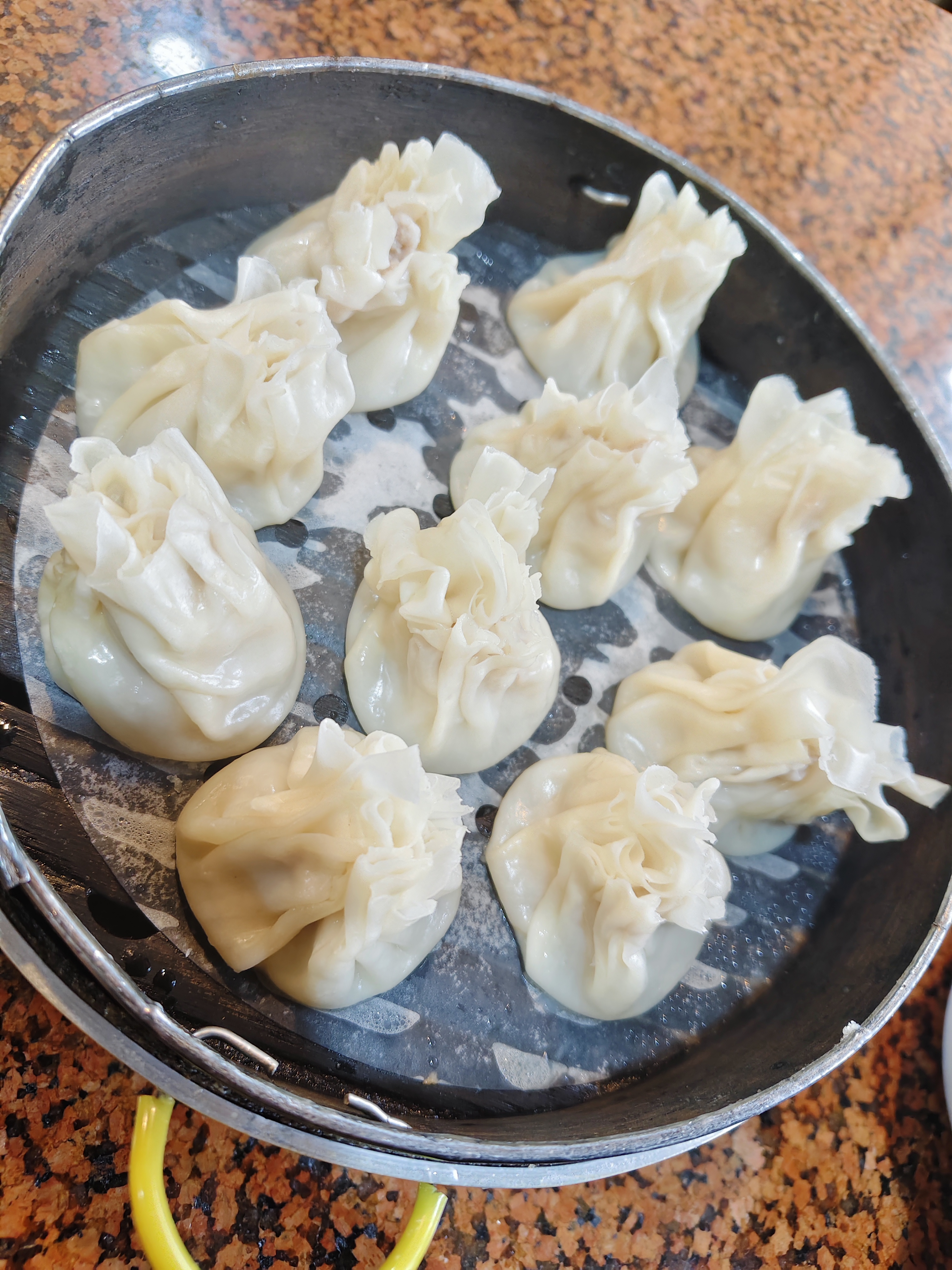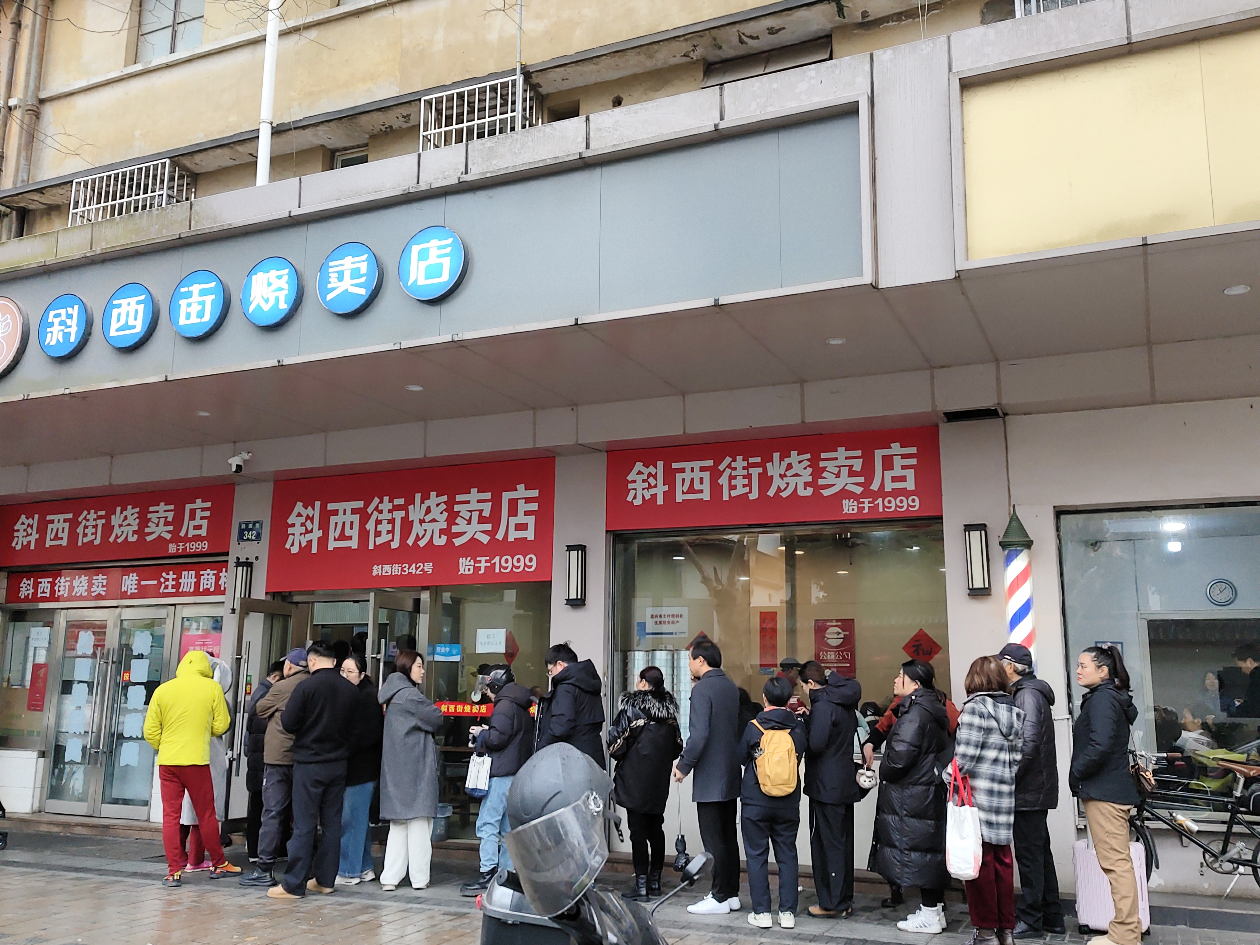 这家烧卖店的烧卖挺好吃,冬笋烧卖13元一笼,全家福粉丝汤17元。演员徐峥也来这里吃过烧卖。今天遇到来自西北的食客。他们是兰州人,三代人慕名而来。老爷子八十多岁了,老爷爷的孙女在上海工作。一家人从兰州开车到上海过年,路过嘉兴,特地来吃烧卖。排队要等半个多小时,女孩的父亲想去边上的烧卖店,边上两家都不用排队。我和他们说:“既然来了,还是吃这家吧。这里的烧卖现包的,皮薄,好吃。”后来他们没换地儿,继续等。他们说:“我们除夕都吃饺子。”很多嘉兴人早上吃烧卖或者汤圆。所以很多顾客都打包好几笼生的烧卖,明天早上吃。