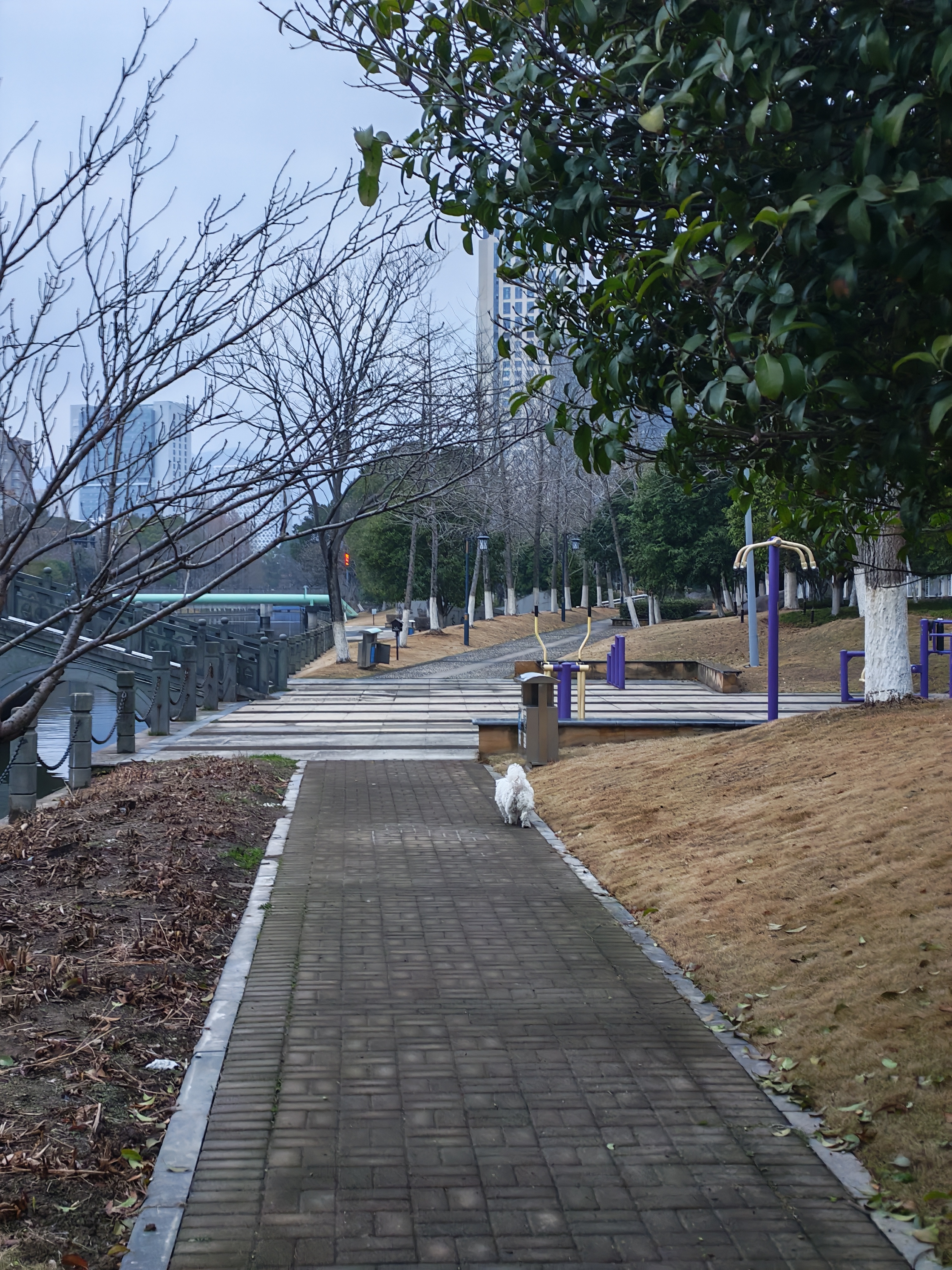 大年初一的清晨,整座城都还浸在昨夜的余温里。 路面干净得像被时光轻轻拂过,只有远处偶尔炸开的爆竹声,把空气里的寂静揉碎又拼合。 小狗的白绒在石板路上轻晃,像一团会走路的雪,替我踩过了无人问津的新年。