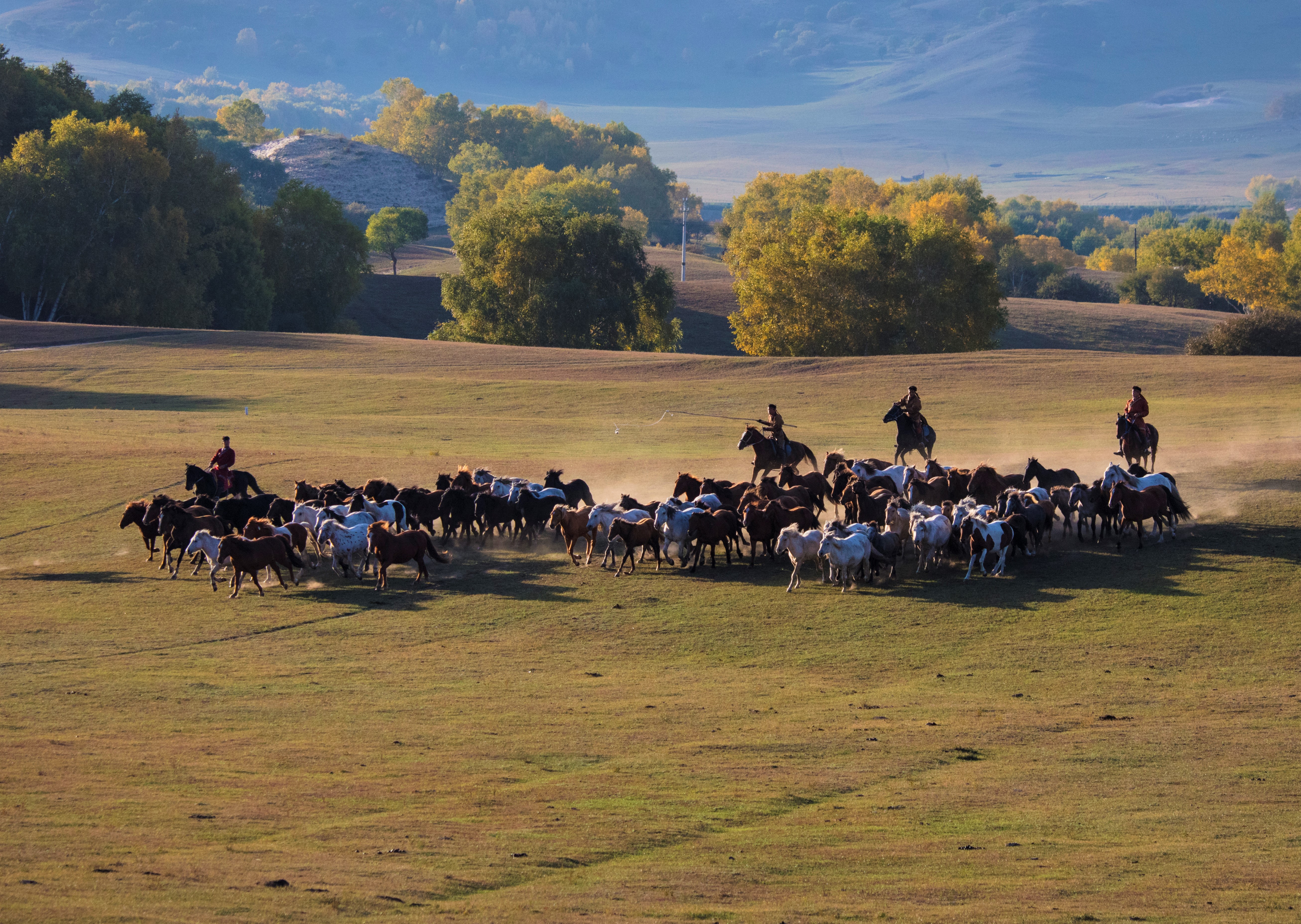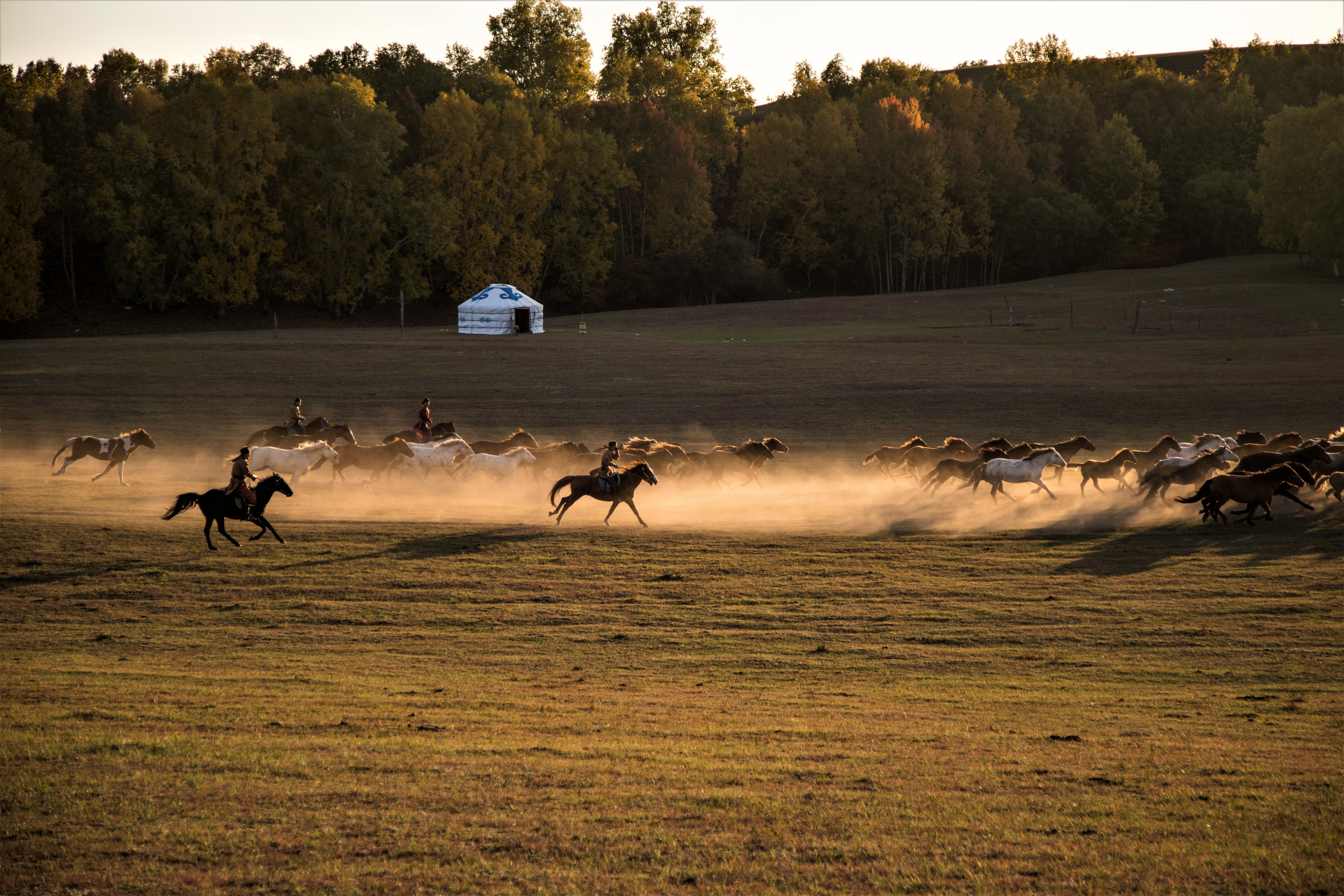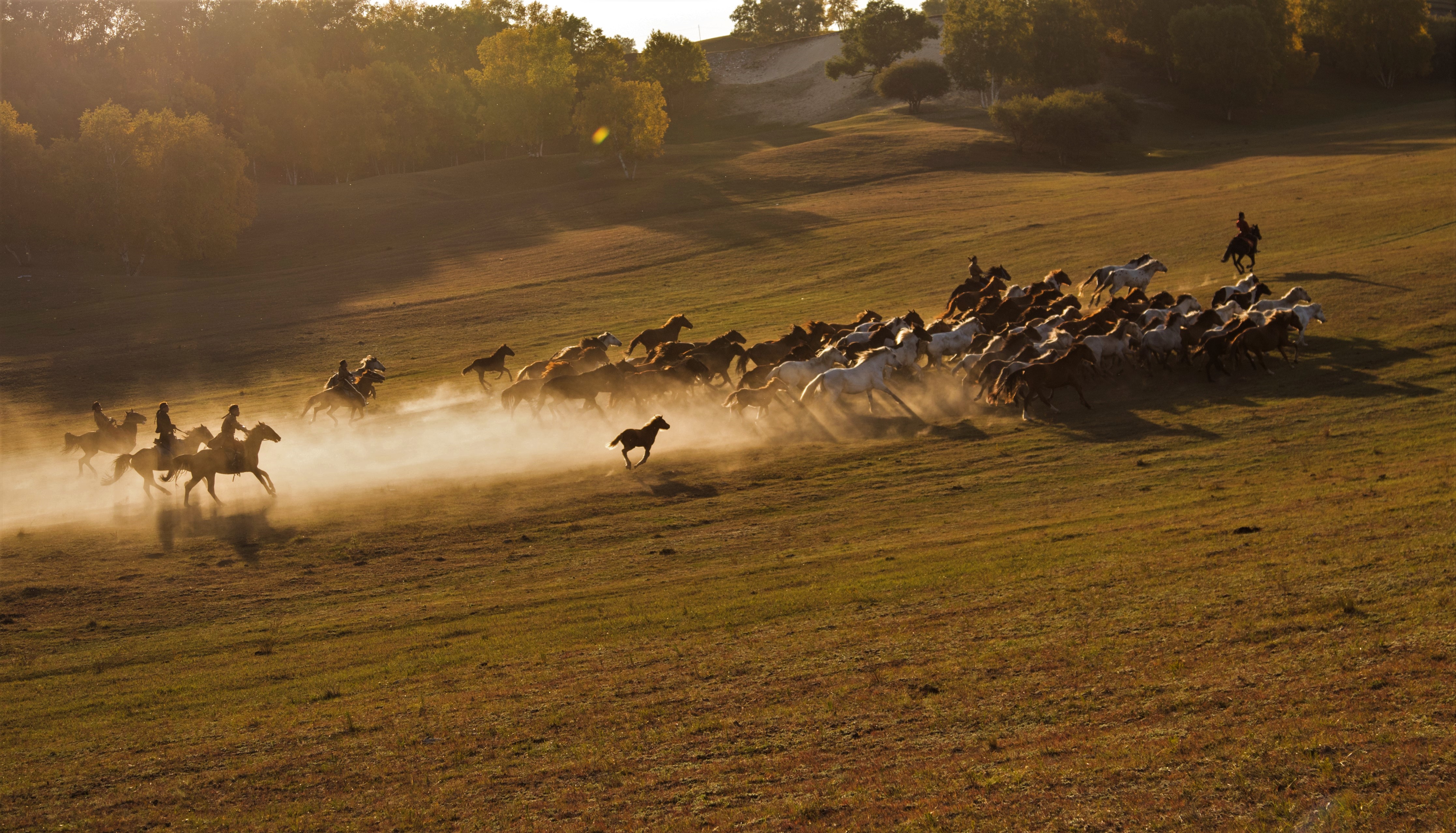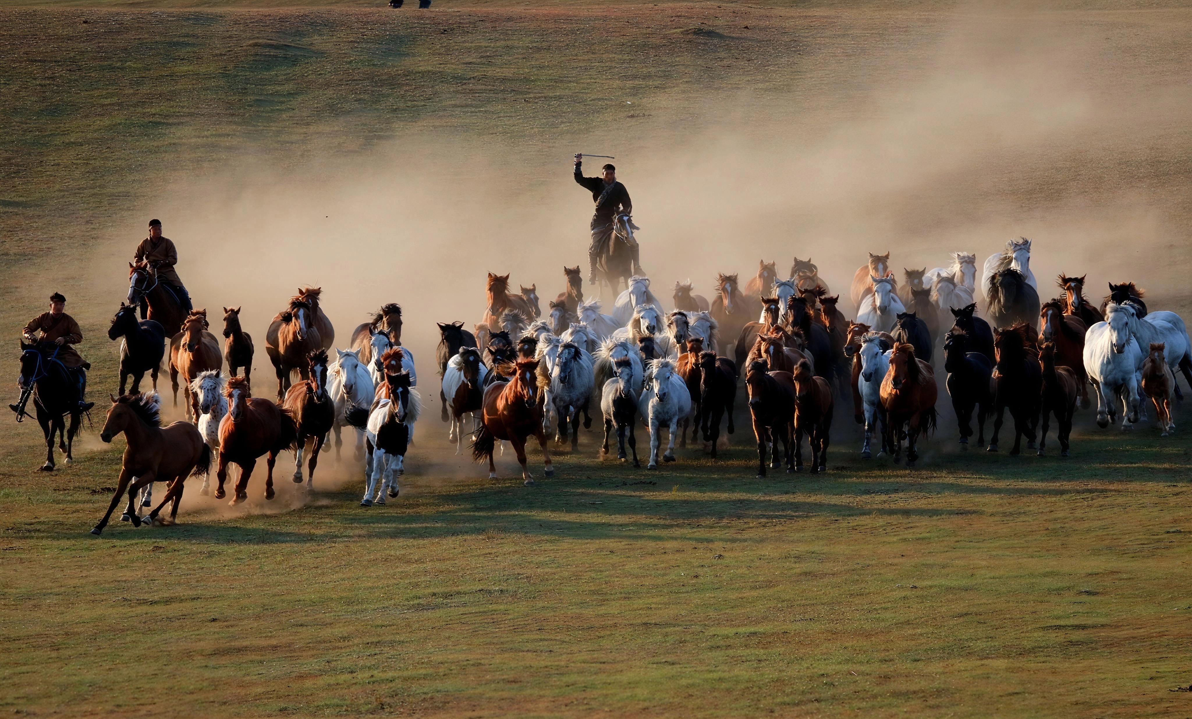 夕阳给坝上草原镀上金边,马群奔腾扬起尘雾,蒙古族骑手弯弓射箭,英姿飒爽。镜头追着风与自由,咔嚓定格这幕草原史诗~