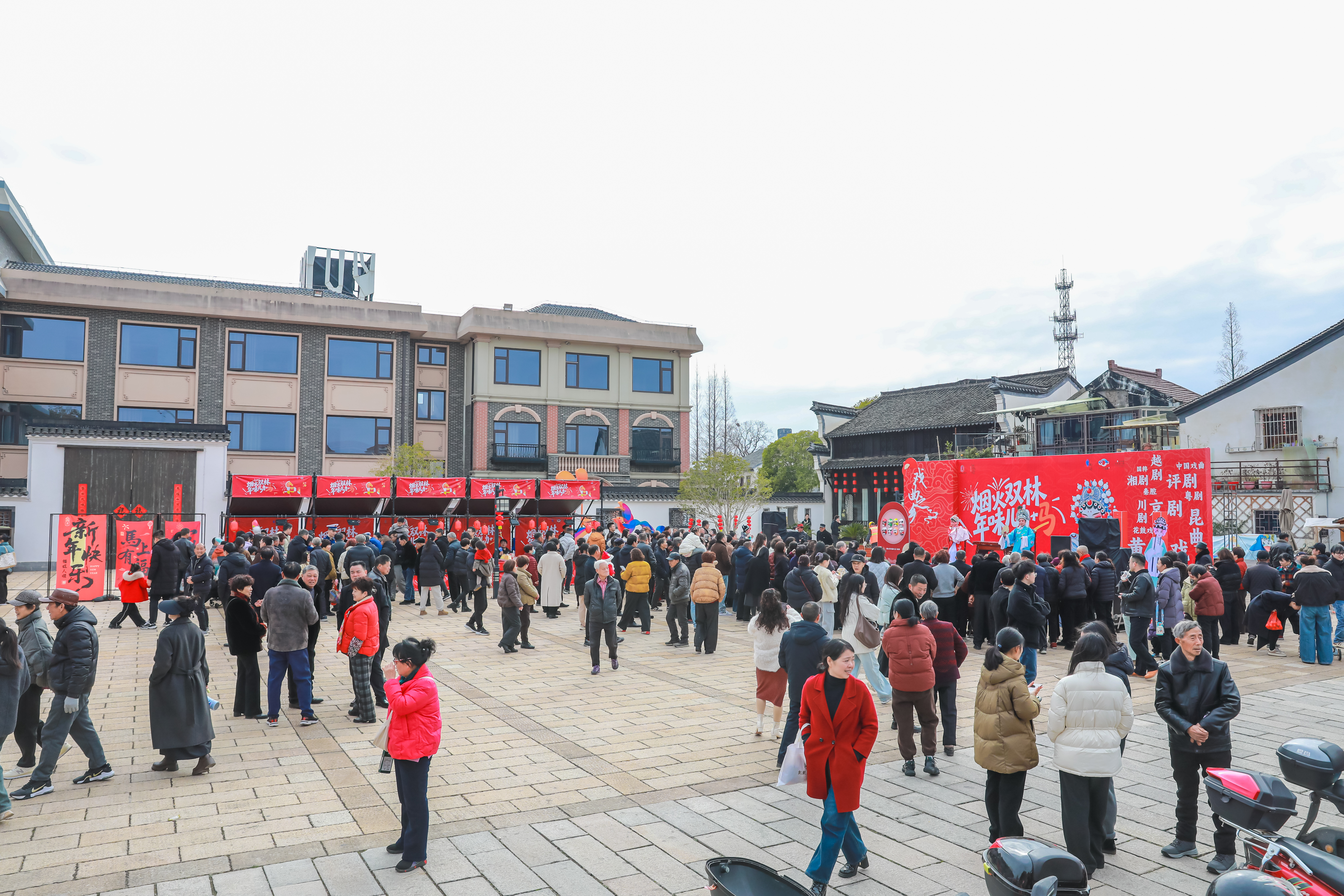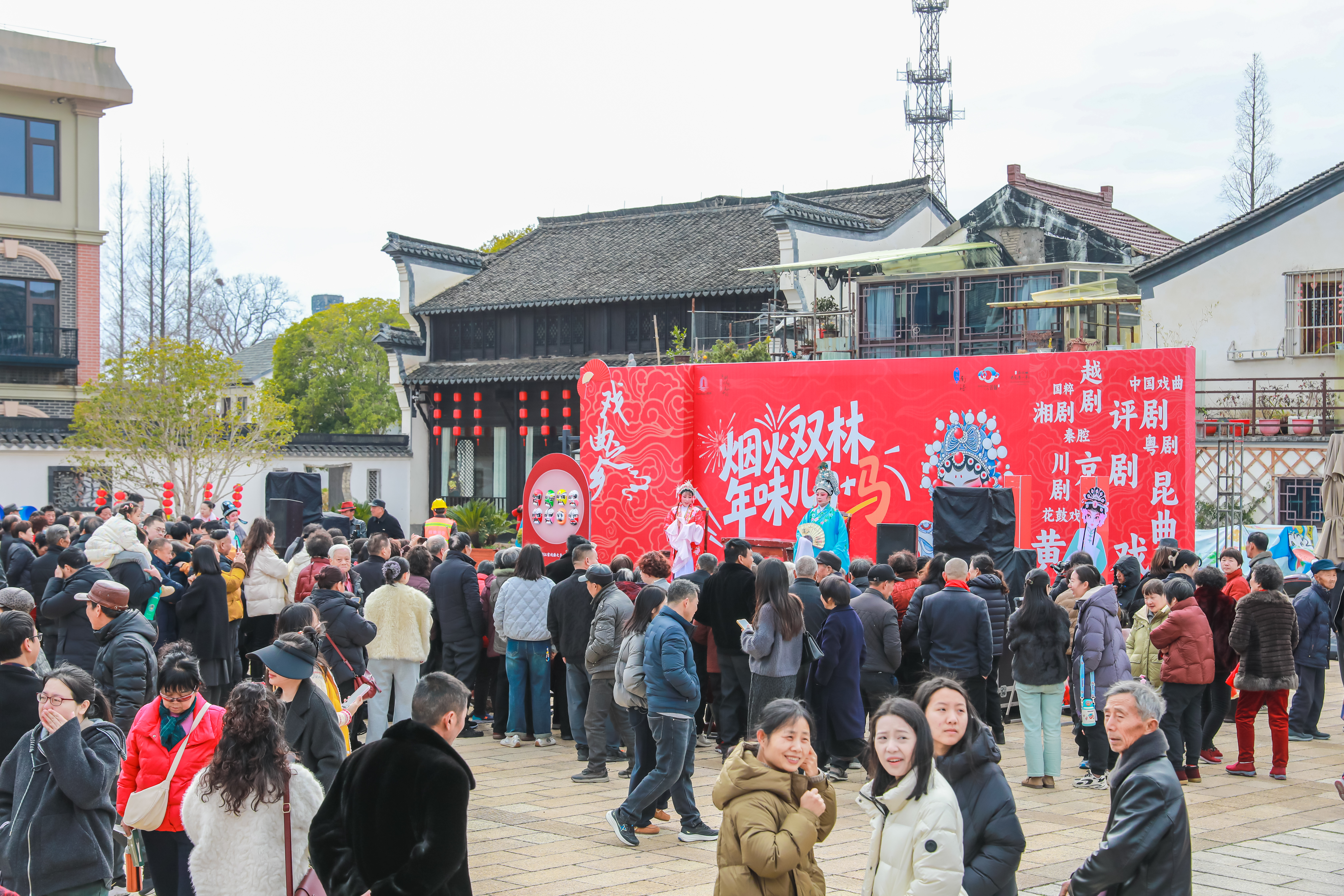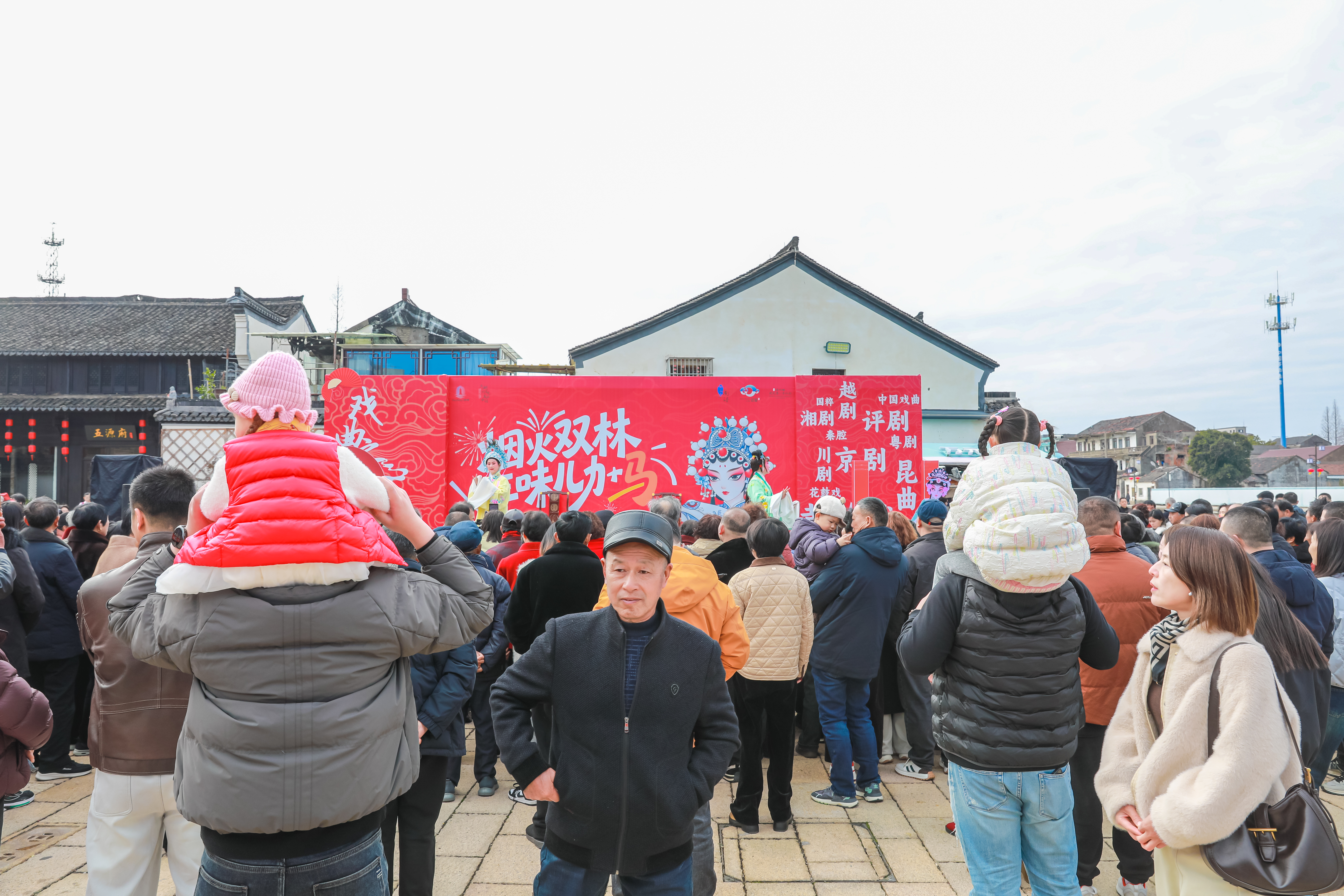 浙江湖州:看大戏,过大年 2026年2月17日,大年初一,位于浙江省湖州市南浔区双林古镇,来自全国各地的游客齐聚万元广场,欣赏双林戏曲文化,现场人潮涌动,热闹非凡。