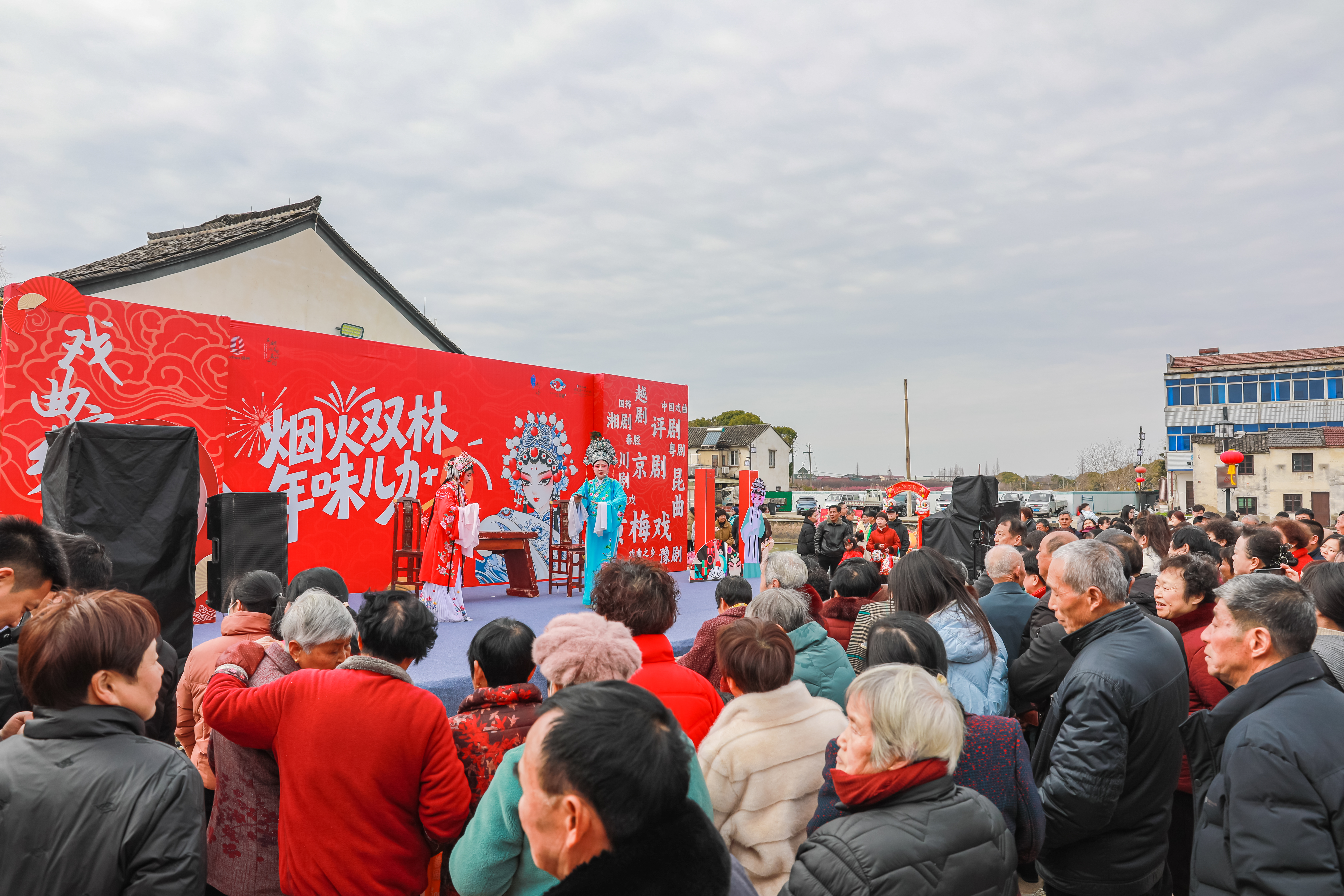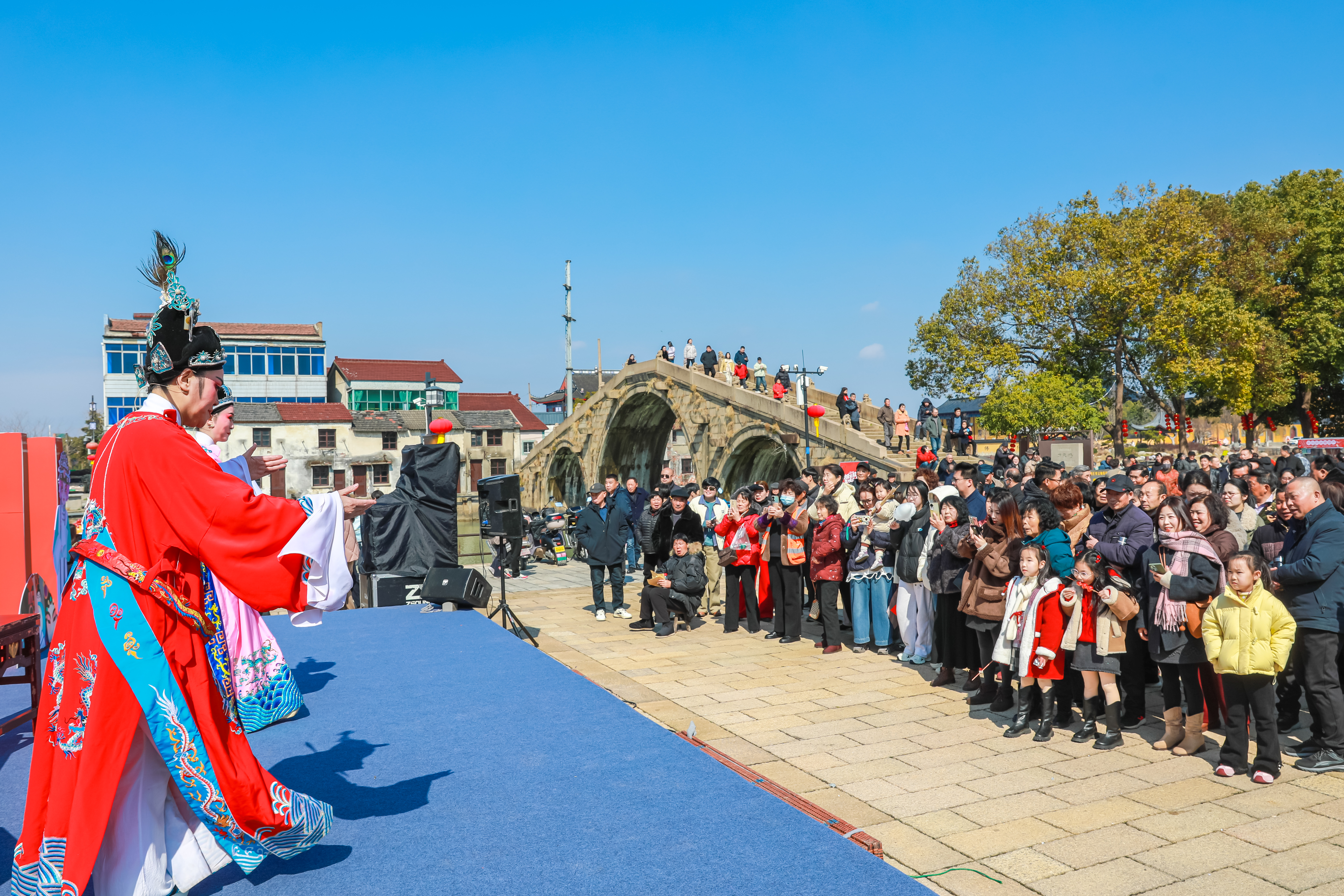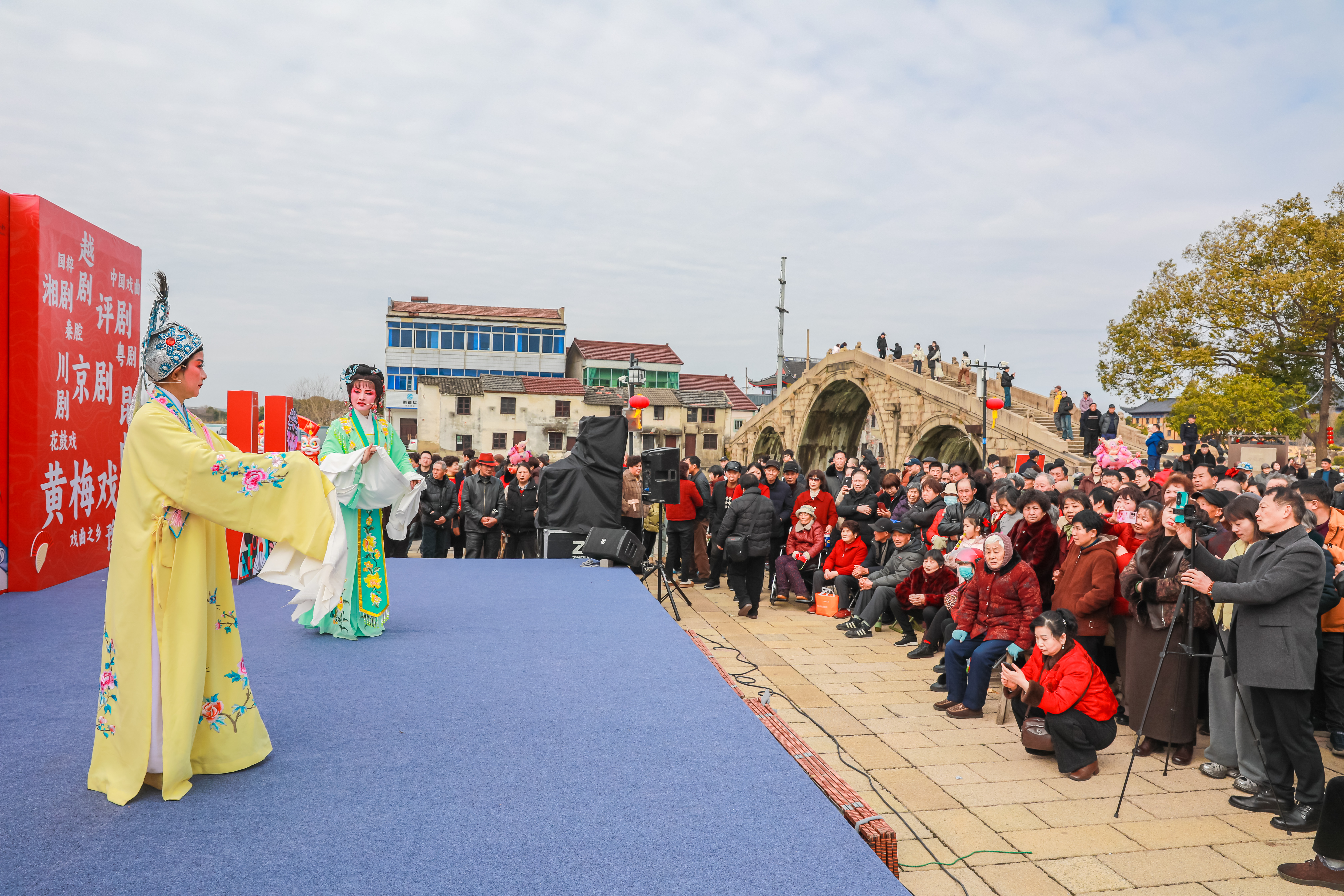 浙江湖州:看大戏,过大年 2026年2月17日,大年初一,位于浙江省湖州市南浔区双林古镇,来自全国各地的游客齐聚万元广场,欣赏双林戏曲文化,现场人潮涌动,热闹非凡。