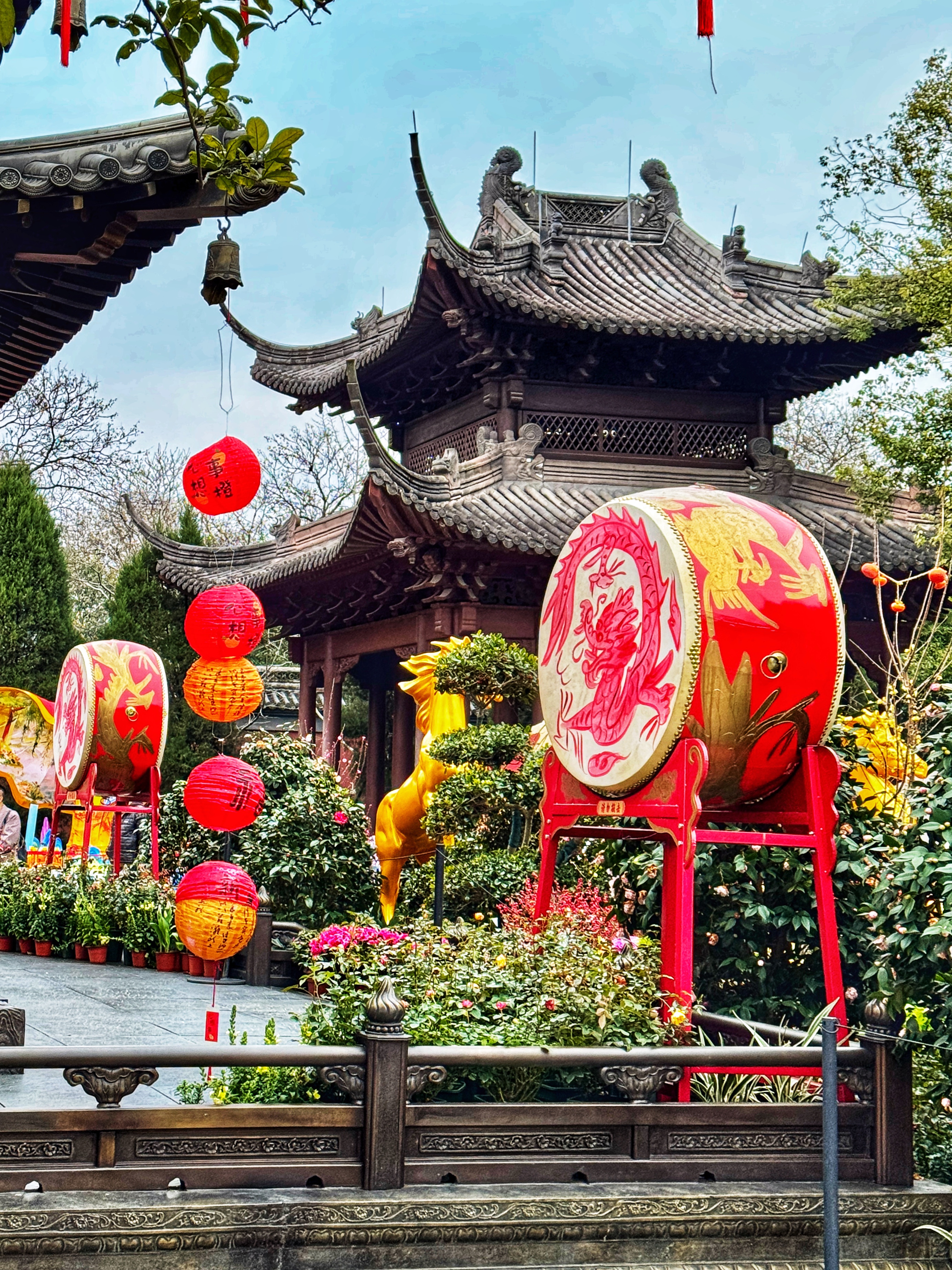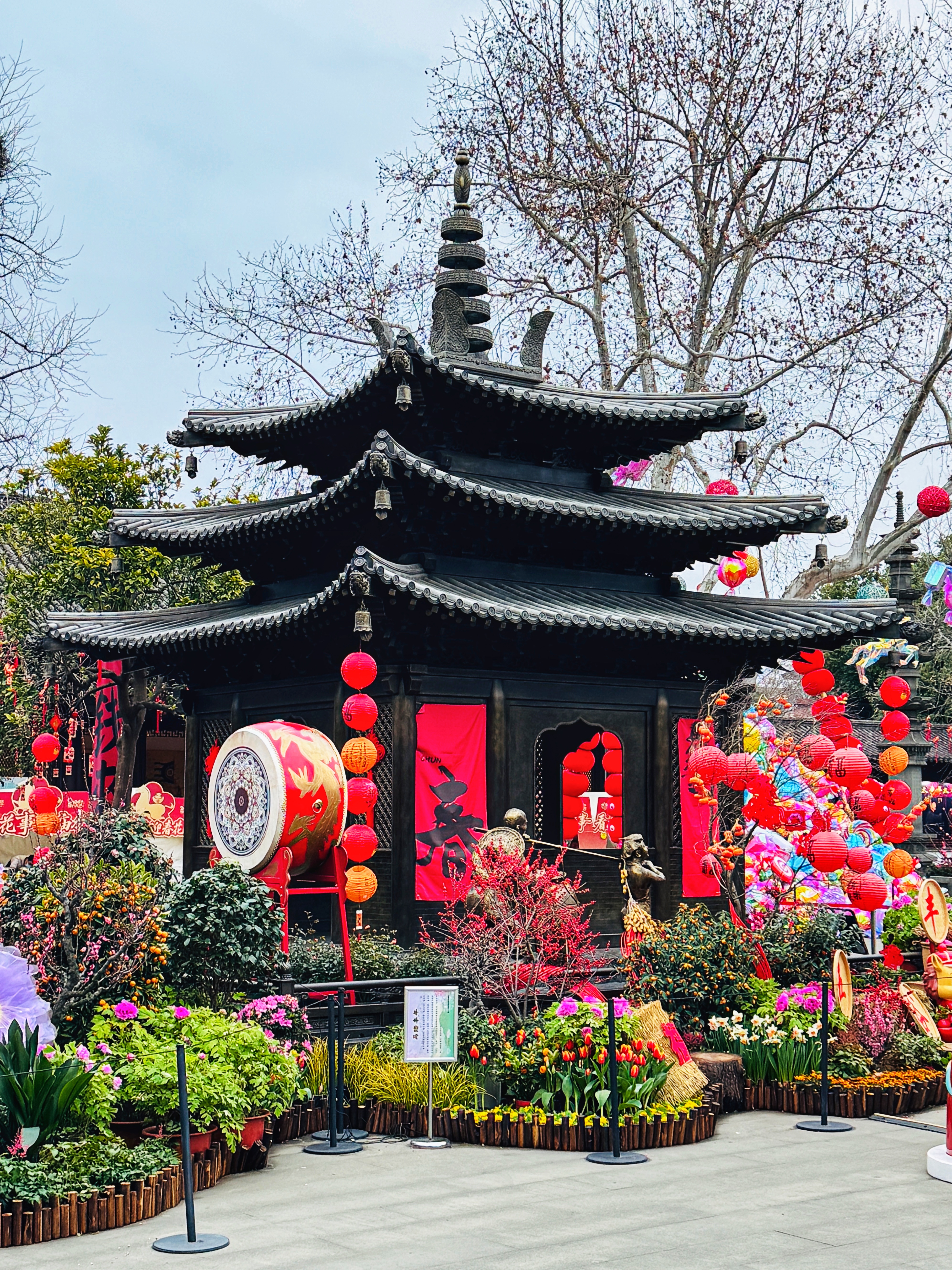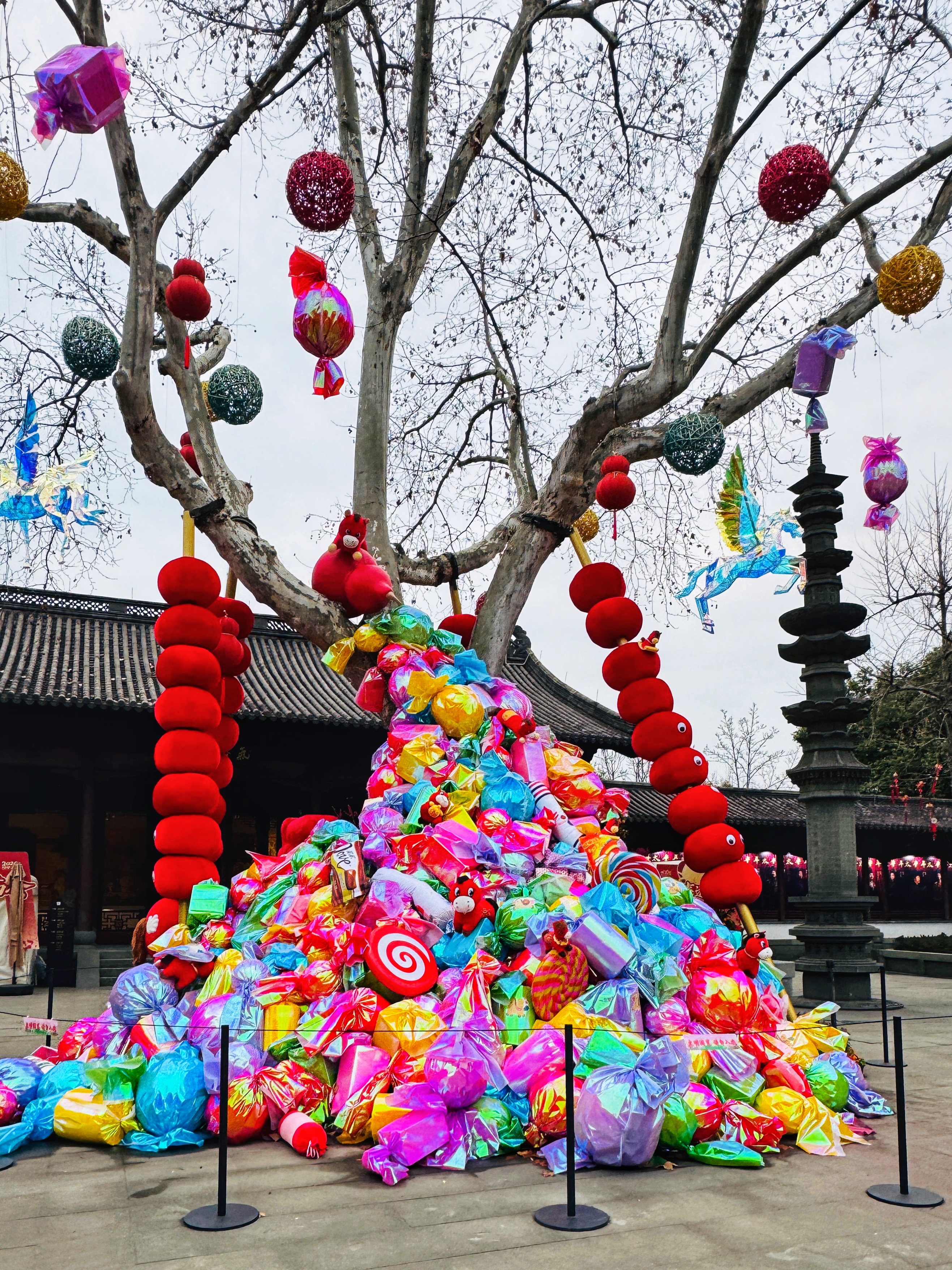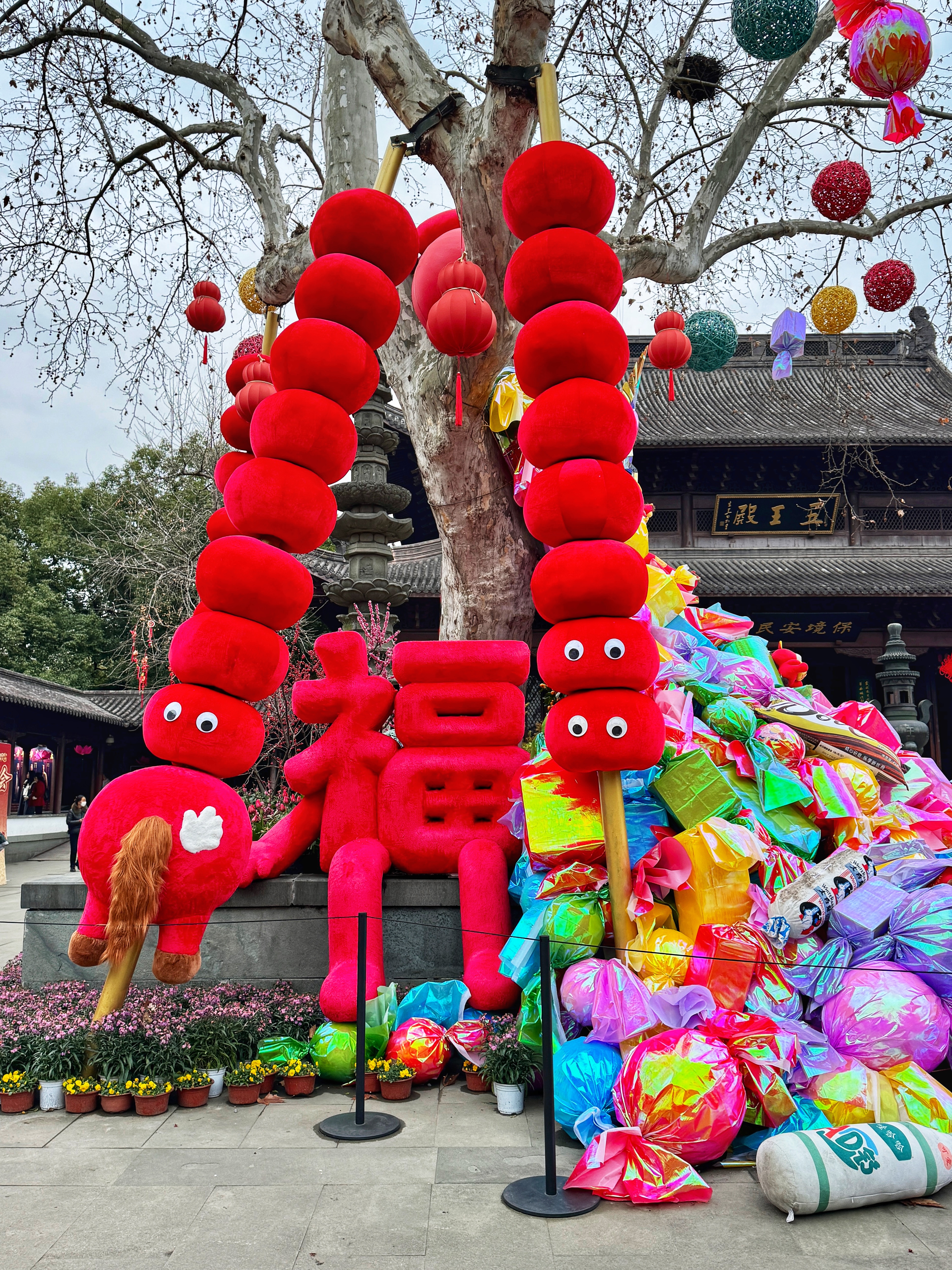 大年初一的杭州钱王祠的新春盛景,充满了宋韵年味与江南春气: 1. 门庭焕彩:五牌坊下“阳光彩虹小福马”迎宾,祠外吉狮献瑞、春联红灯高挂;《跃马花间》造景金鞍映繁花,地面元宝地贴讨彩头,游人接踵,汉服身影随处可见。 2. 红墙梅香:网红红墙下蜡梅、白梅疏影横斜,暗香浮动;阅礼堂牡丹缀廊,铜献殿“马踏丰年”布景配“糖福禄”糖果瀑布,童趣与古雅相映;室内迎春花展聚杜鹃、热带兰等近60种冬花,“大鱼海棠”纱艺金鱼似游花月间。 3. 雅俗共欢:《太平年》特展复刻钱王议事、纳土归宋场景,戏服道具可赏;越剧、非遗戏法每日上演,香火轻绕古建,人声、乐声、花香交织成最浓的新春氛围。 钱王祠下春风劲, 跃马钱塘福满门。