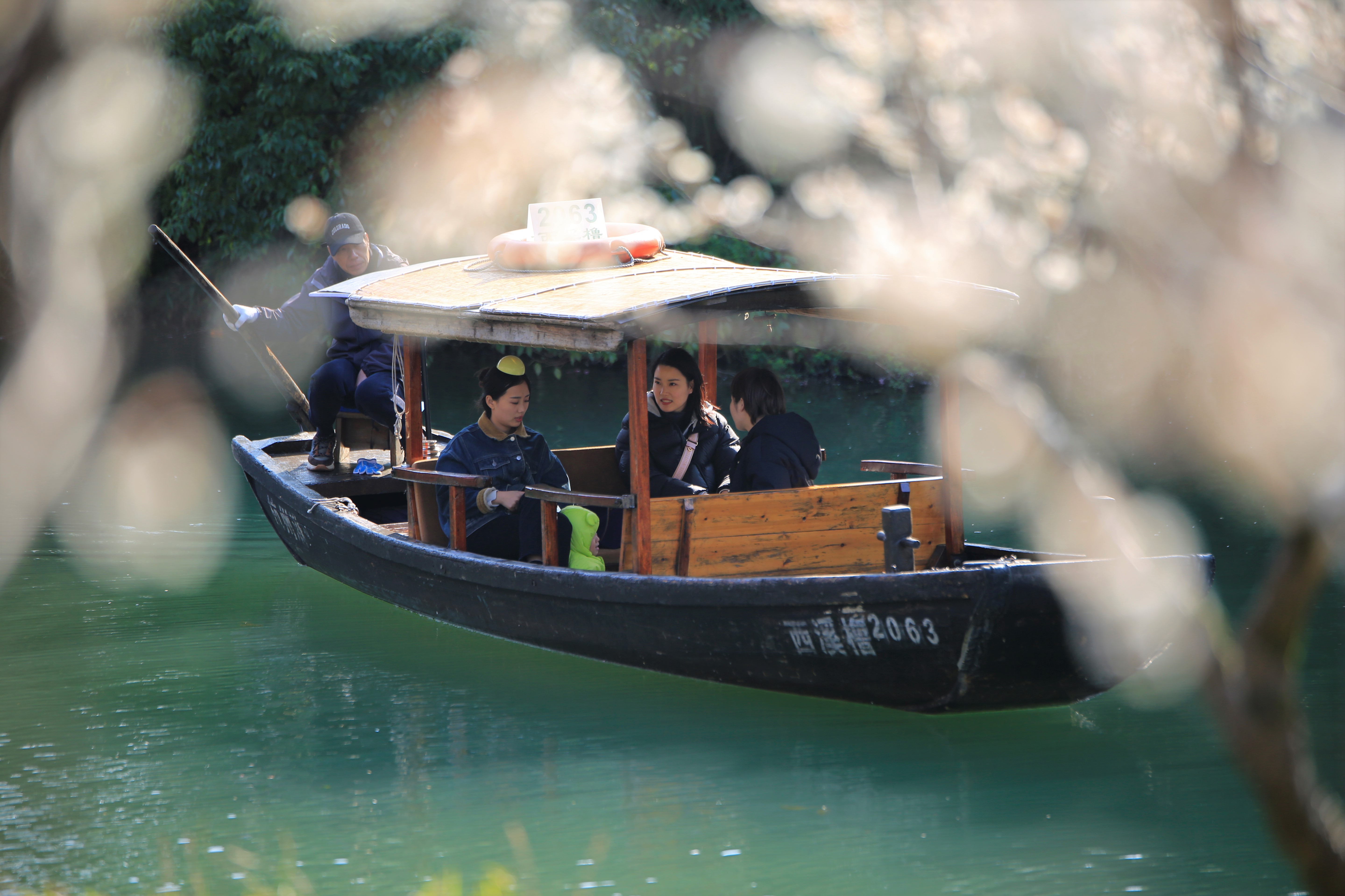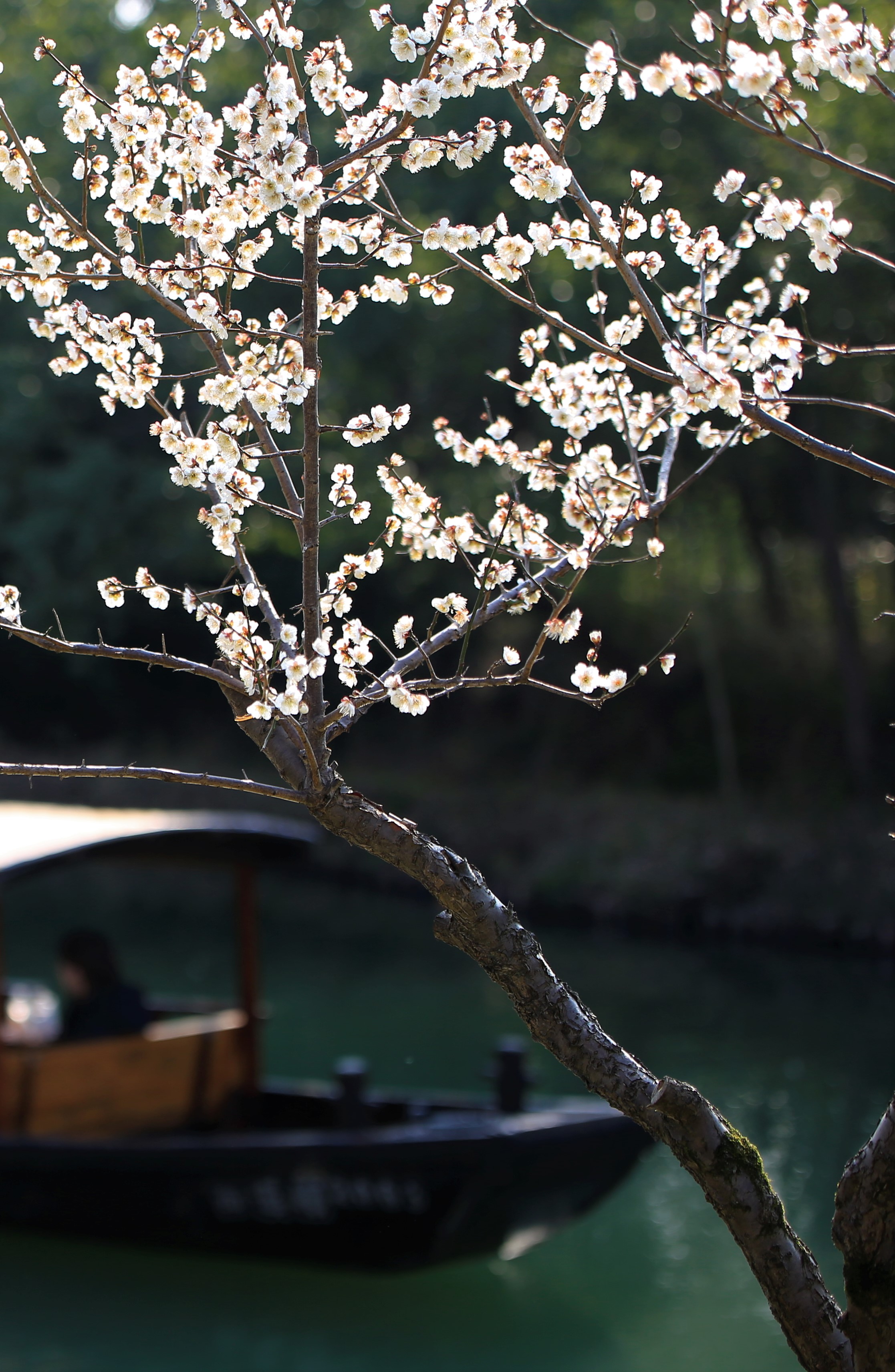 西溪橹声轻,白梅红梅次第开。花枝斜映碧水,小船划开一池倒影。花瓣浮于水面,随波轻漾,如诗如画。春在枝头,也在镜头里——静谧江南,诗意栖居。