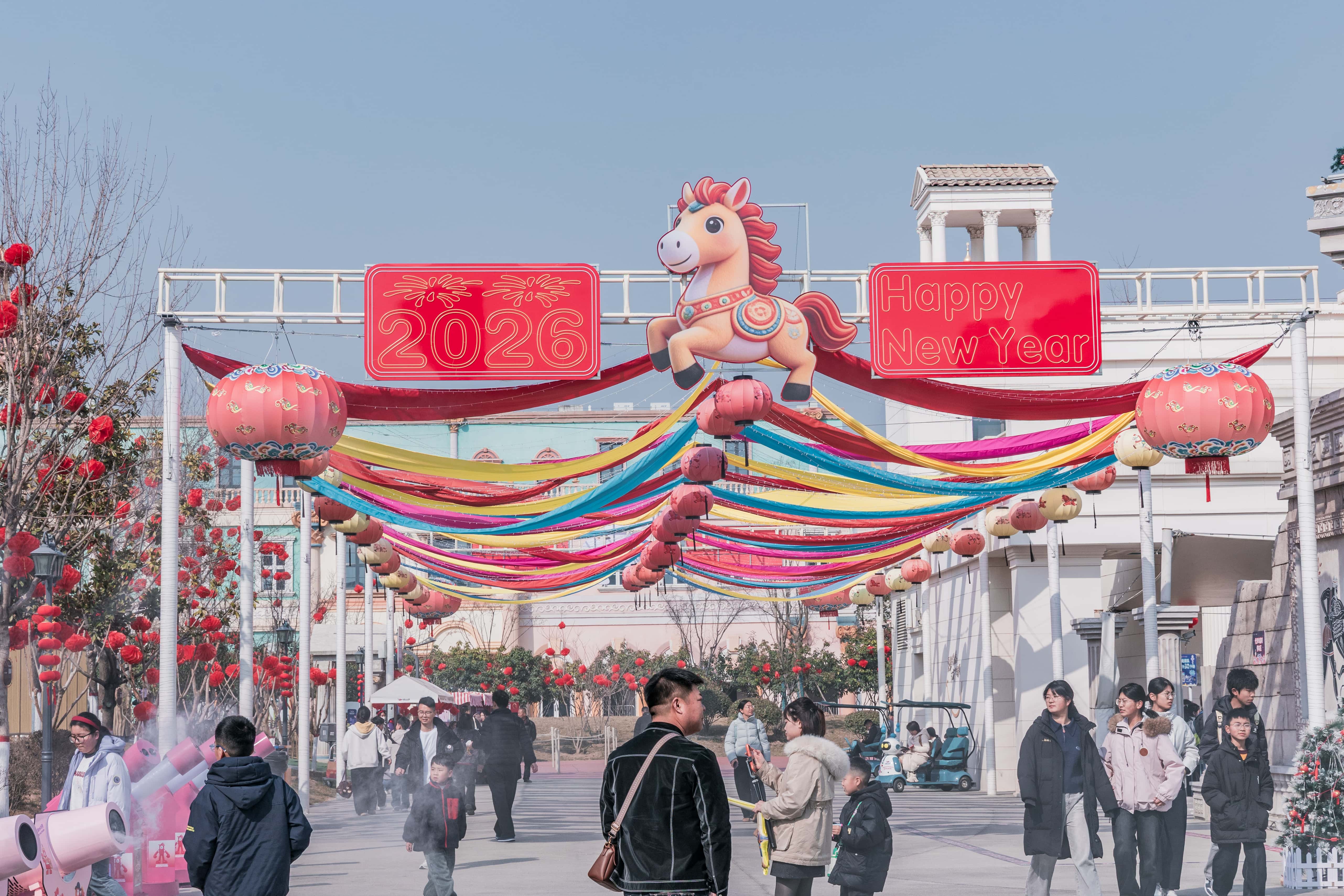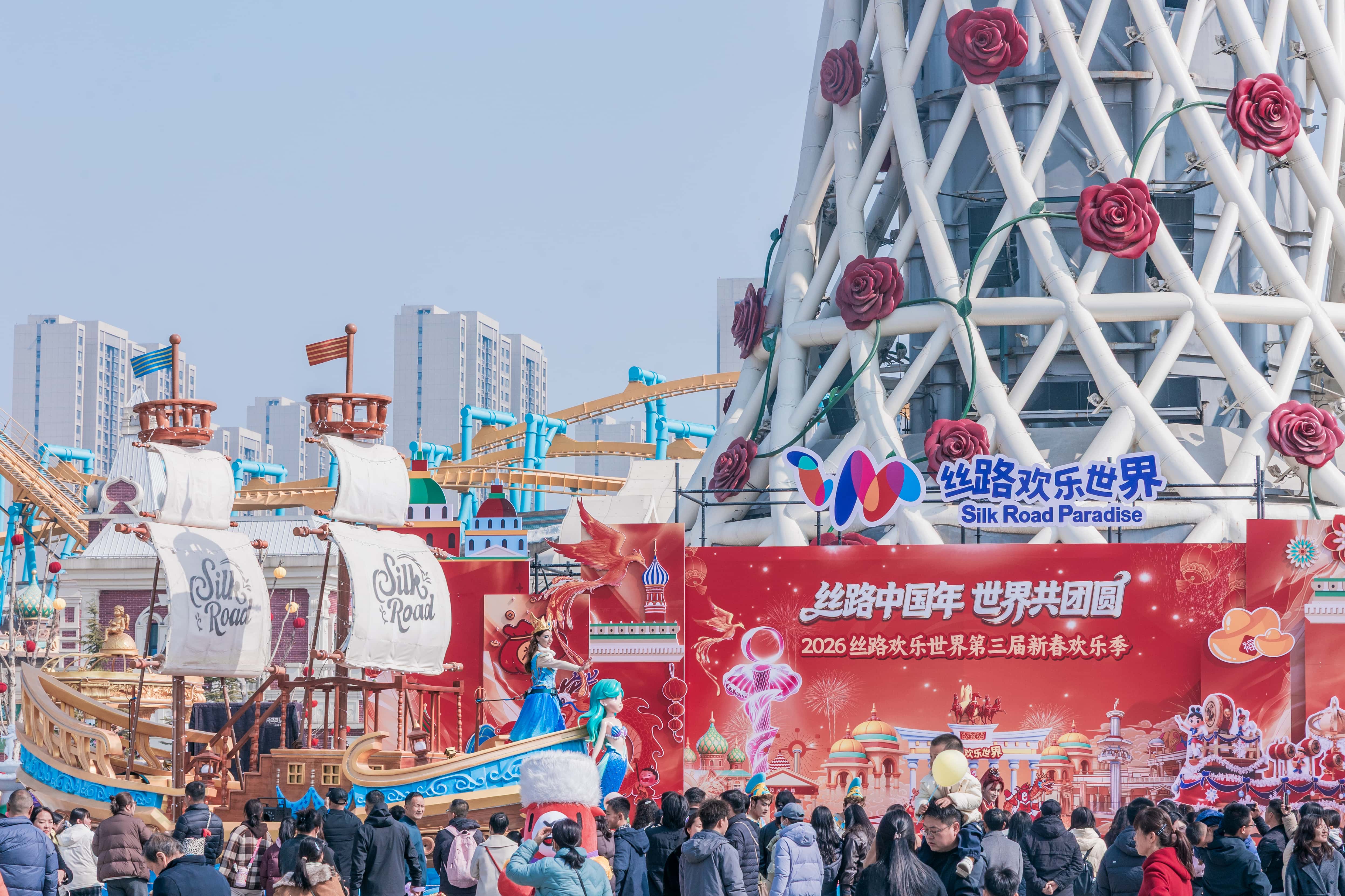马年到,属马🐎的朋友们,请接受丝路欢乐世界送出的马年专属福利,邀您免费入园啦! #属马免费游丝路# 马年开端,丝路欢乐世界“丝路中国年·世界共团圆”第三届新春欢乐季盛大启幕!园区被浓浓的年味和国际氛围完整包裹,外籍演员巡游、舞龙、丝路驼队一路同行,文明碰撞超有画面感。有《冰雪奇缘》《胡桃夹子》儿童剧,小朋友全程兴奋;有年轻人挑战的“过山车”“海盗船”,越战越勇;还有“五福驼”NPC沿街送“福”,意外领到新春小惊喜。 傍晚的非遗火龙钢花真的震撼,漫天金雨超壮观,篝火晚会一开场,全场跟着嗨起来,氛围感直接拉满。从白天玩到黑夜,太多娱乐项目,玩不完,真的玩不完。全家出游、全龄畅玩,共同沉浸在这场充满国际风情的中国年味盛宴中!