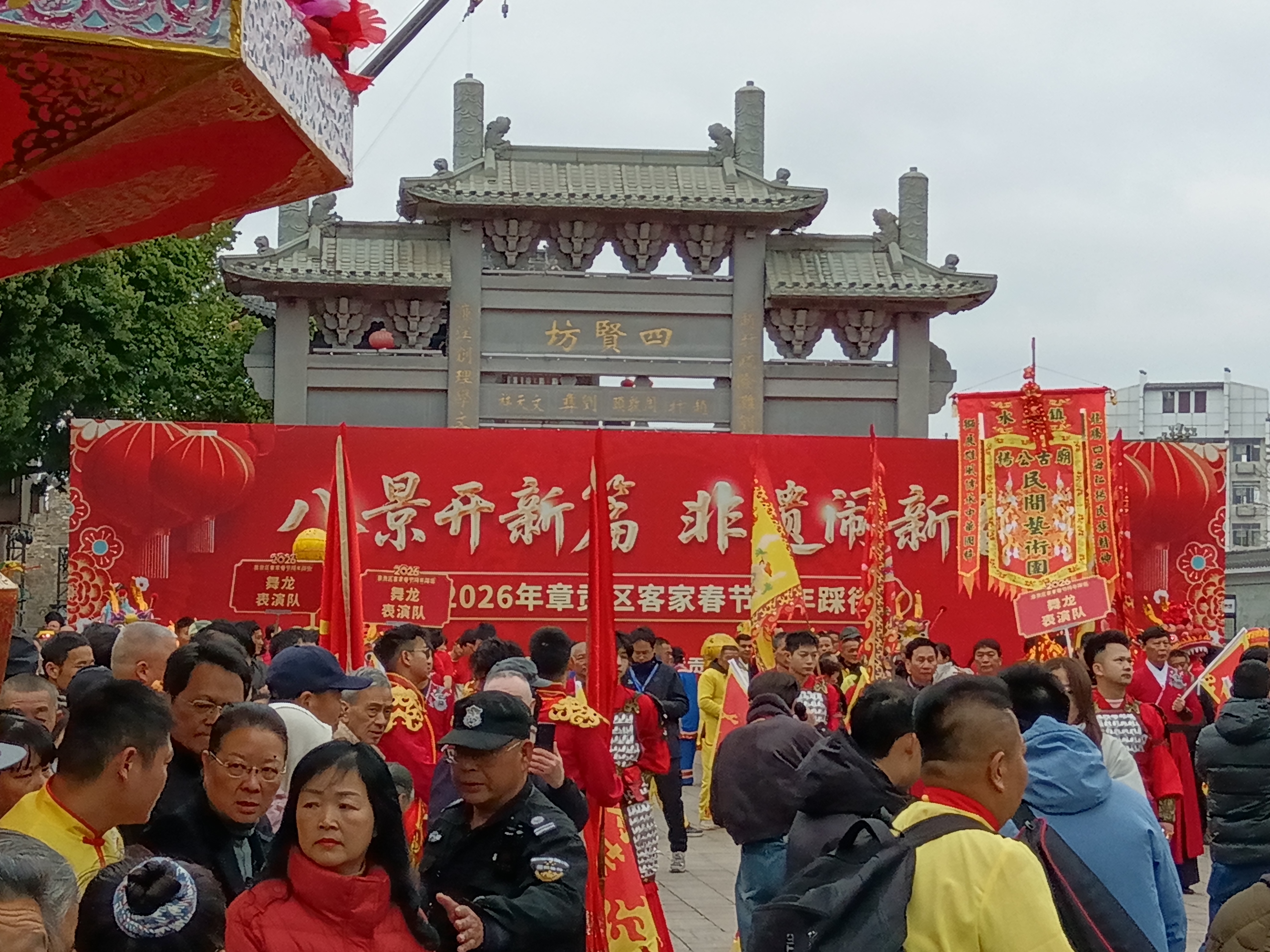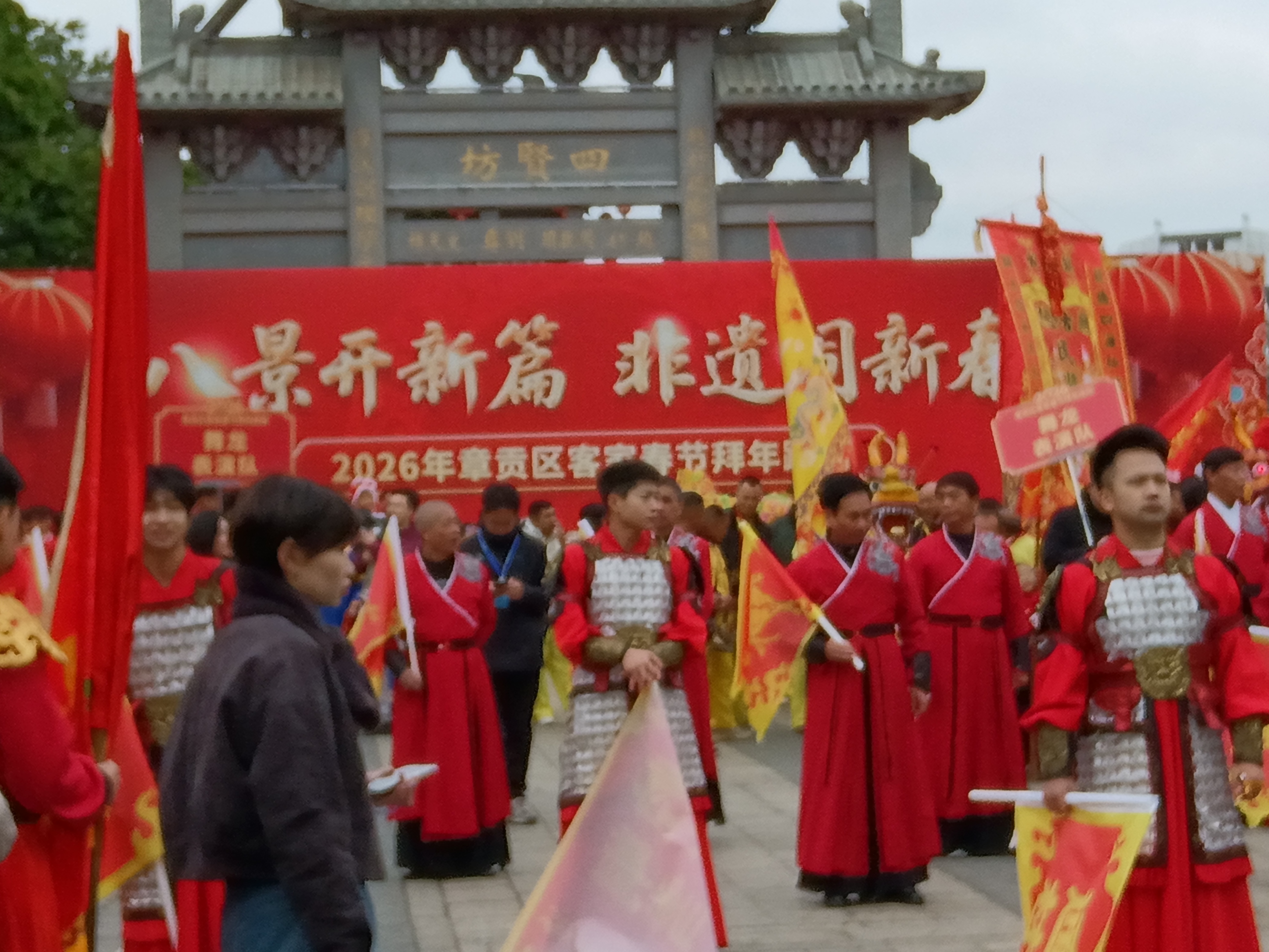 四贤坊前闹新年,章贡路口舞灯龙!郁孤台下春潮涌,建国路成步行街。