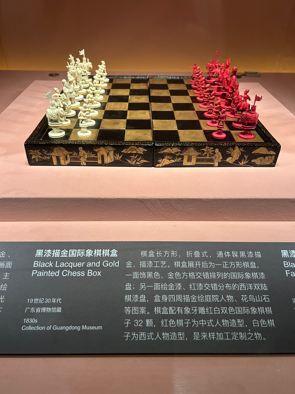 珠江畔,粤博静卧。剔红海棠瓶里,琴棋书画悄然流转;黑漆描金棋盒上,中西人物对弈千年。象牙折扇轻展,花鸟山石跃然扇面。一馆藏尽东方雅韵,漆光流转处,是清代匠人的呼吸与心跳。