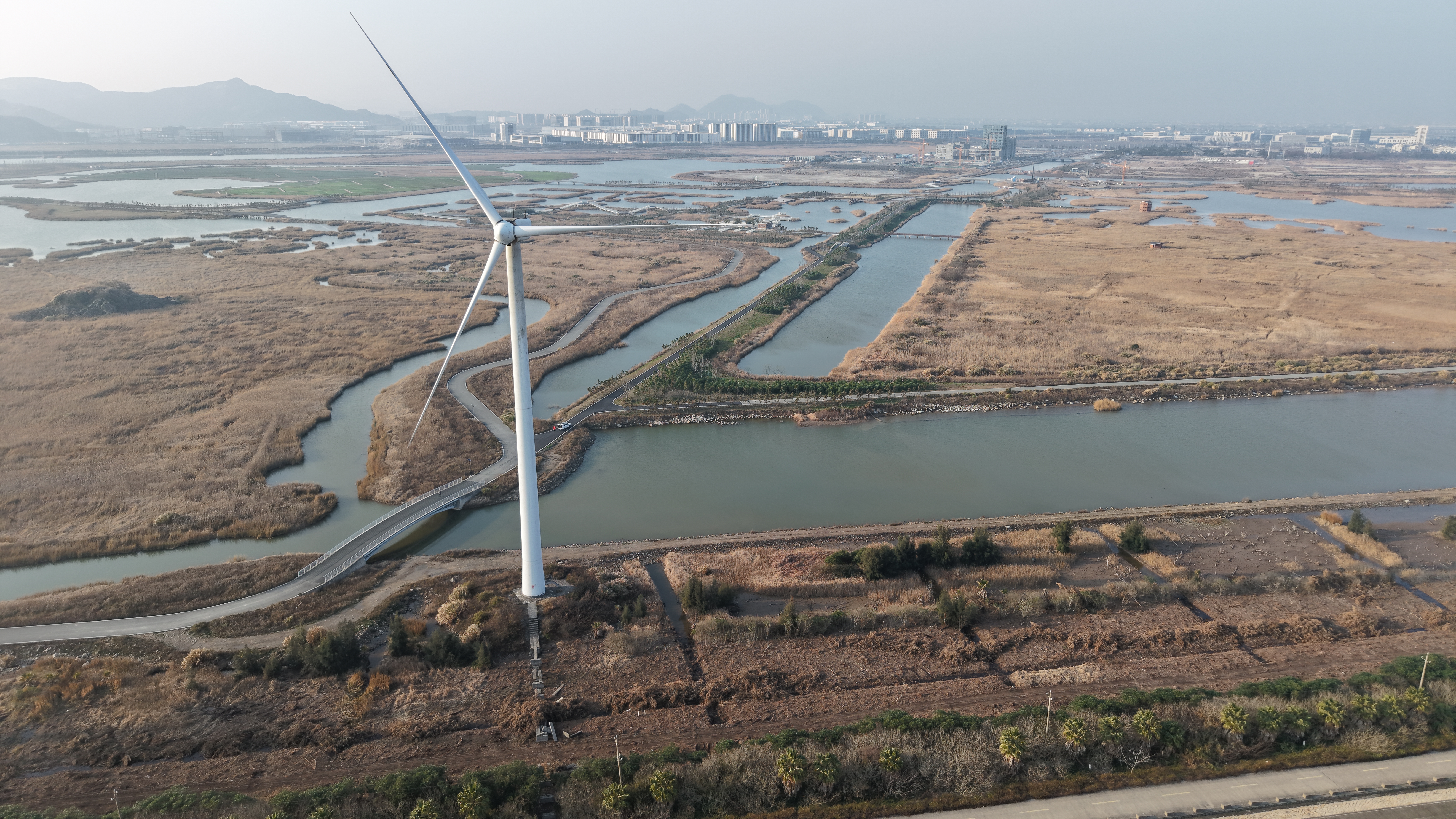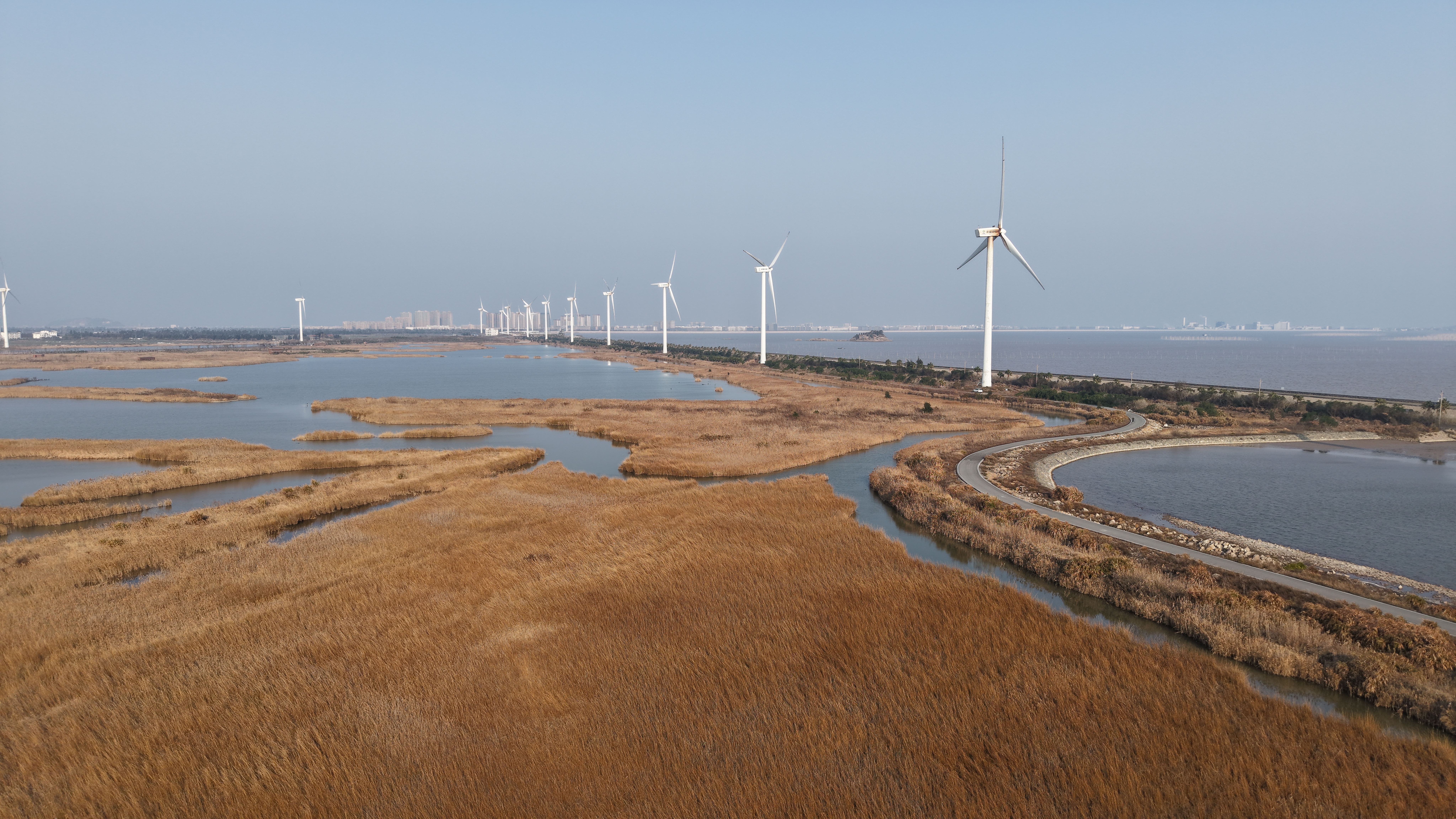 温岭东部新区·龙门湖生态湿地公园 大年初二,春日的温岭东部新区,龙门湖生态湿地公园尽显别样风情。辽阔的湿地上,芦苇随风摇曳,与清澈湖水相映成趣。岸边白色大风车缓缓转动,勾勒出滨海湿地独有的浪漫画卷。 这里是候鸟的乐园,水鸟翩跹、万羽翔集,为静谧冬日增添生机。环湖绿道蜿蜒,海风轻拂,虽有凉意,却挡不住眼前美景带来的治愈感。 春日暖阳下,湿地、风车、湖水、飞鸟构成一幅诗意画面。漫步其间,看云卷云舒,听风声鸟鸣,既能感受自然之美,也能尽享宁静惬意。这便是龙门湖春日独有的、美丽“冻”人的独特魅力。