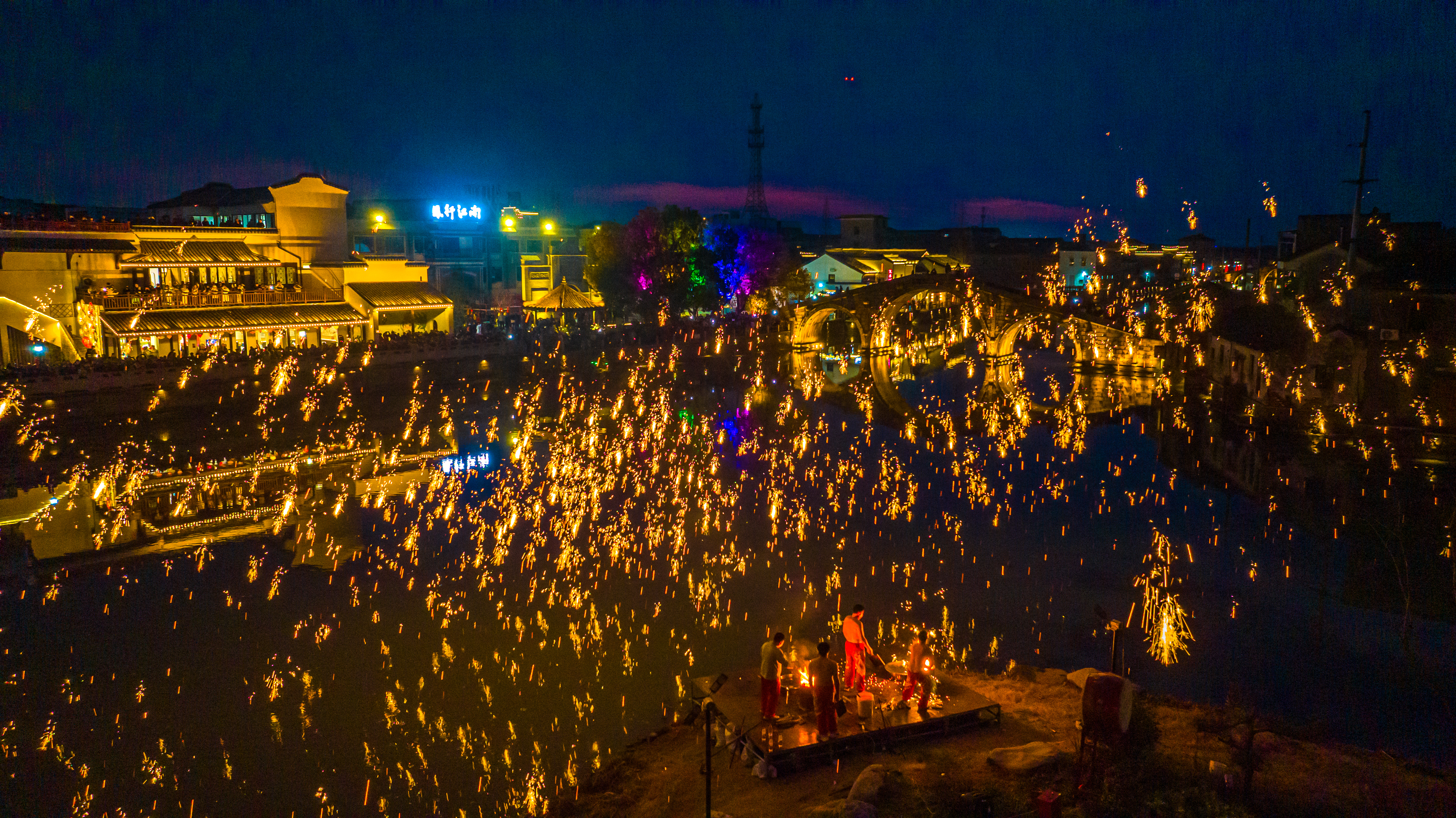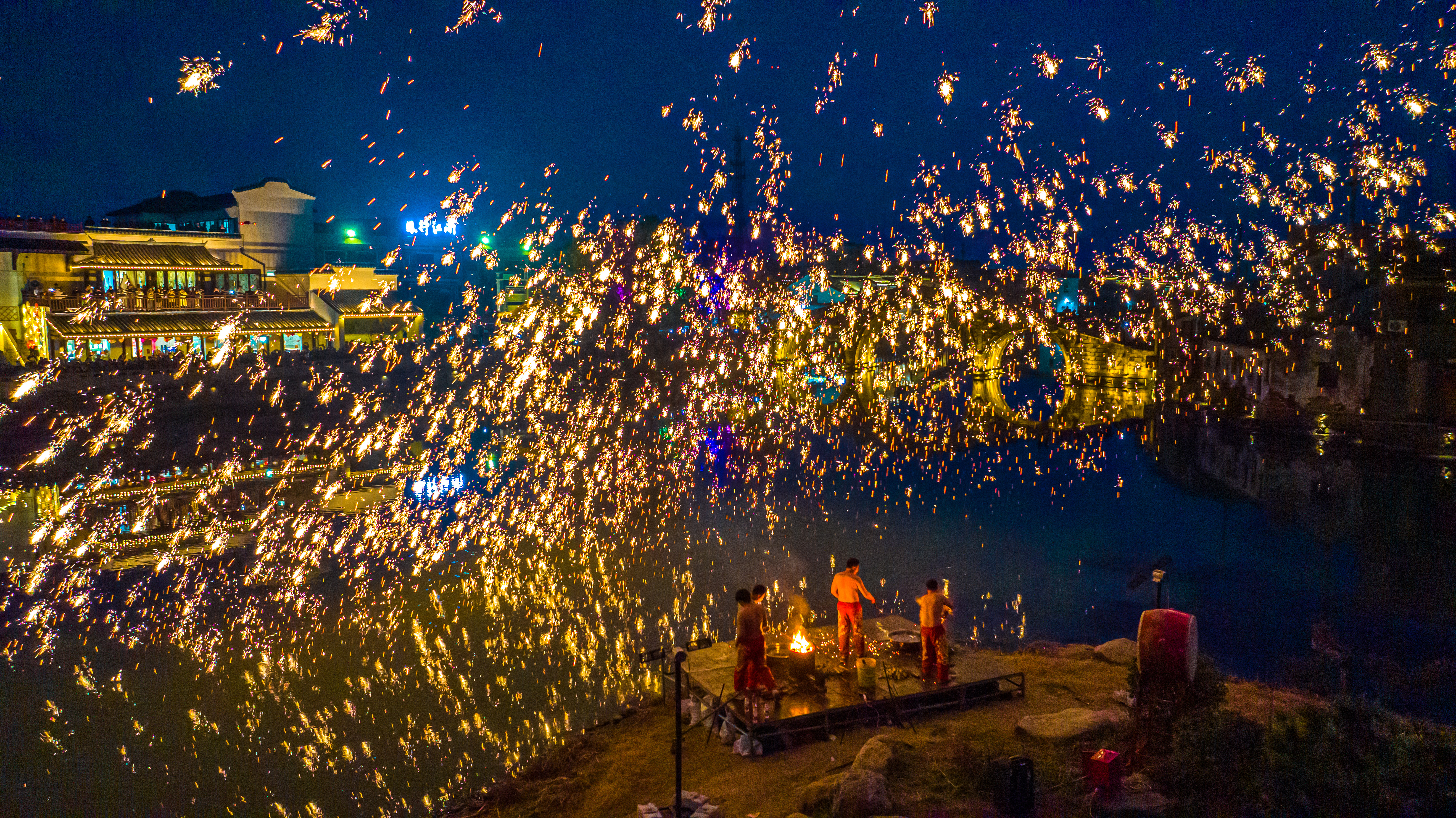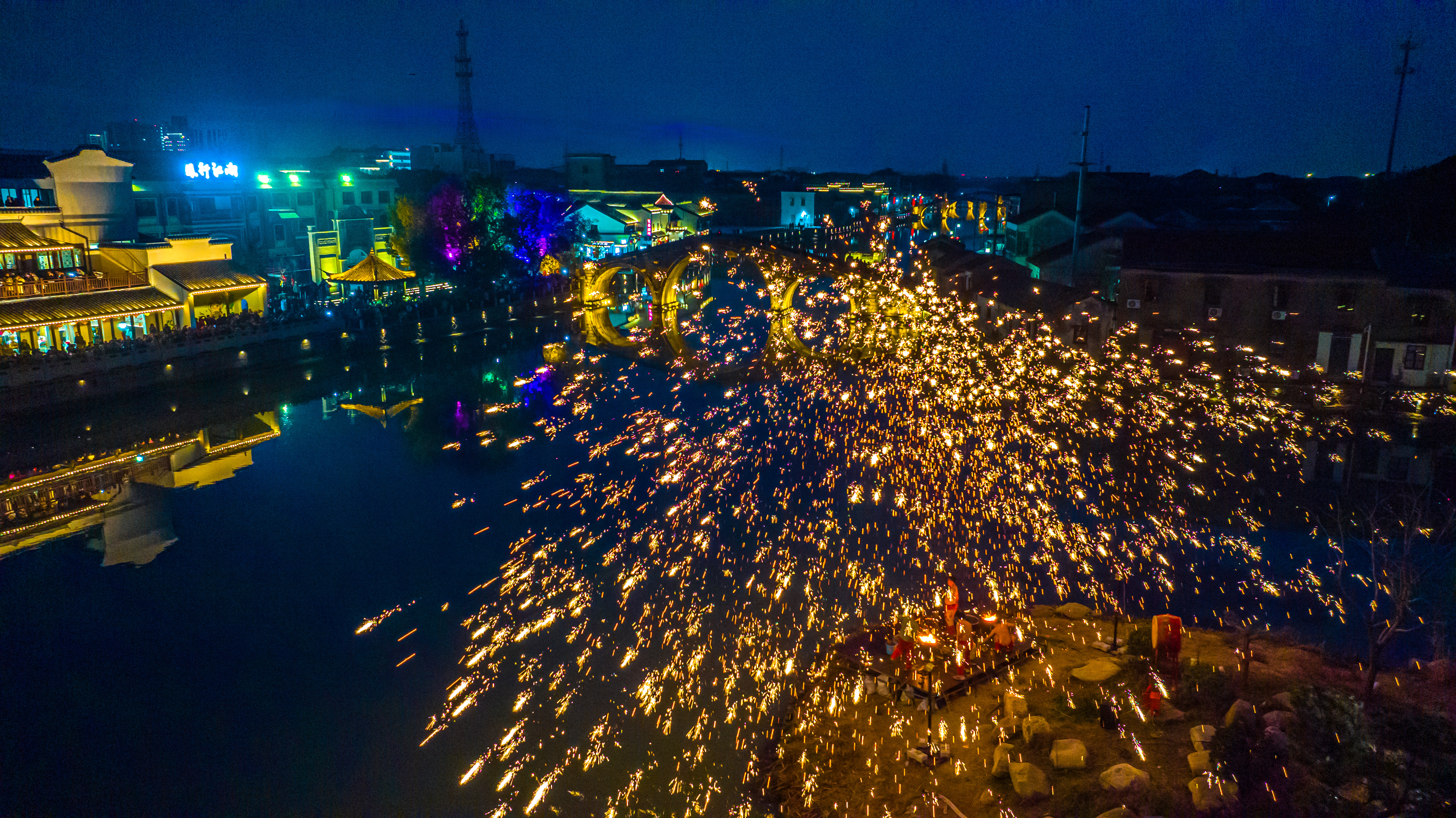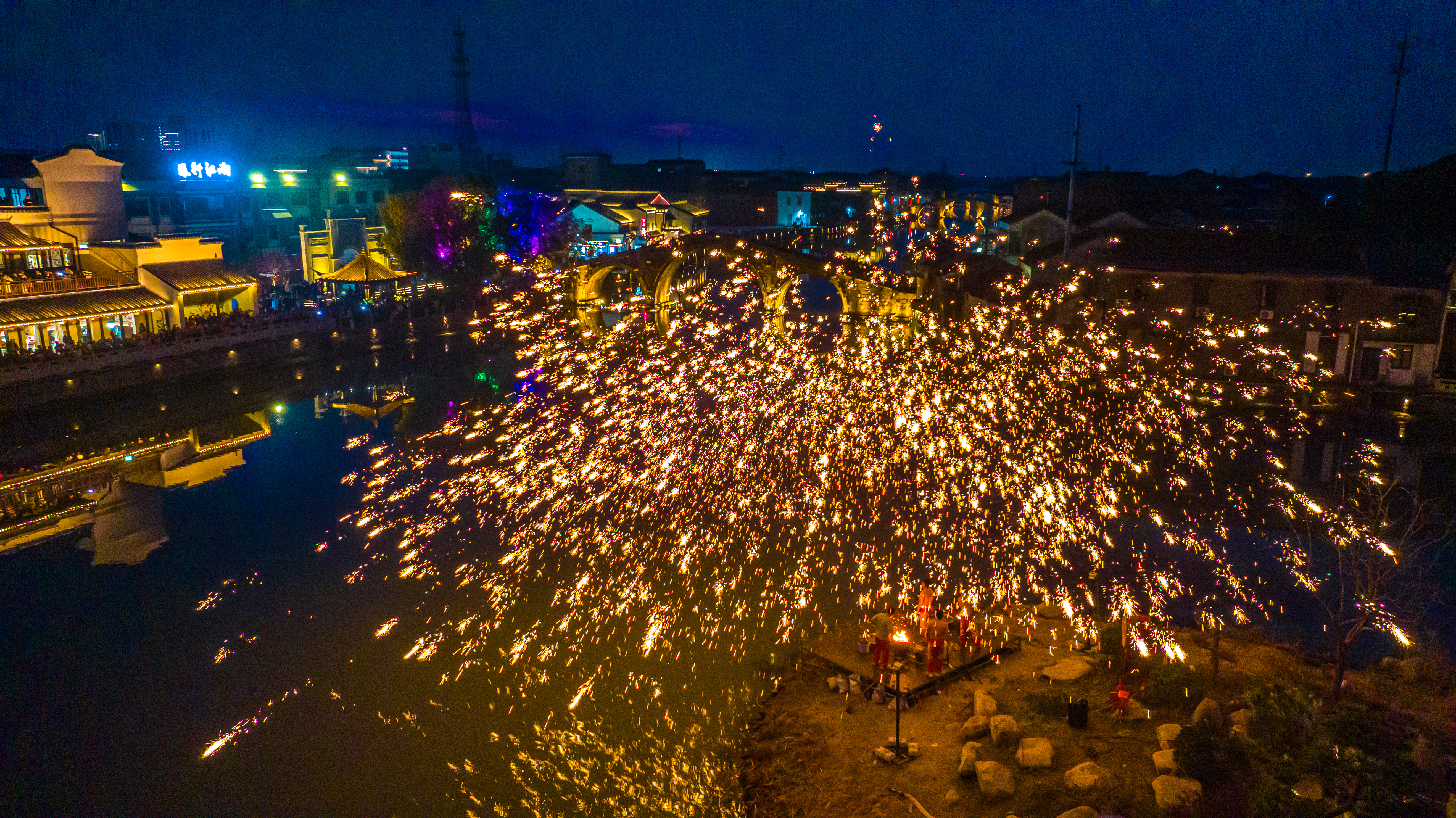 浙江湖州:非遗打铁花点亮古镇夜空 2026年2月18日,年初二,位于浙江省湖州市南浔区双林古镇一场震撼人心的非遗打铁花表演在分水墩精彩上演,铁花飞溅、星光四溢,与古镇夜景相得益彰,吸引了来自全国各地的游客驻足观赏,现场气氛热烈,掌声不断。